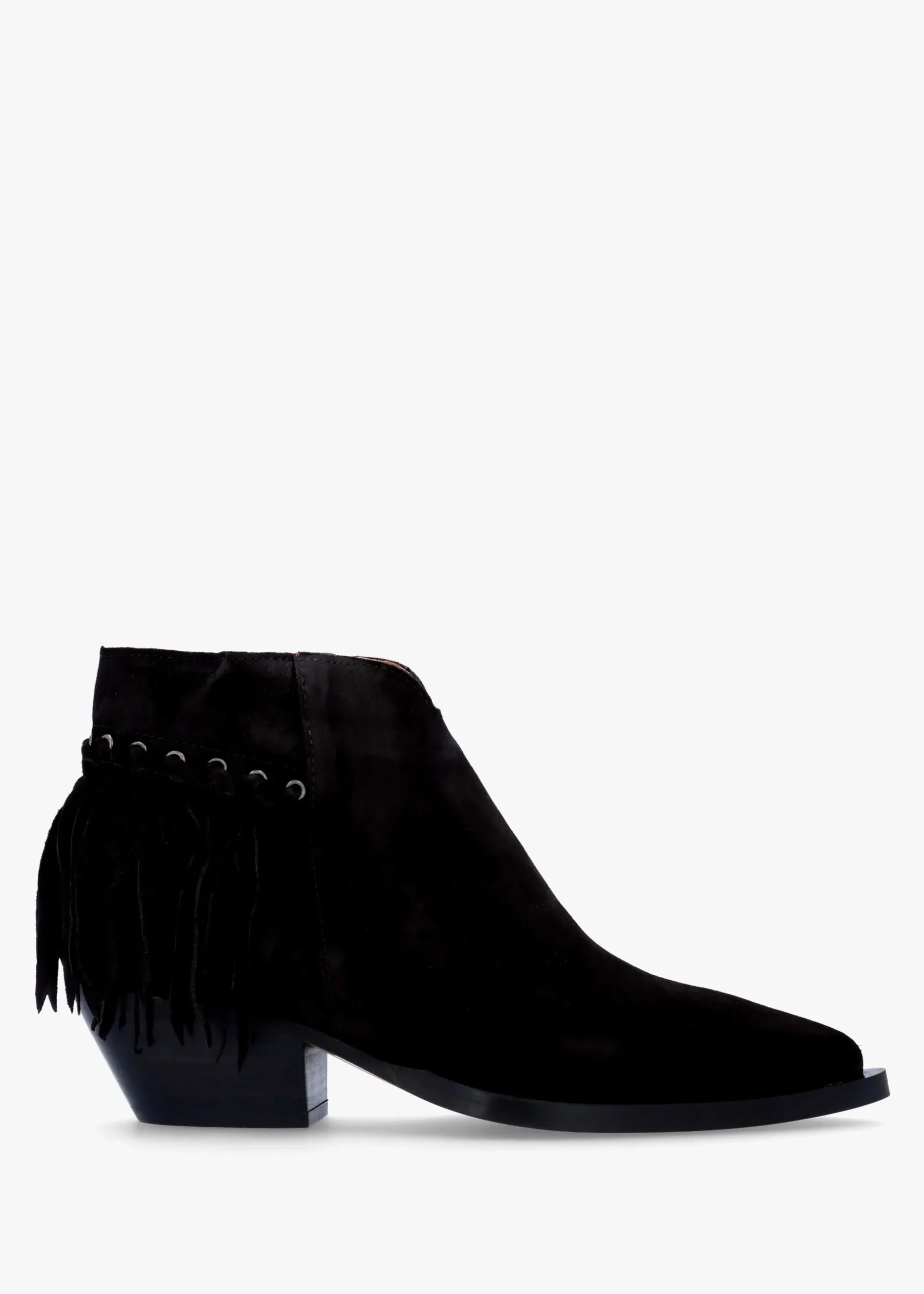 Add the ‘Ajax’ ankle boots from Alpe to your New Season wardrobe. This classic Western inspired style is crafted from a premium suede upper with part leather lining and a man-made sole. Zip fastening to the inner leg creates an easy wear. The classic pointed toe and stacked heel make up the silhouette. Eyelets and fringing add detail as well as shaped top-line. Signature Alpe branding is seen to the foot-bed.