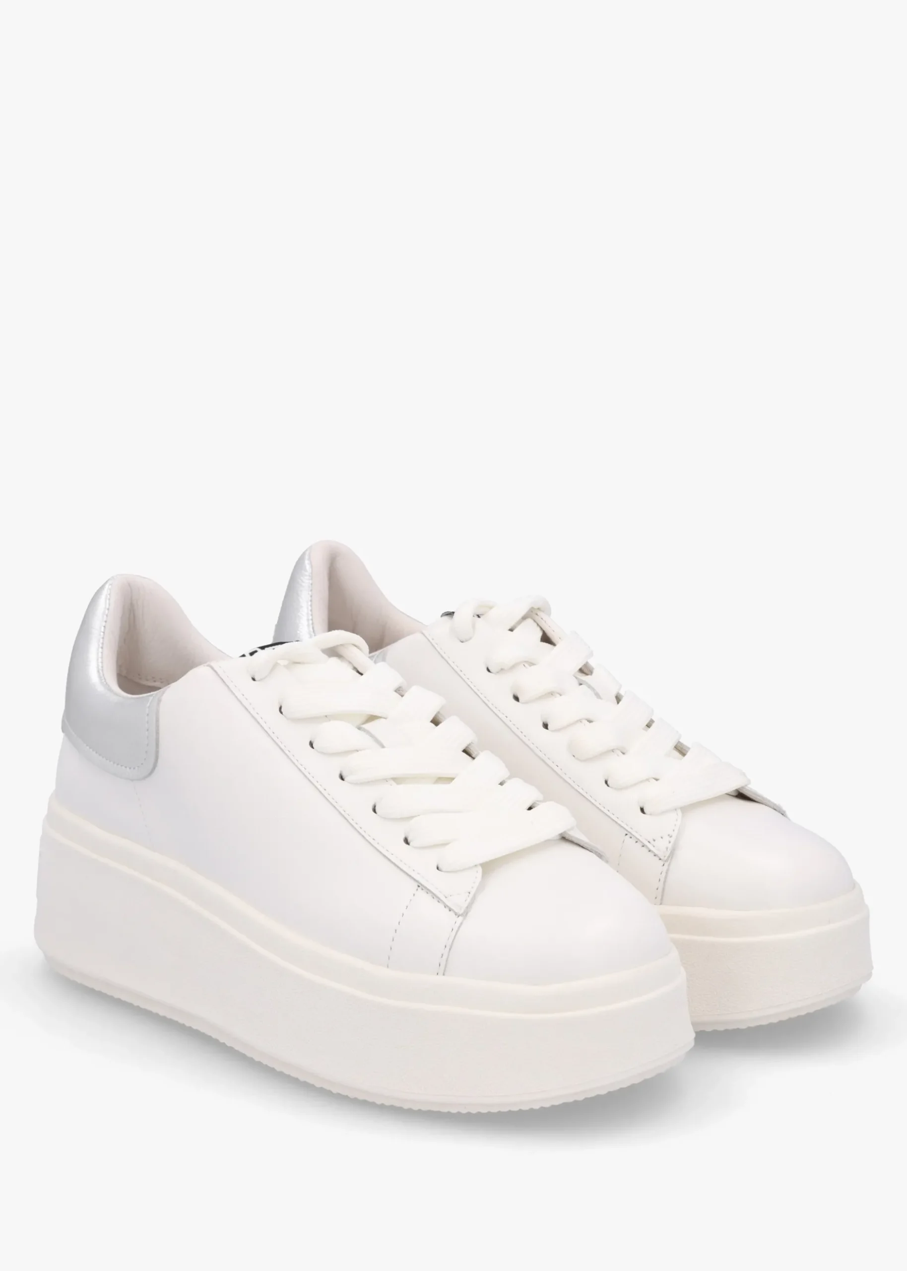 The ‘Moby’ trainers are part of the New Season collection from Ash. This chunky flatform style is crafted from premium leather with luxurious leather lining and chunky rubber sole. Contrasting metallic ankle tab adds detail. The lace up upper creates an easy wear as well as ensuring the perfect fit. Signature Ash branding is seen to the tongue, foot-bed and sole.