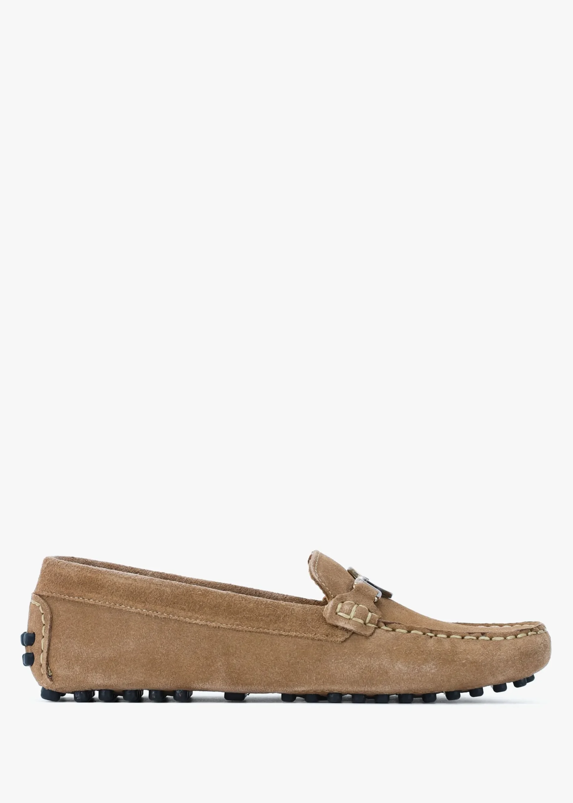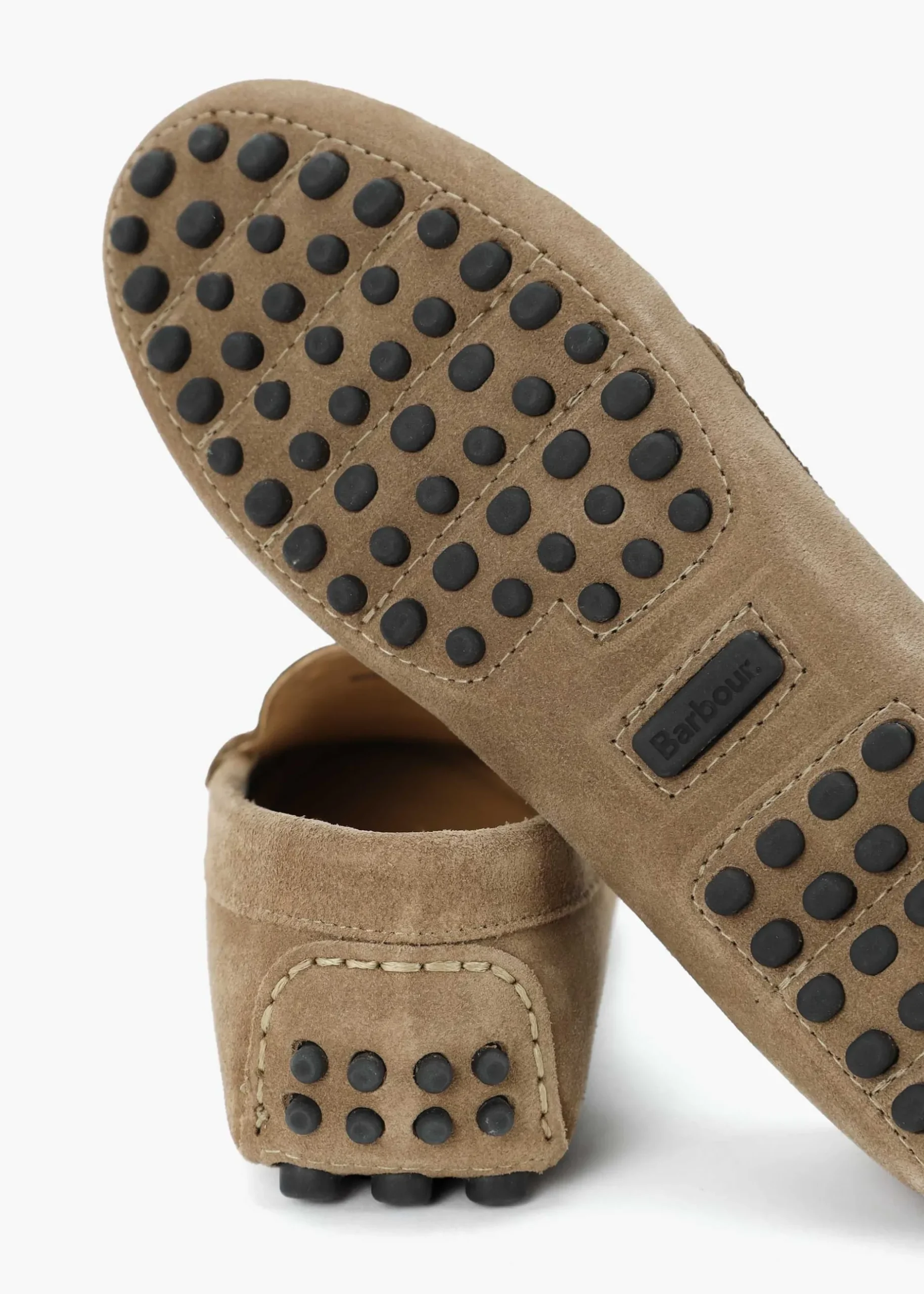New to Barbour this Season the women’s ‘Laire’ driving shoes. This classic style is crafted from premium suede with PU lining and a rubber nub sole. An easy to wear slip on style. Contrasting top stitching, branded logo snaffle add detail. Signature Barbour branding is seen to the footbed and sole.