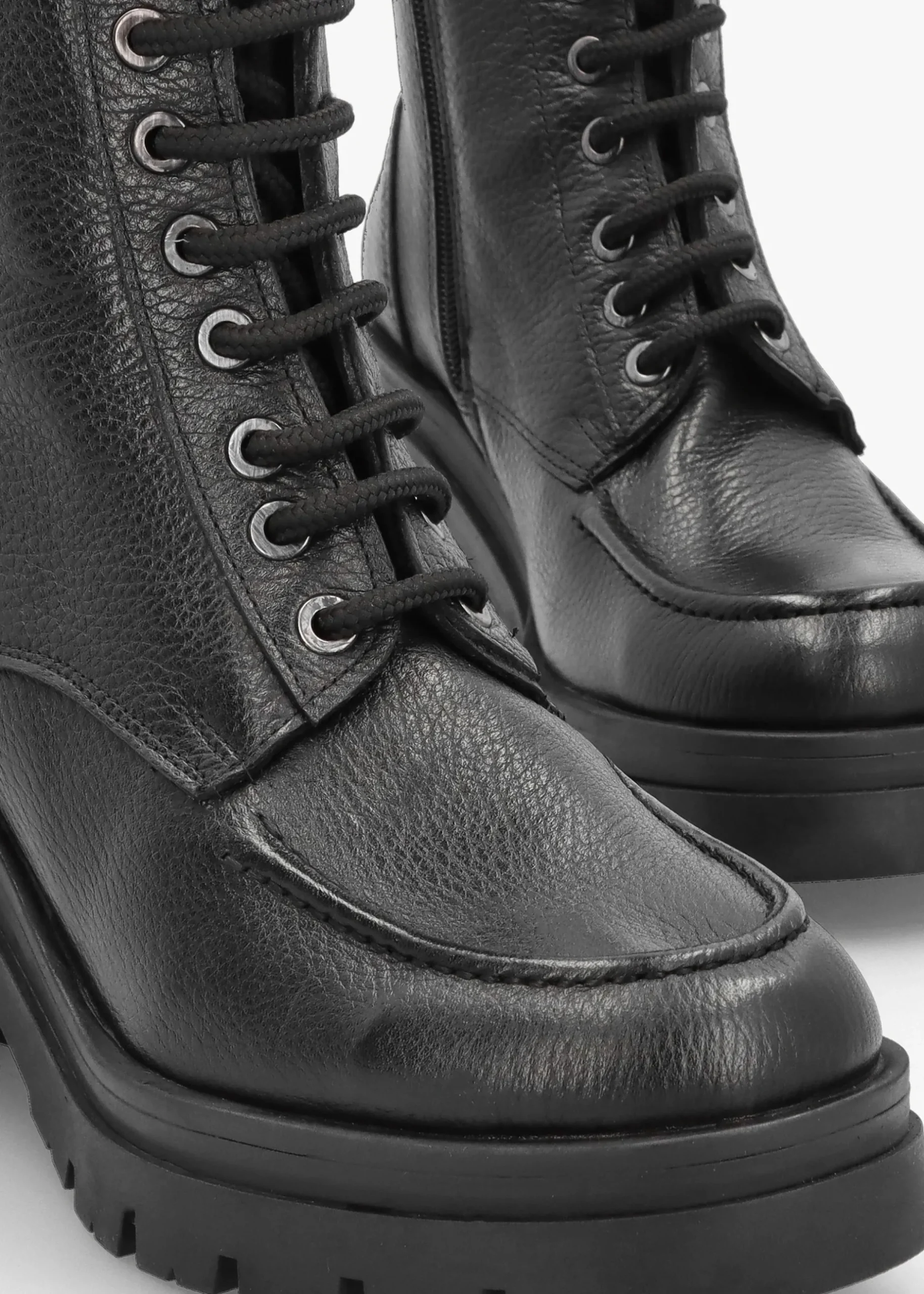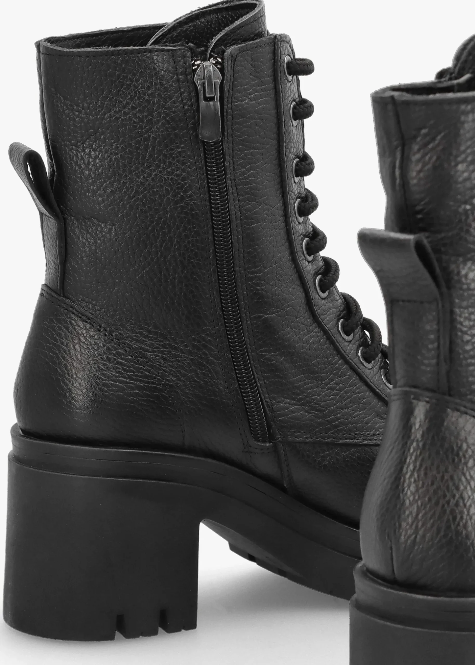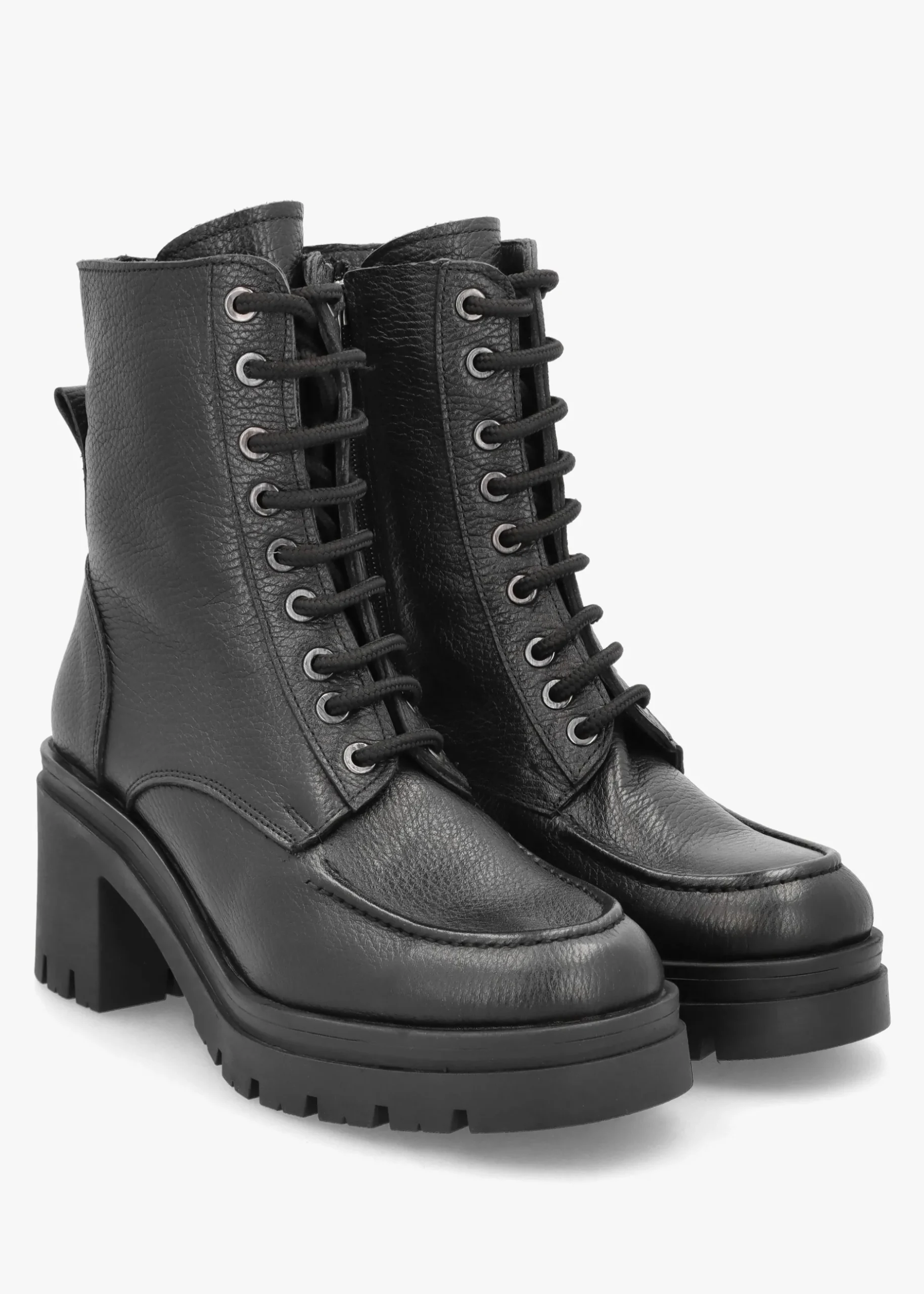Add the chunky ‘Bella’ boots from Daniel to your boot collection. This New Season style is crafted from a premium soft pebbled leather upper with textile lining and a comfy rubber sole. Zip fastening to the inner leg creates an easy wear and the lace up upper ensures the perfect fit. Classic round toe and block heel make up the silhouette. Tonal top stitching, raised seaming and pull tab all add detail. Signature Daniel branding is seen to the footbed.