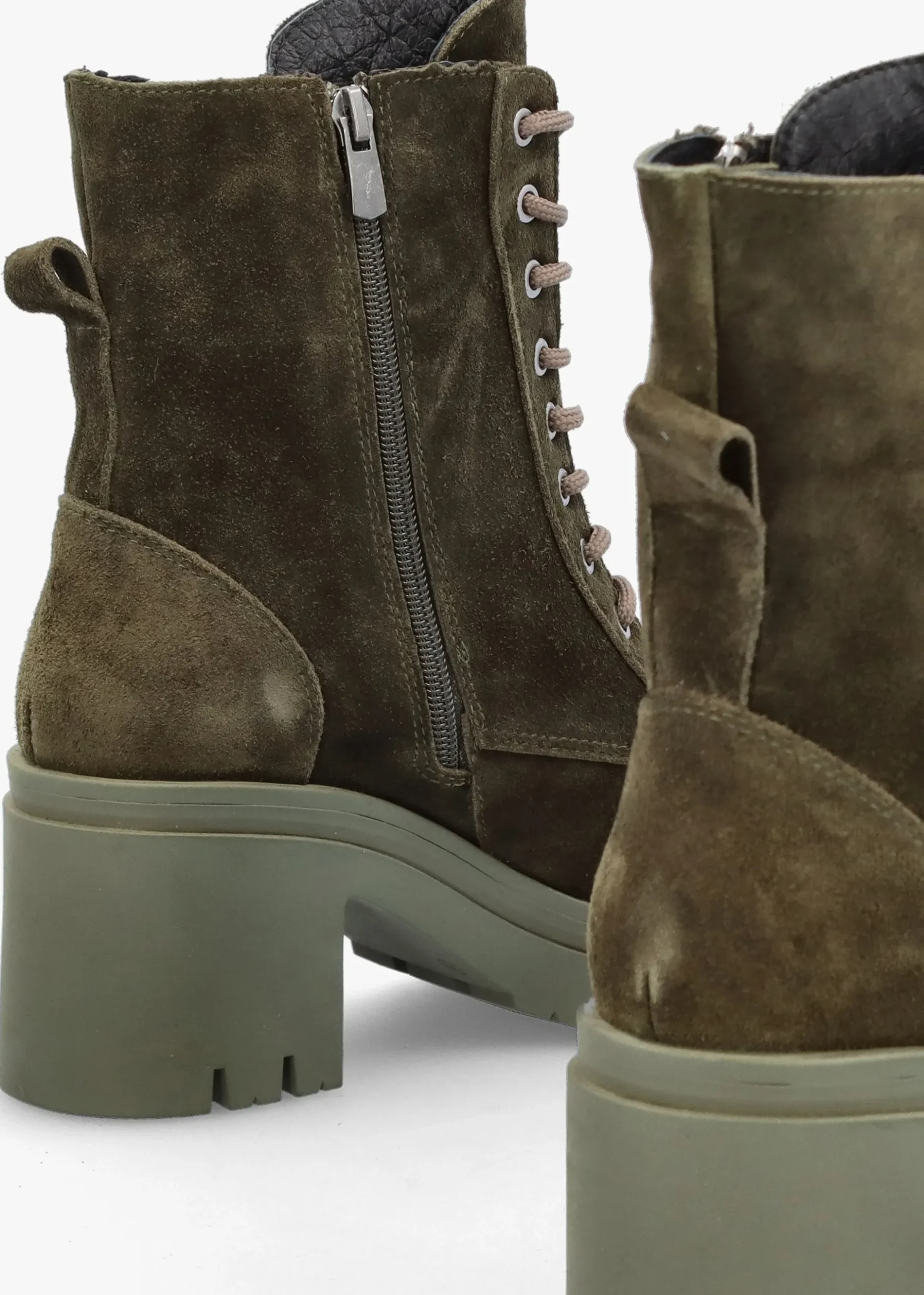 Add the chunky ‘Bella’ boots from Daniel to your boot collection. This New Season style is crafted from a premium suede upper with textile lining and a comfy rubber sole. Zip fastening to the inner leg creates an easy wear and the lace up upper ensures the perfect fit. Classic round toe and block heel make up the silhouette. Tonal top stitching, raised seaming and pull tab all add detail. Signature Daniel branding is seen to the footbed.