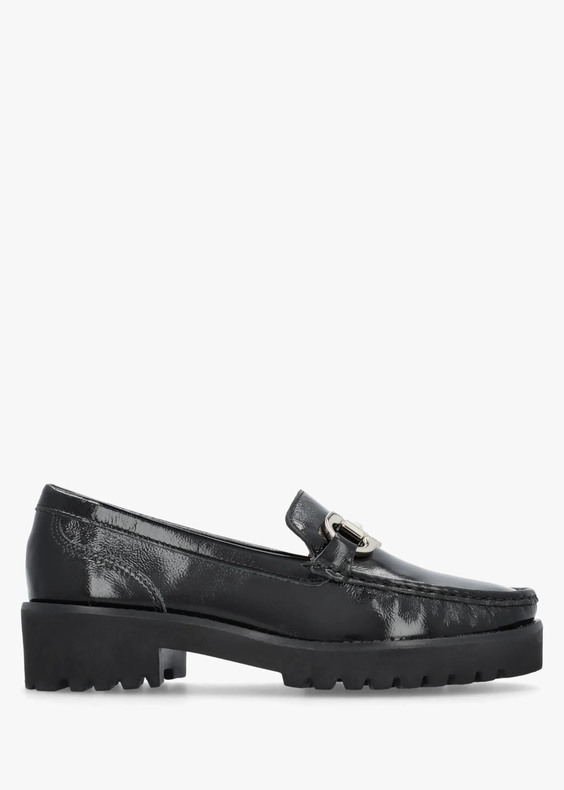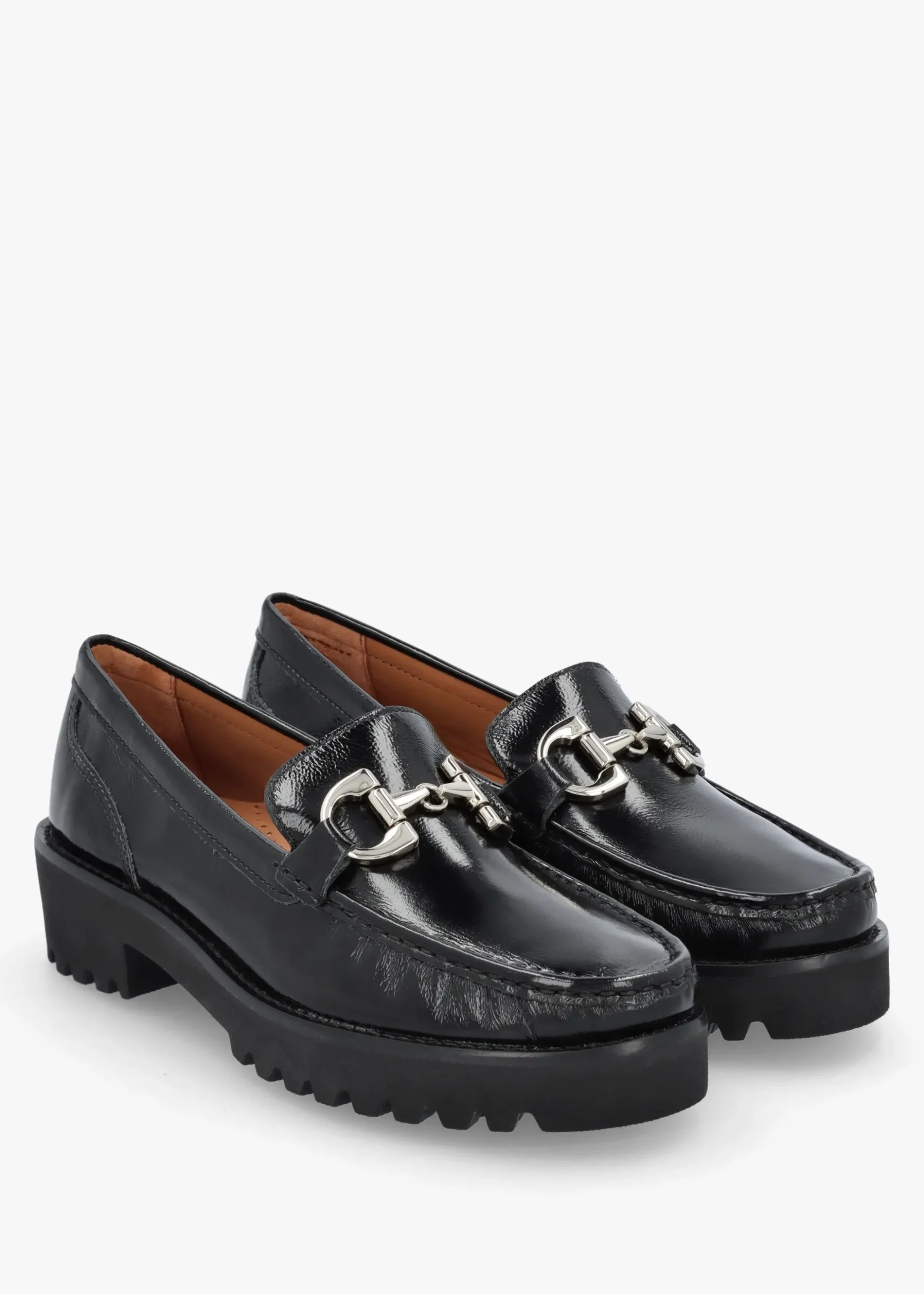 Add the chunky ‘Garrera’ loafers from Daniel to your New Season wardrobe. This staple style is crafted from a premium patent leather upper with luxurious leather lining and a cleated rubber sole. An easy to wear classic slip-on style. Gold tone snaffle hardware adds detail to the upper as well as tonal top stitching and raised seaming. Signature Daniel branding is seen to the footbed.