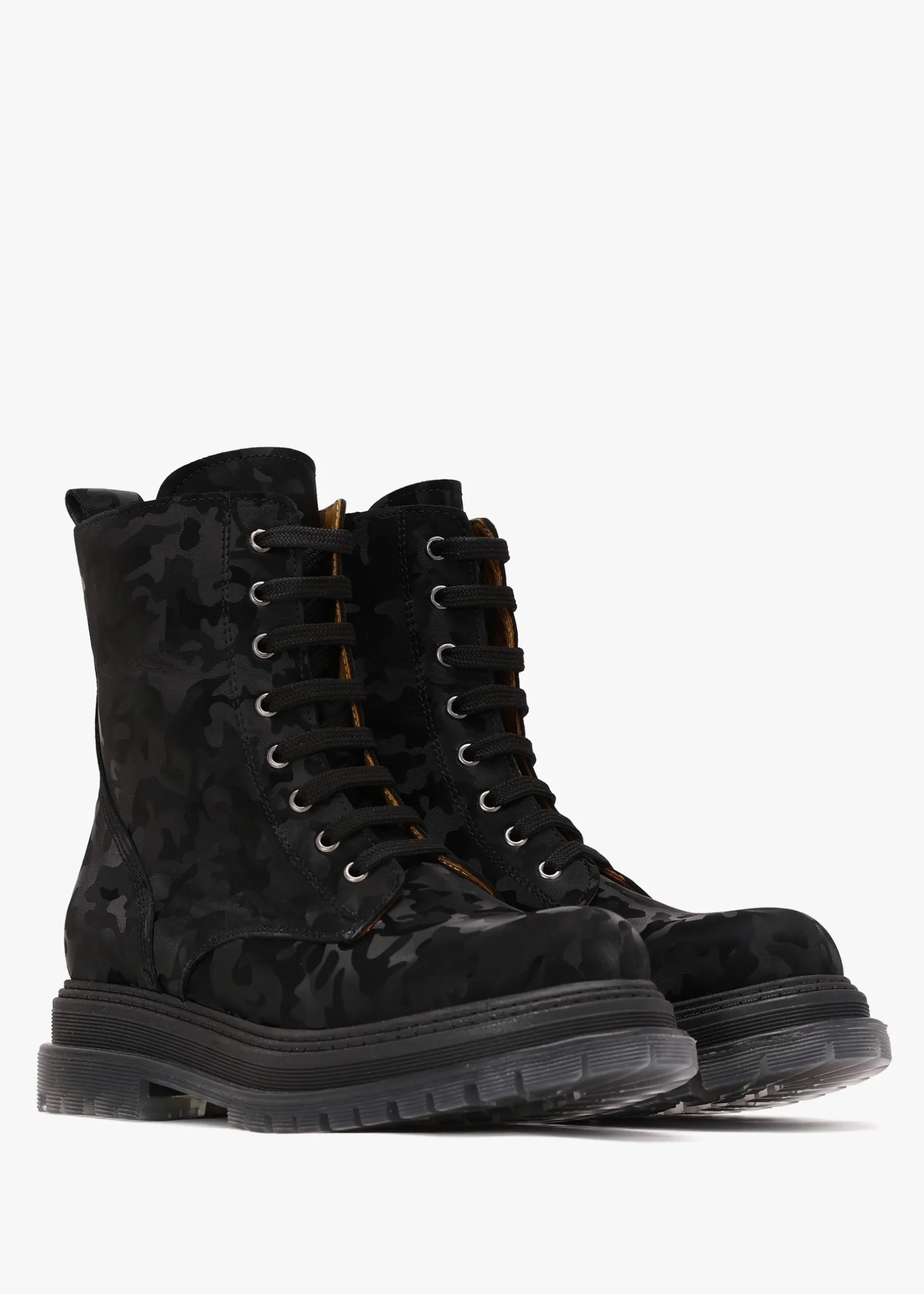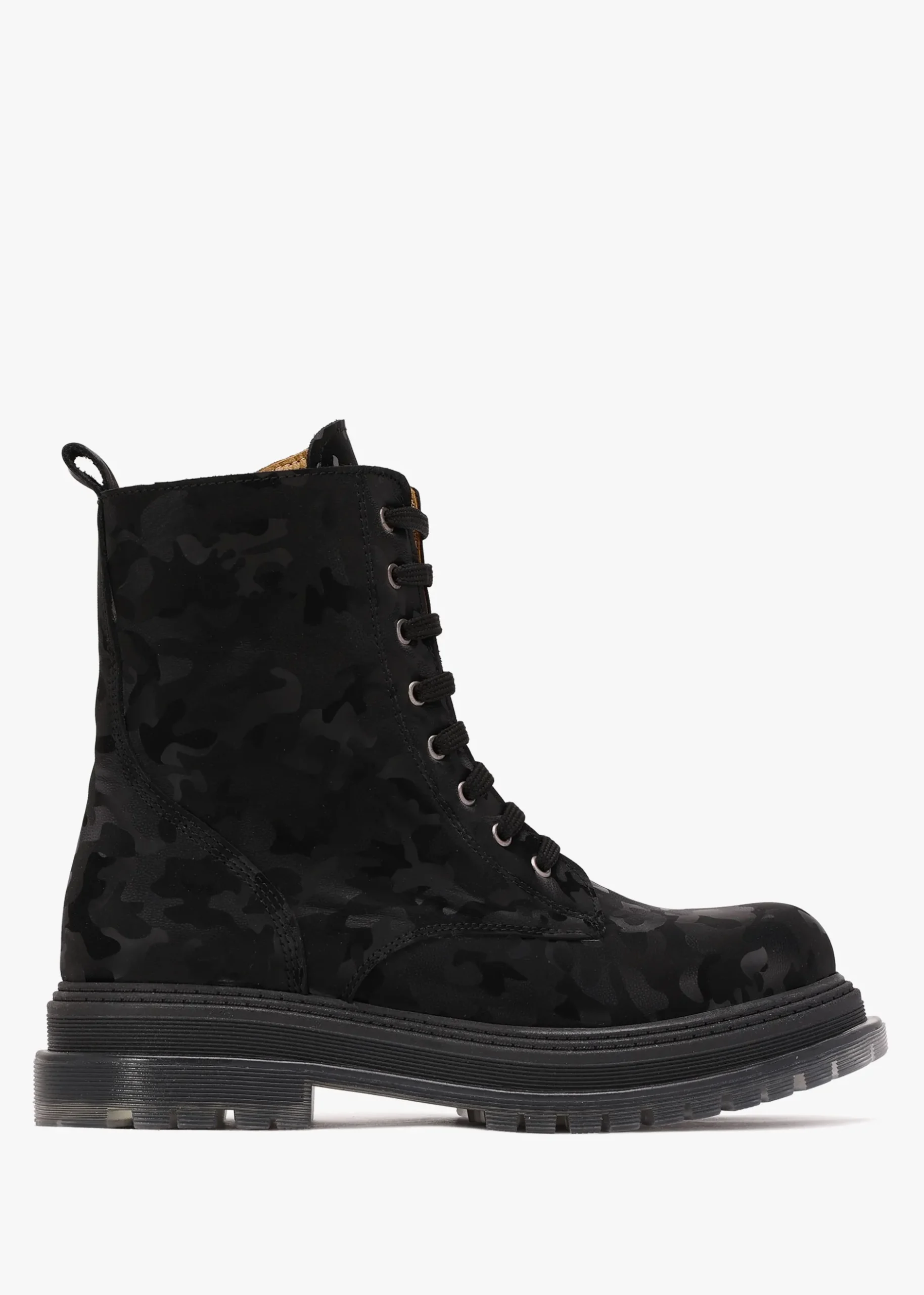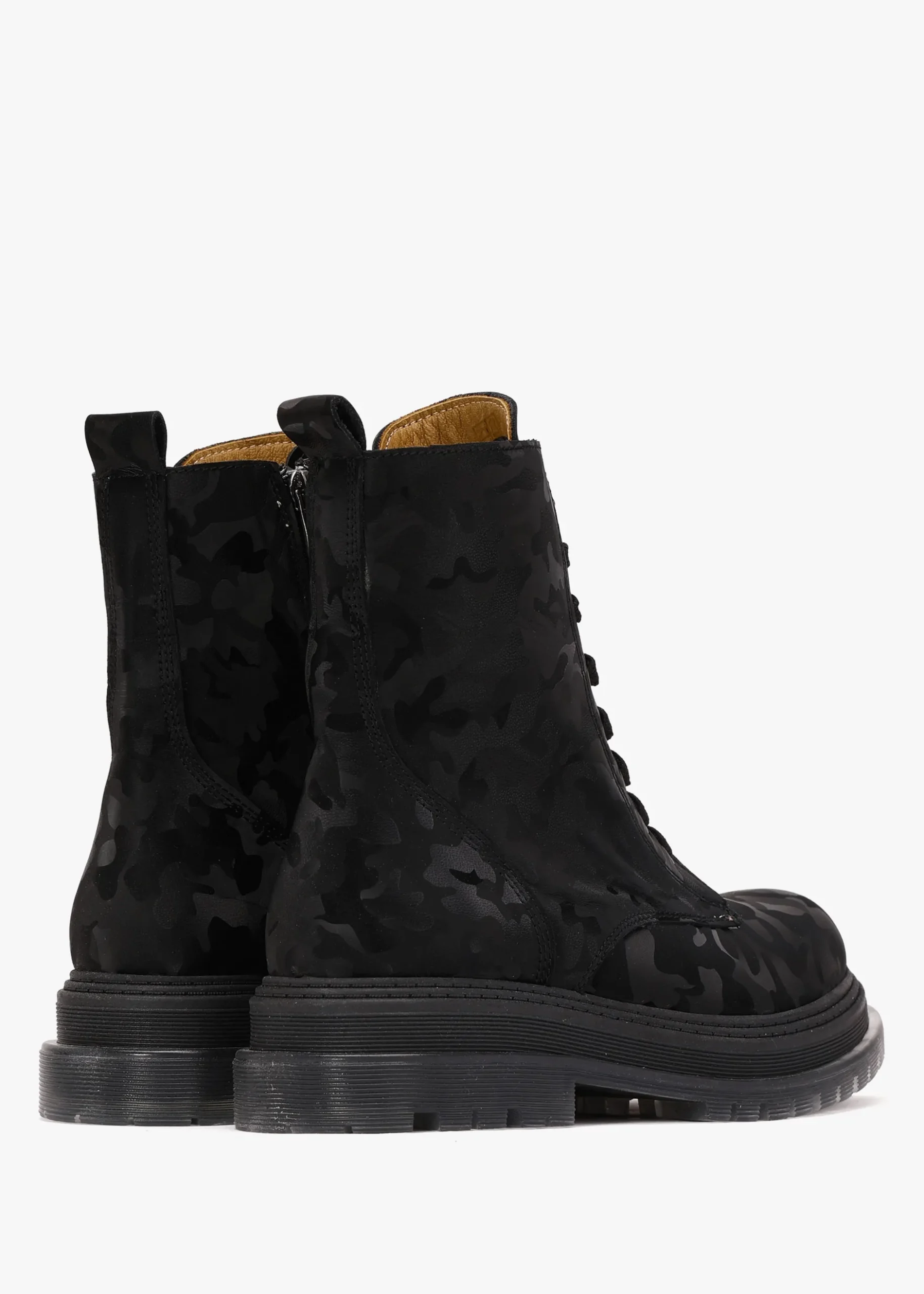 Add the ‘Rammie’ ankle boots from Daniel Footwear to your boot collection. This New Season style is crafted from a premium leather upper in a tonal camouflage design with leather lining and a clear tacked rubber sole. Zip fastening to the inner leg creates an easy wear and the lace up upper ensures the perfect fit. Signature Daniel branding is seen to the foot-bed.