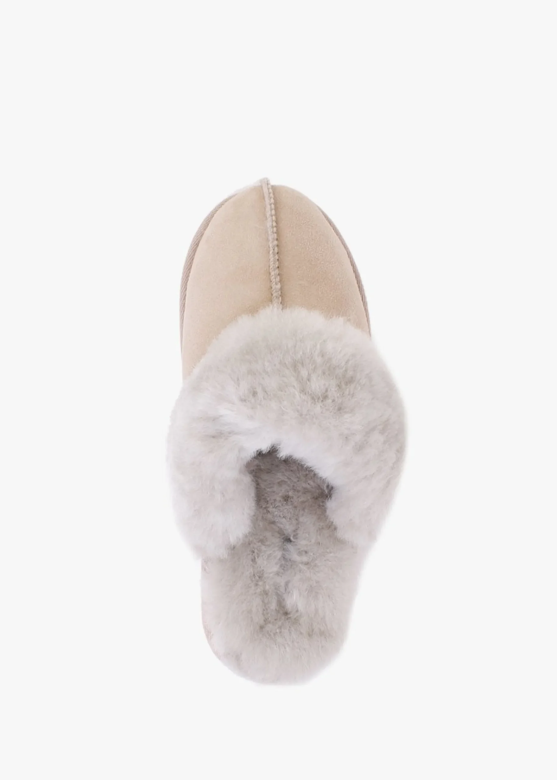 The women’s ‘Shut’ slippers from Daniel Footwear are a classic style and wardrobe staple. These quintessential house slippers are crafted from premium plush twinfaced sheepskin featuring nylon binding and EVA sole. An easy to wear slip on style featuring closed toe. Signature Daniel branding is seen to the footbed.