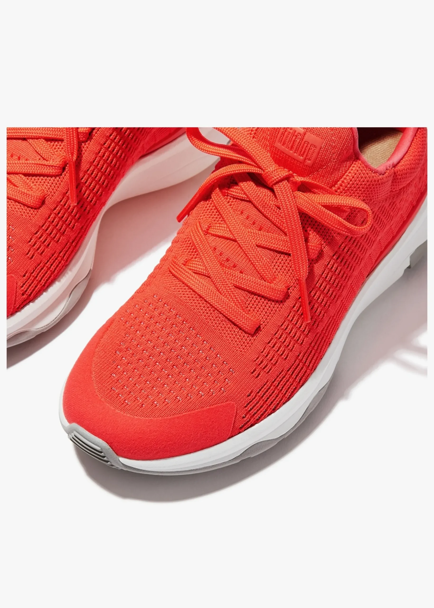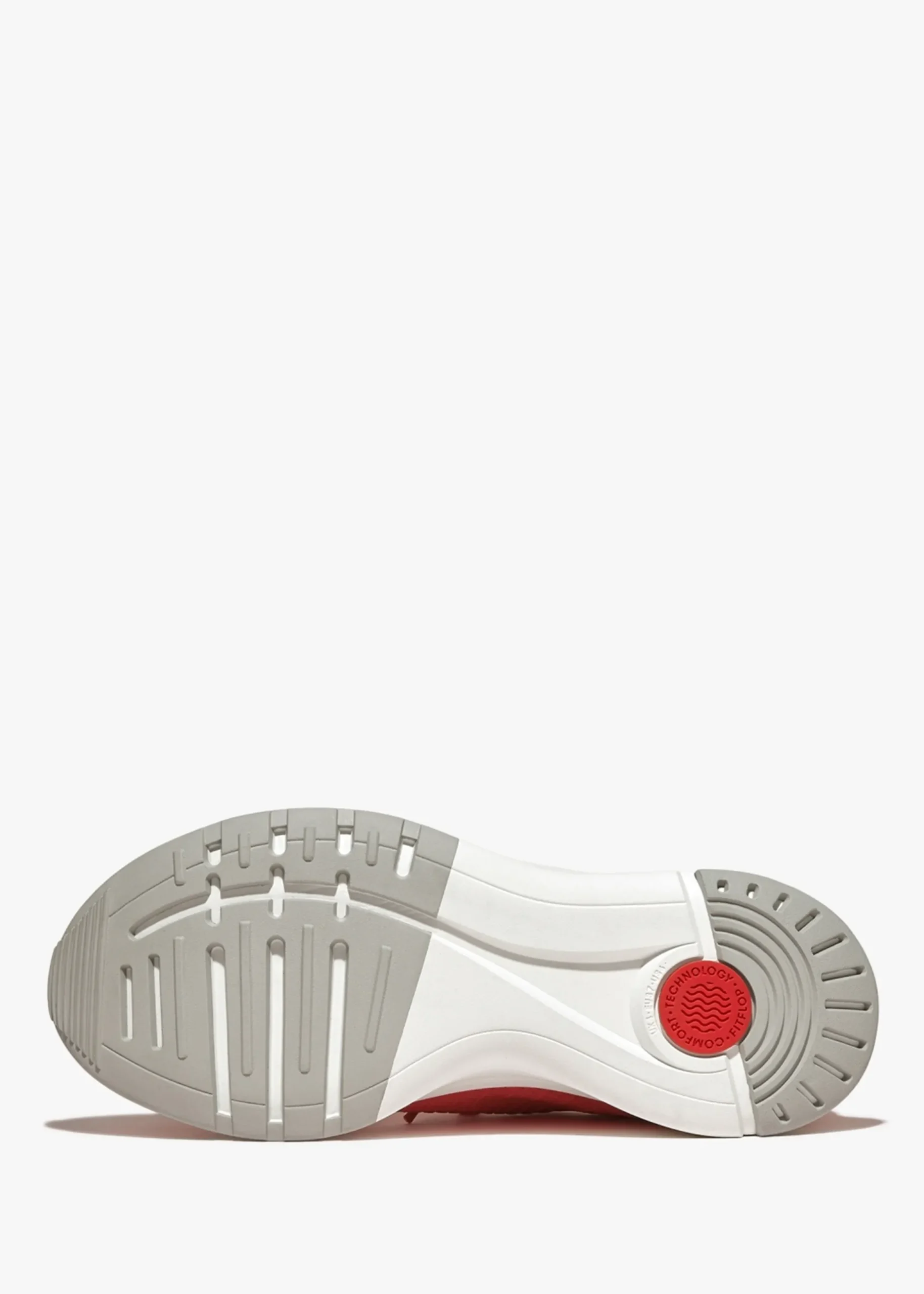 The ‘Vitamin FFX Knit’ trainers from FitFlop is biomechanically engineered for exercise and casual running, but equally good for upping your everyday activity. Crafted from a nylon mix stretch knit upper in a two-tone design with microfiber lined toe, Neodynamic™ midsole and antibacterial mesh foot-bed. A breathable style with extra support at the sides and arch. Padding features to the collar and tongue, the stretch ribbed top-line creates an easy wear and the lace up upper ensures the perfect fit. Signature FitFlop branding is seen throughout.