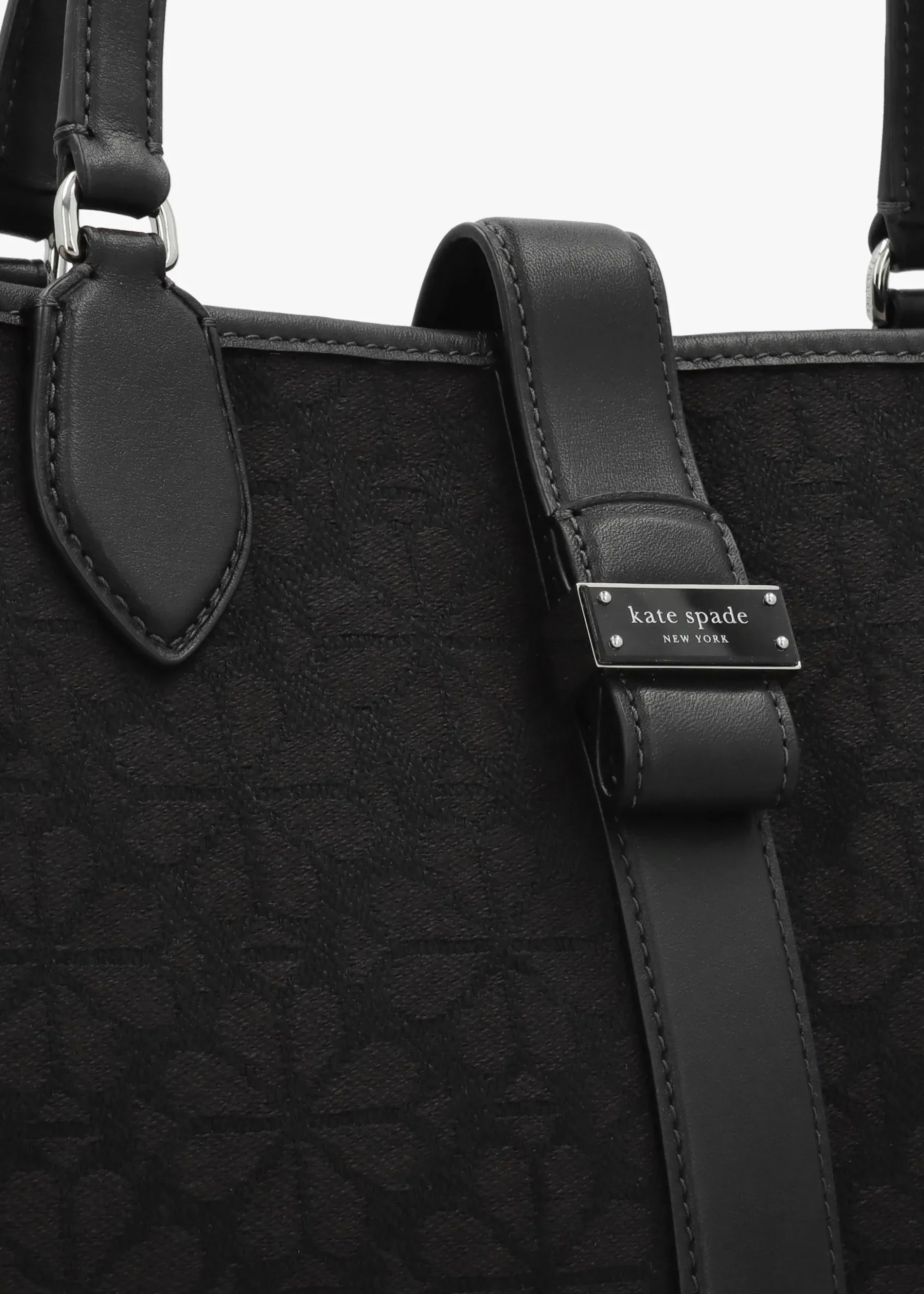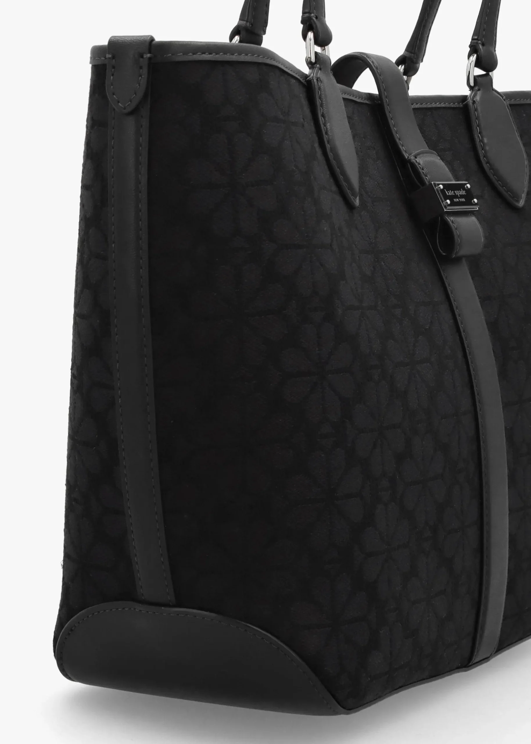 New to Kate Spade this Season the medium ‘Spade Flower Jacquard’ tote bag. This easygoing day bag style is crafted from premium textured jacquard with a flower pattern woven into the print. The brands reinvented signature print has been woven in Italy in a centuries old family owned textile mill, bringing this collaborative print to the brand this Season. Premium leather and PU trim feature as well as polished silver tone hardware. Magnetic snap top flap reveals canvas lining and inner zip and slot pockets. Carry by the top handles on the shoulder or by hand. Signature Kate Spade branding is seen throughout.