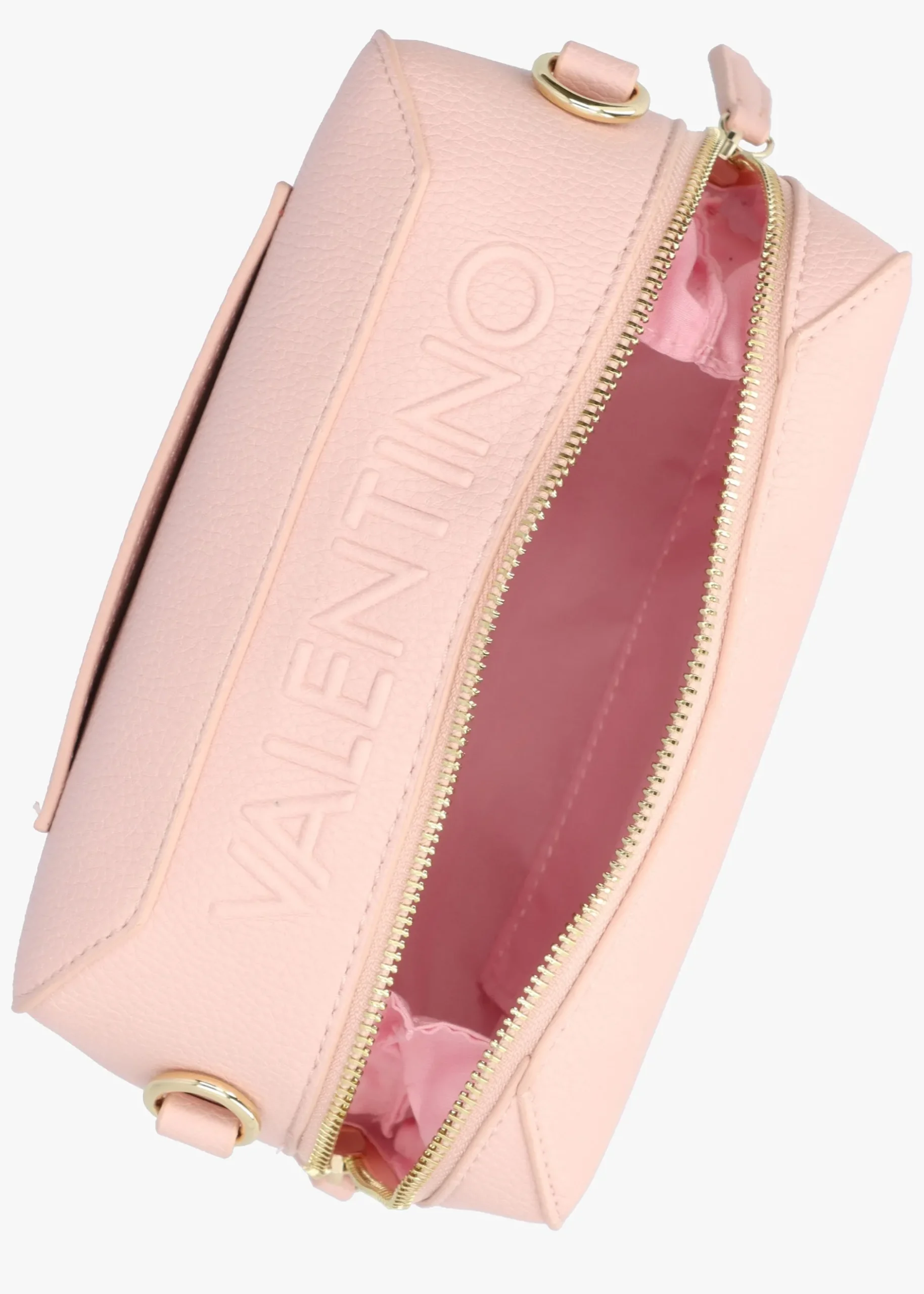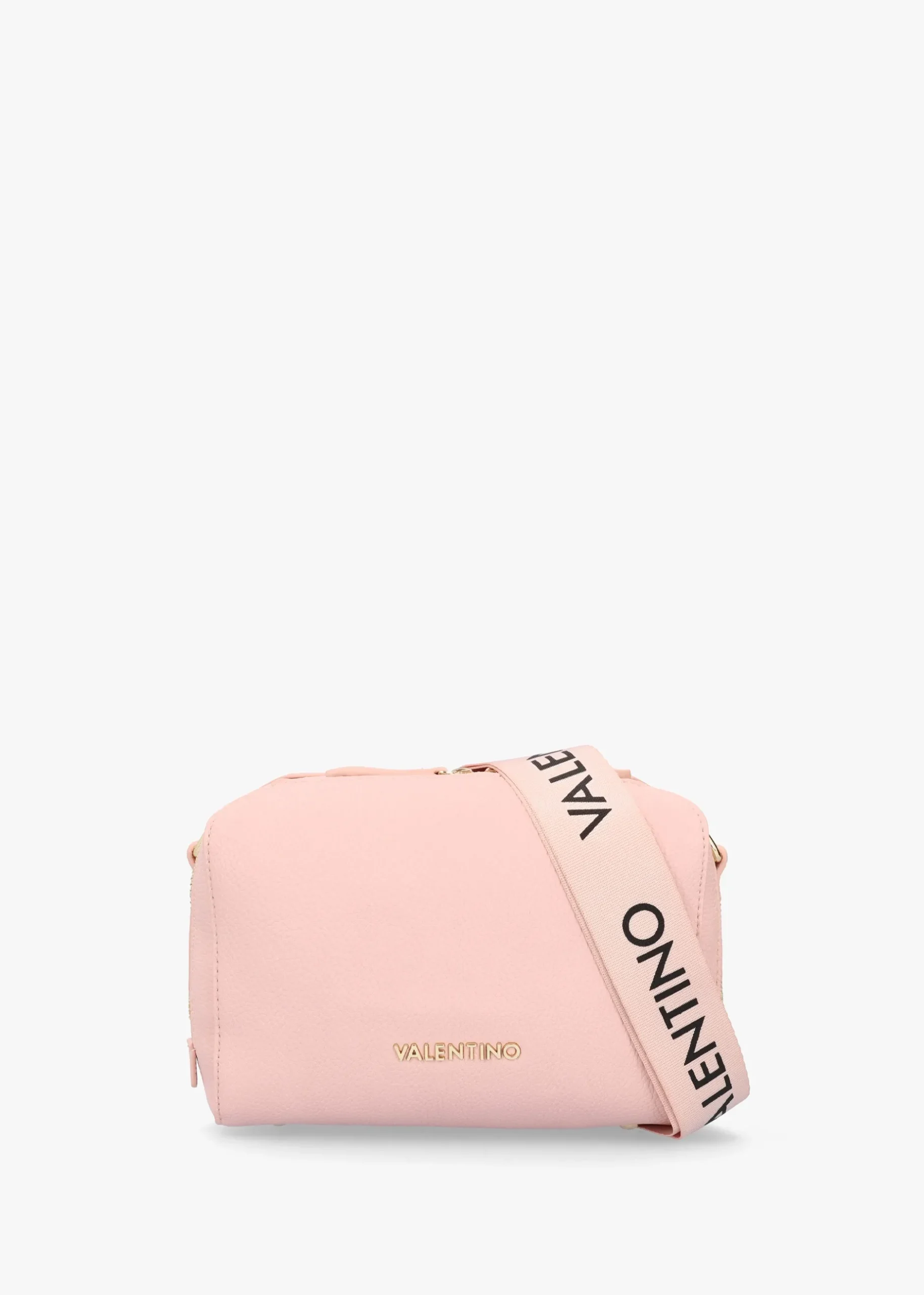 The ‘Pattie Haversack’ cross-body bag is part of the New Season collection from Valentino. This everyday style is crafted from premium pebbled PU with gold tone accents. The secure top zip fastening reveals the main compartment with handy inner zip pocket, exterior slot pocket also features. Carry by the detachable logo guitar strap on the shoulder or across the body. Signature Valentino branding is seen throughout.