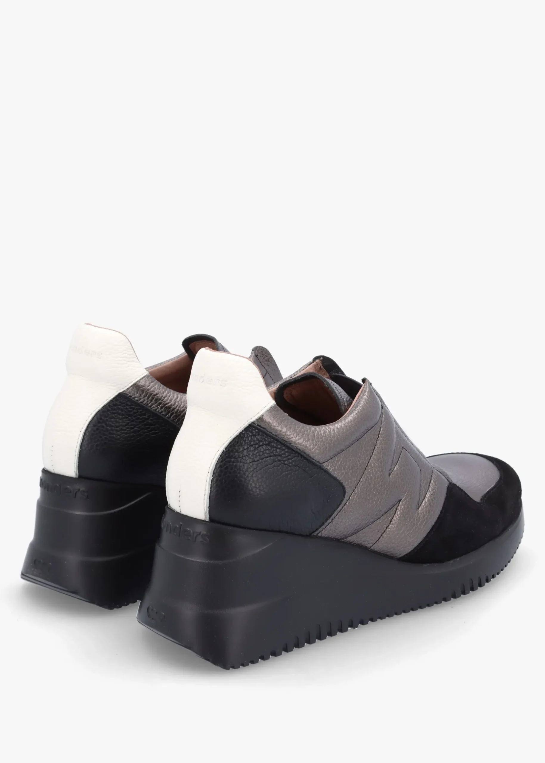 Add the women’s ‘South’ wedge trainers from Wonders to your off-duty days. This New Season style is crafted from a premium leather and suede upper with luxurious leather lining and a extra lightweight rubber sole. The elasticated panel to the upper creates an easy wear. Signature Wonders branding is seen to the footbed, sole and back of the ankle.