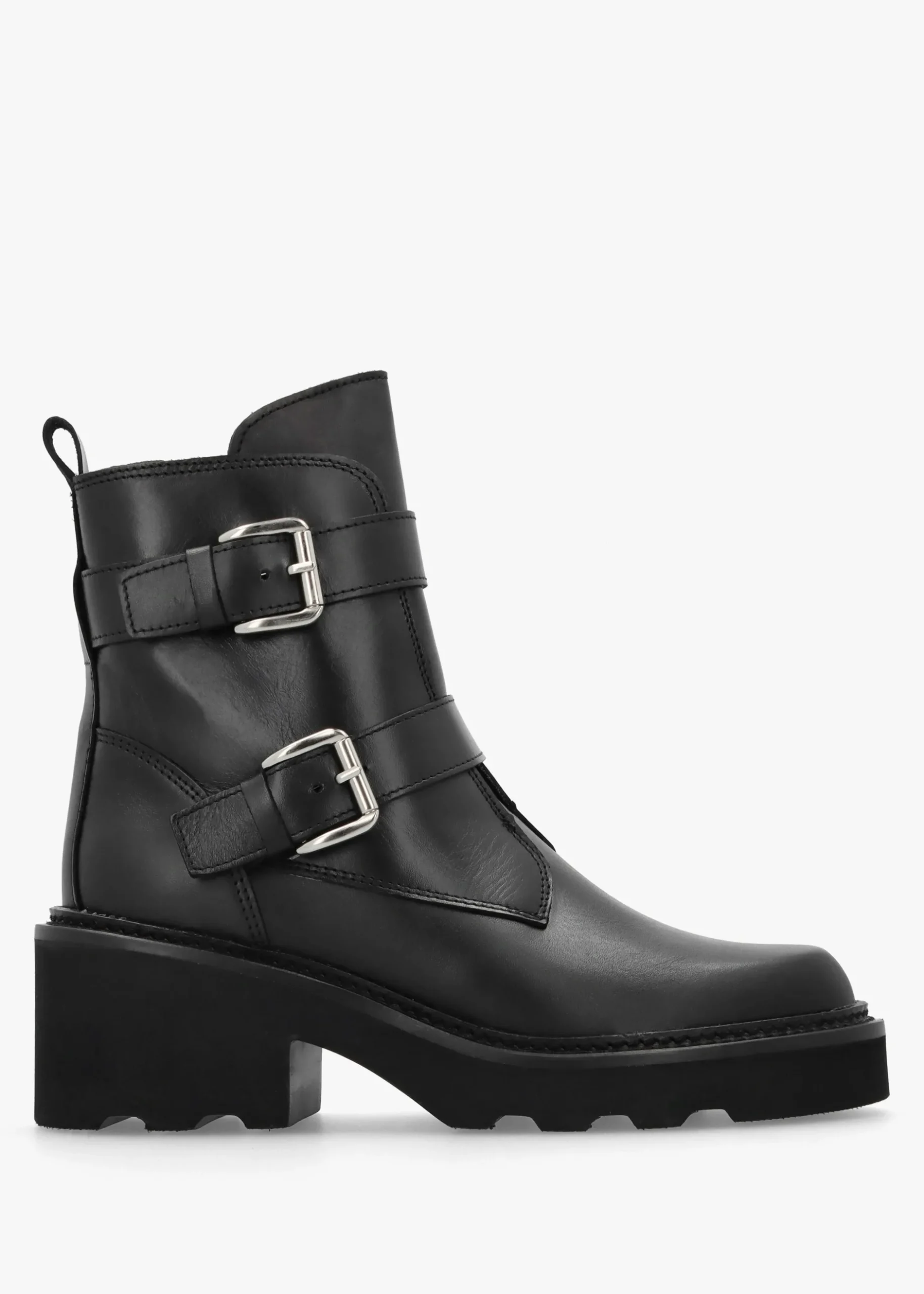 Add the ‘Arose’ ankle boots from Alpe to your boot collection. This New Season style is crafted from a premium leather upper with textile lining and a chunky rubber sole. Zip fastening to the inner leg creates an easy wear. Double buckle fastening ankle straps add detail as well as pull tab to the top-line and tonal top stitching and raised seaming. Signature Alpe branding is seen to the footbed.