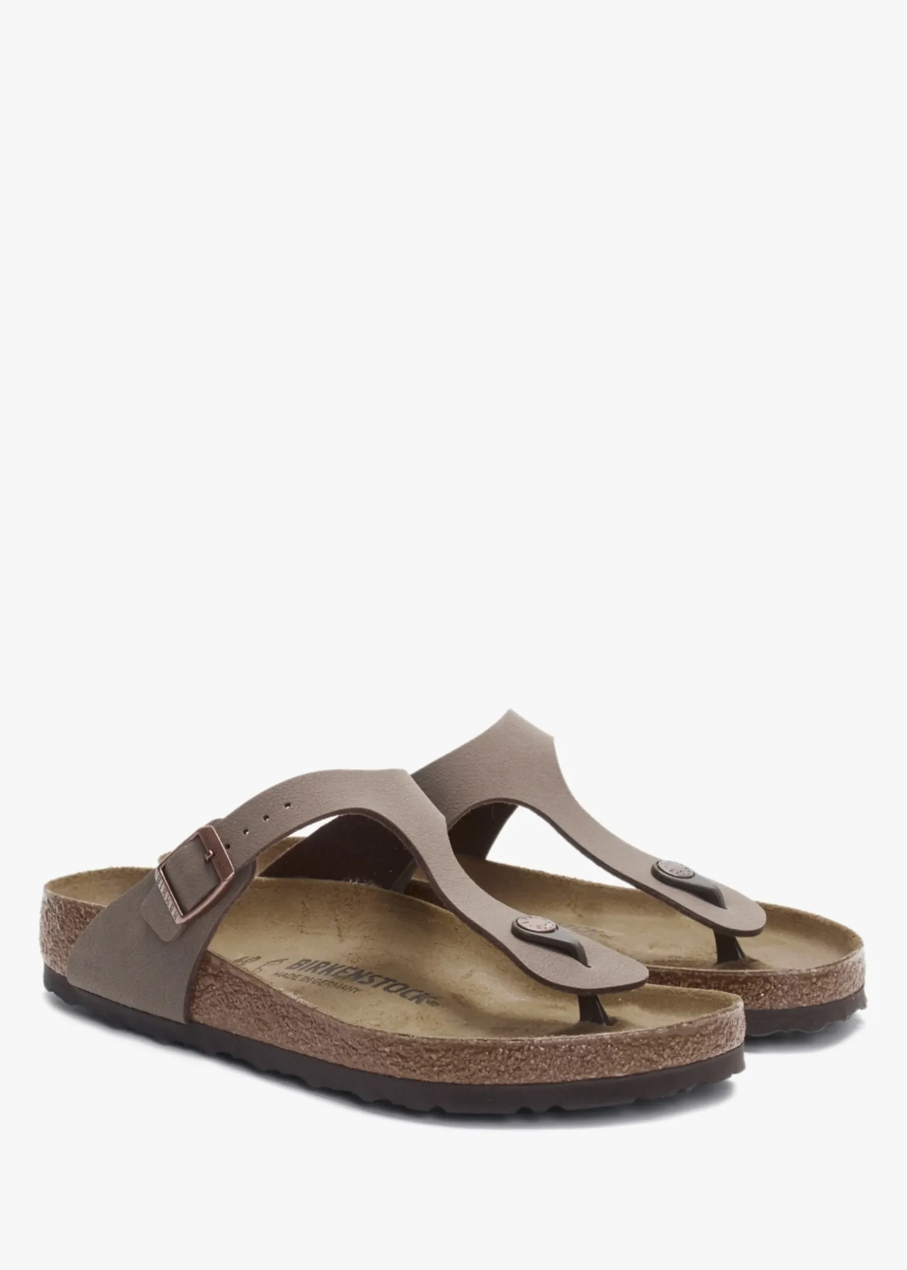 Another classic style from Birkenstock- updated with a faux nubuck finish. The ‘Gizeh’ is a toe post style features ‘Birkenstock’ branded buckle and hardware to the toe. Crafted from a Birko-Flor nubuck upper with leather insole, EVA sole and cork foot-bed that has been contoured to conform to the shape of your foot, with arch support and an extra layer of cushioning for optimum comfort. Signature Birkenstock branding is seen throughout.