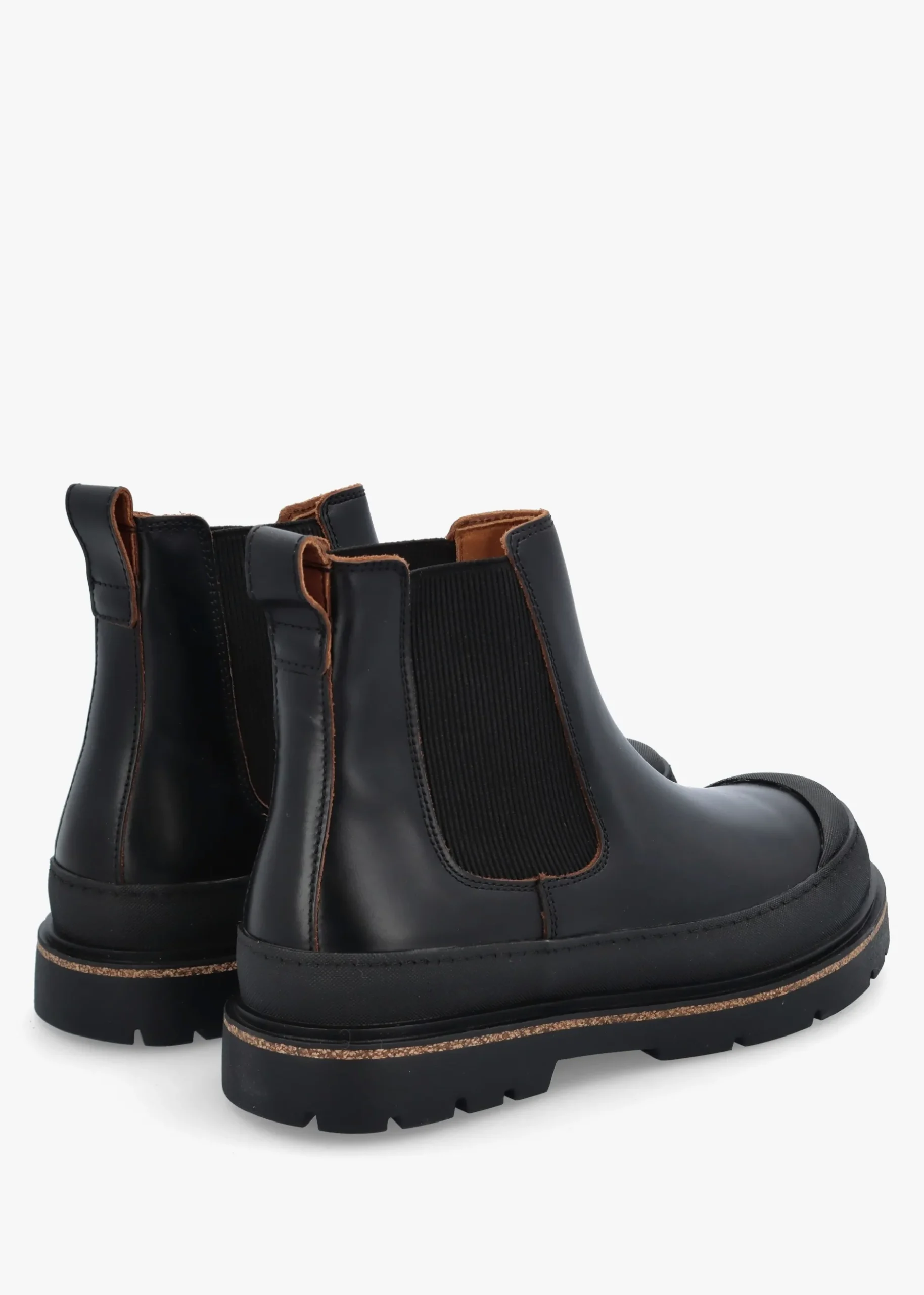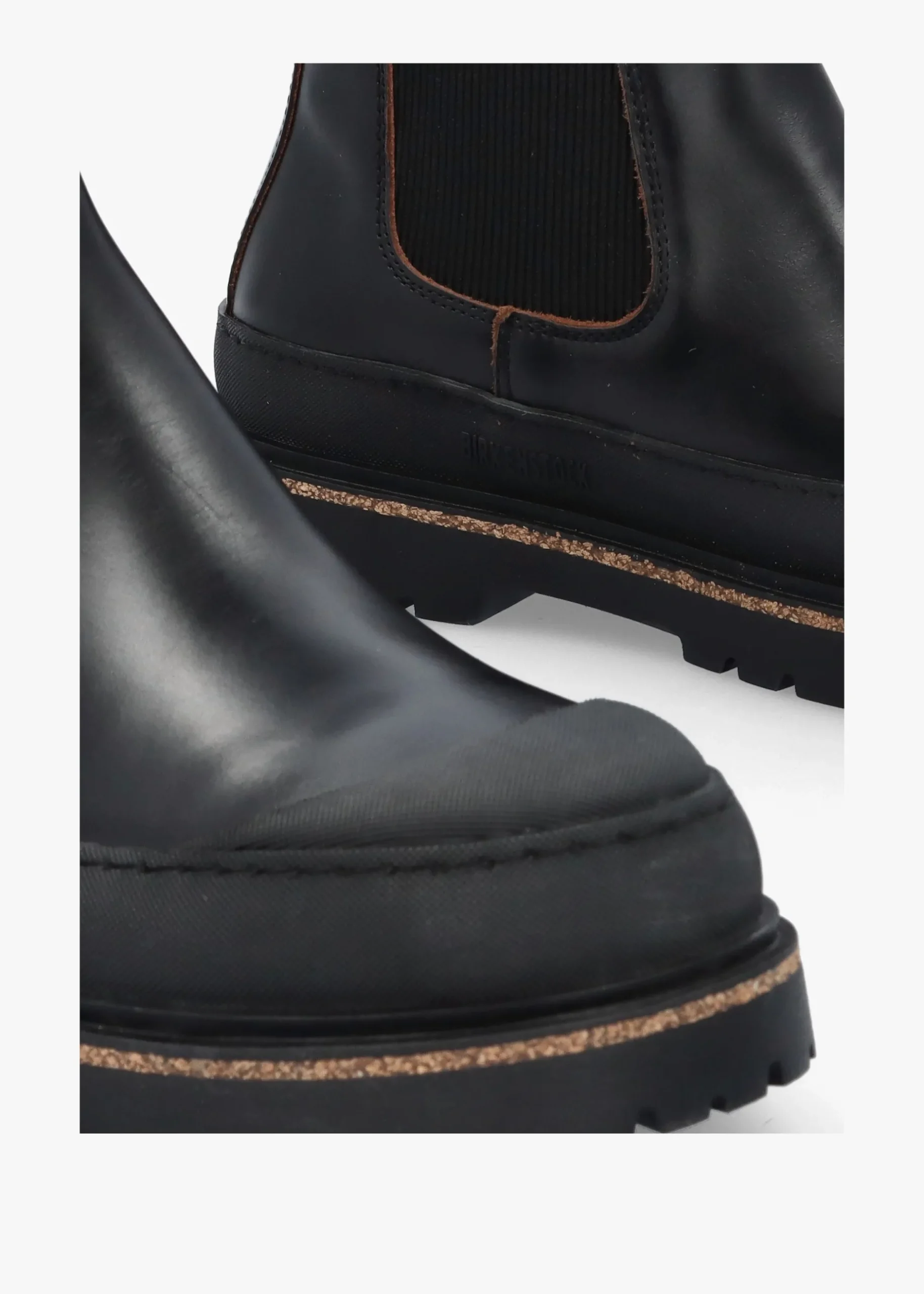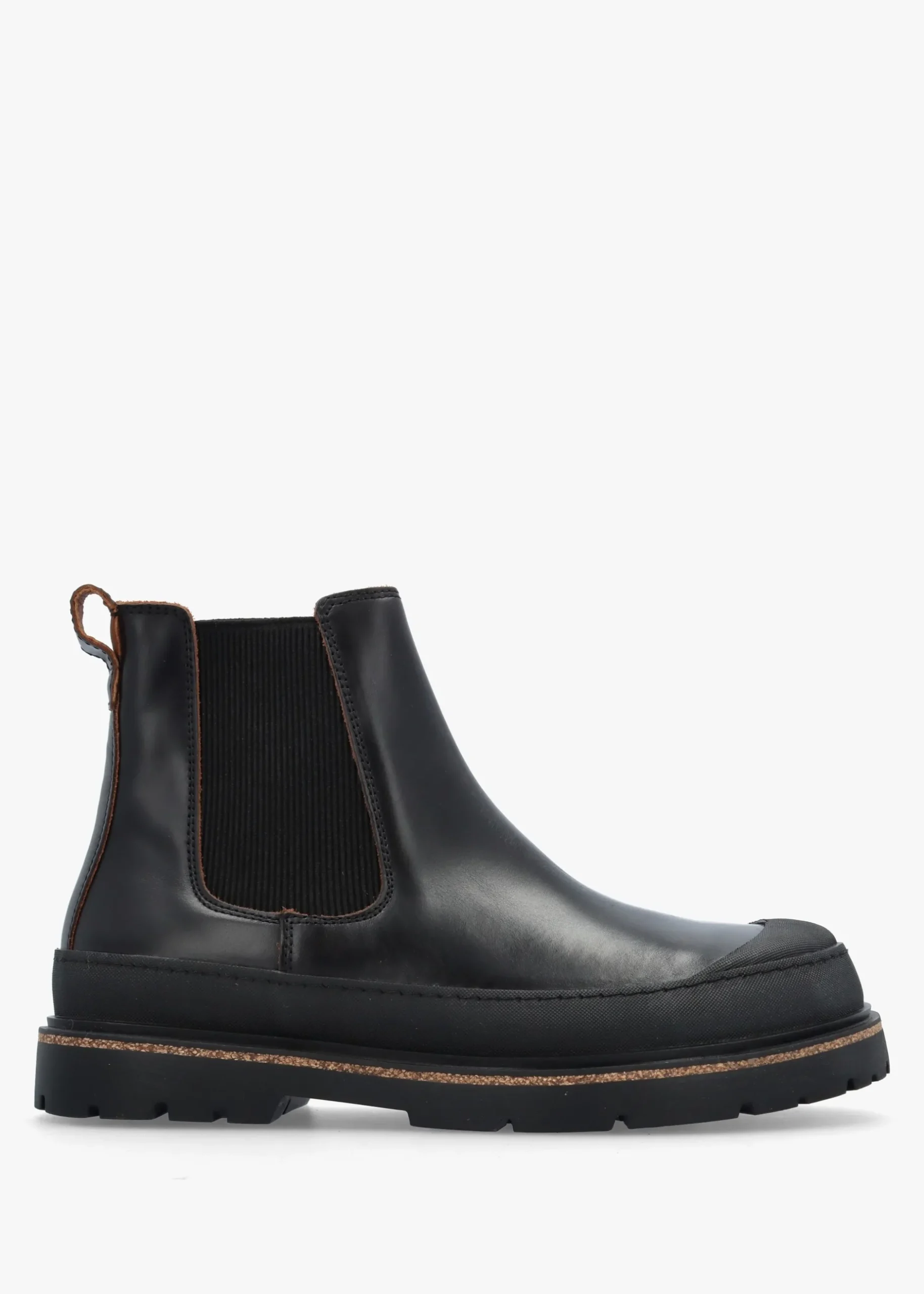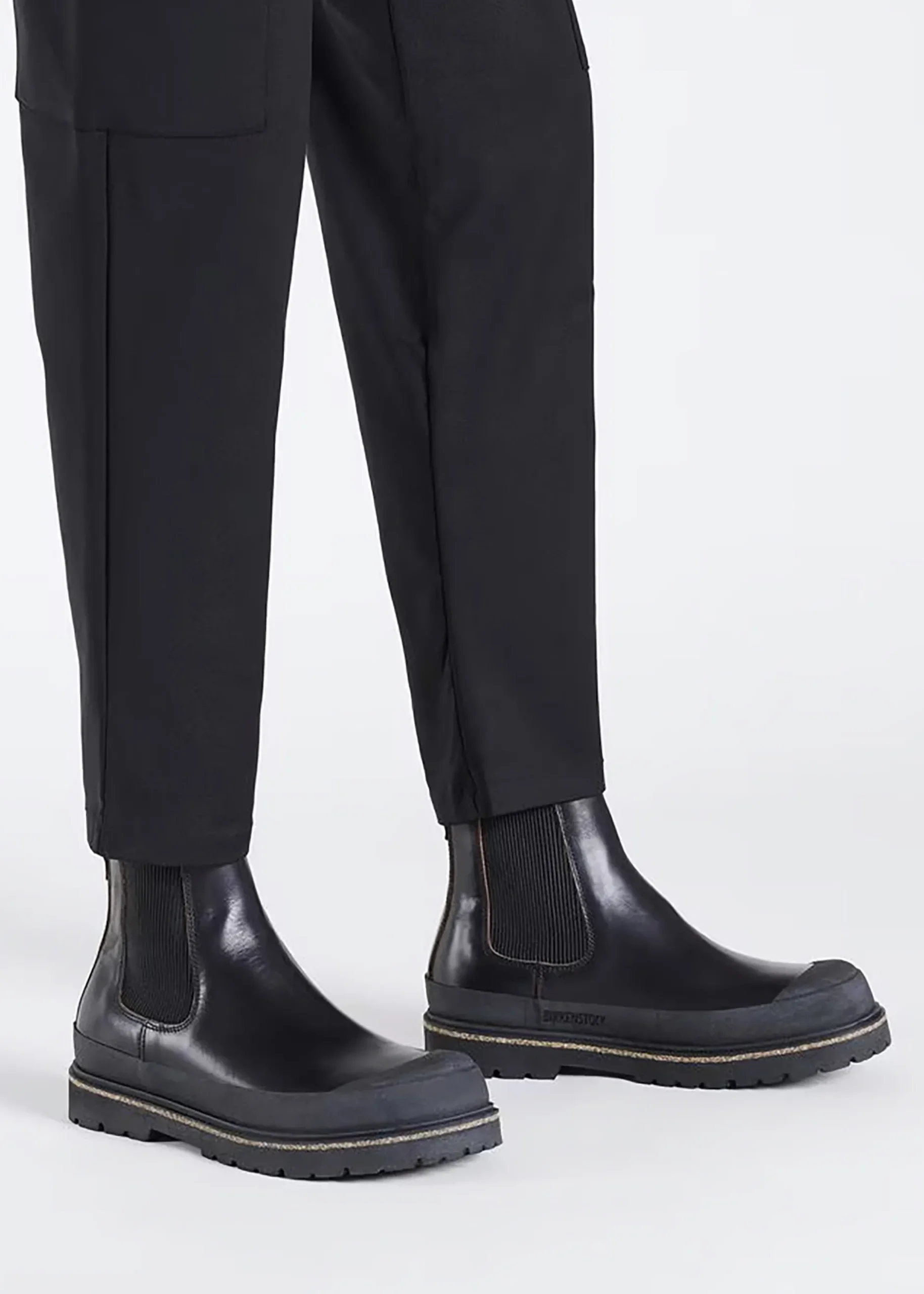 New from Birkenstock this Winter Season the men’s ‘Prescott’ Chelsea boots. This smart casual style is crafted from a premium waxy leather upper with microfiber lining and a natural rubber sole featuring Birkenstocks instantly recognizable cork element. The addition of the mudguard trim provides extra protection from the elements. An easy to wear style featuring elasticated gussets and pull tab to the back of the ankle. Signature Birkenstock branding is seen throughout.