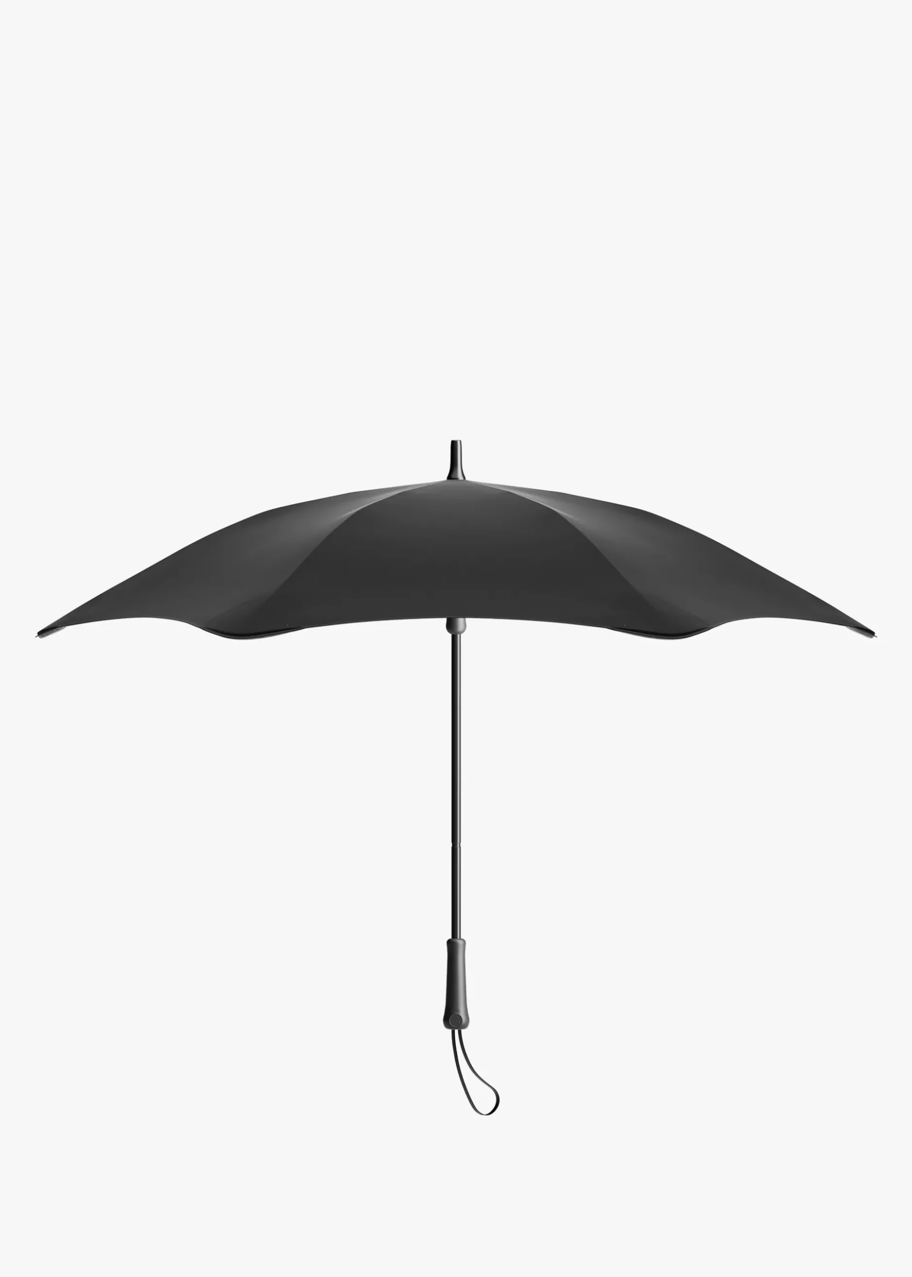 Add the simple yet stylish ‘Classic’ umbrella from BLUNT to your accessories collection. This full coverage design features a uniquely shaped canopy silhouette with rigid wing edges, made up of the brands six patented BLUNT tips. A go-to-style to keep you protected come rain or shine, a daily must have that can be carried neatly on the shoulder via the cover sleeve strap. Signature BLUNT branding adds detail.