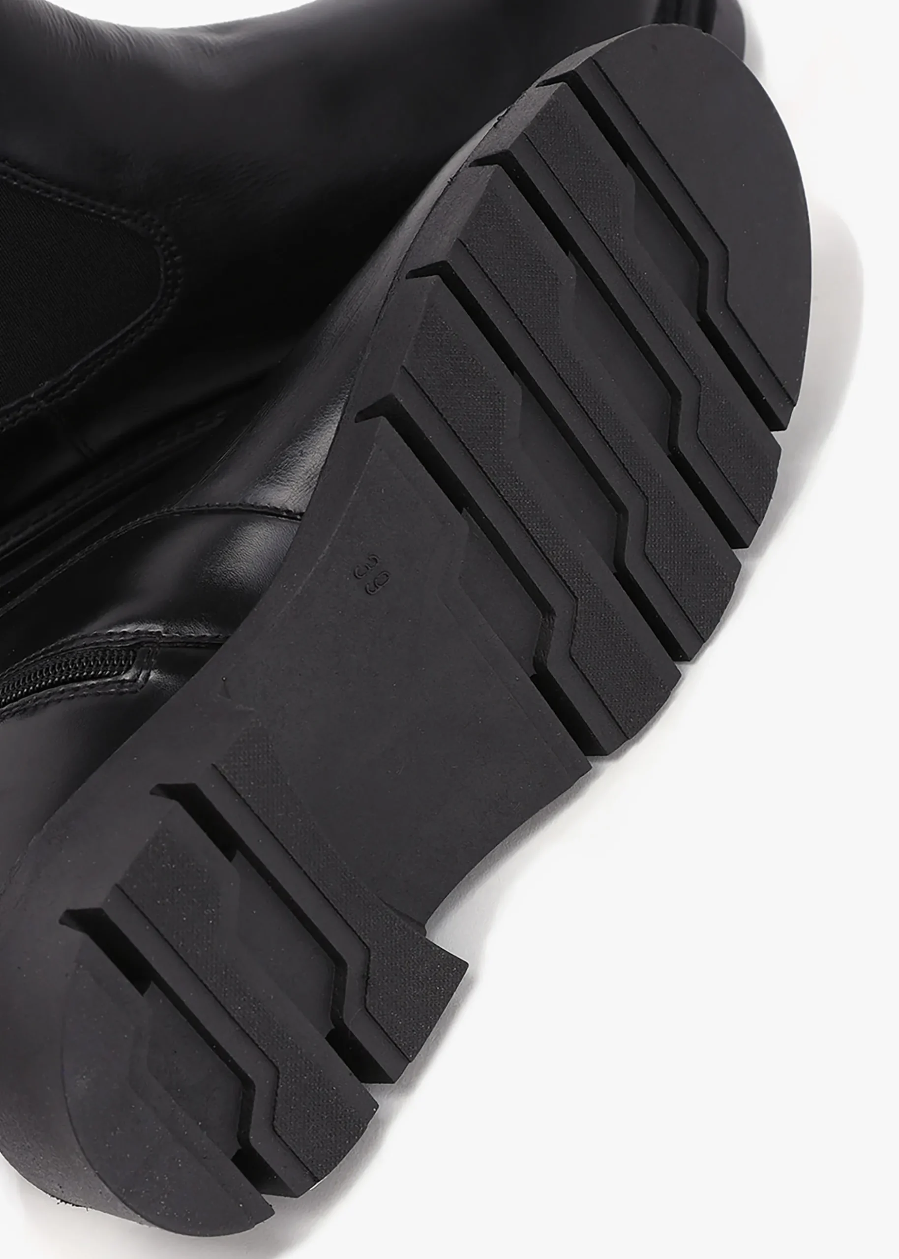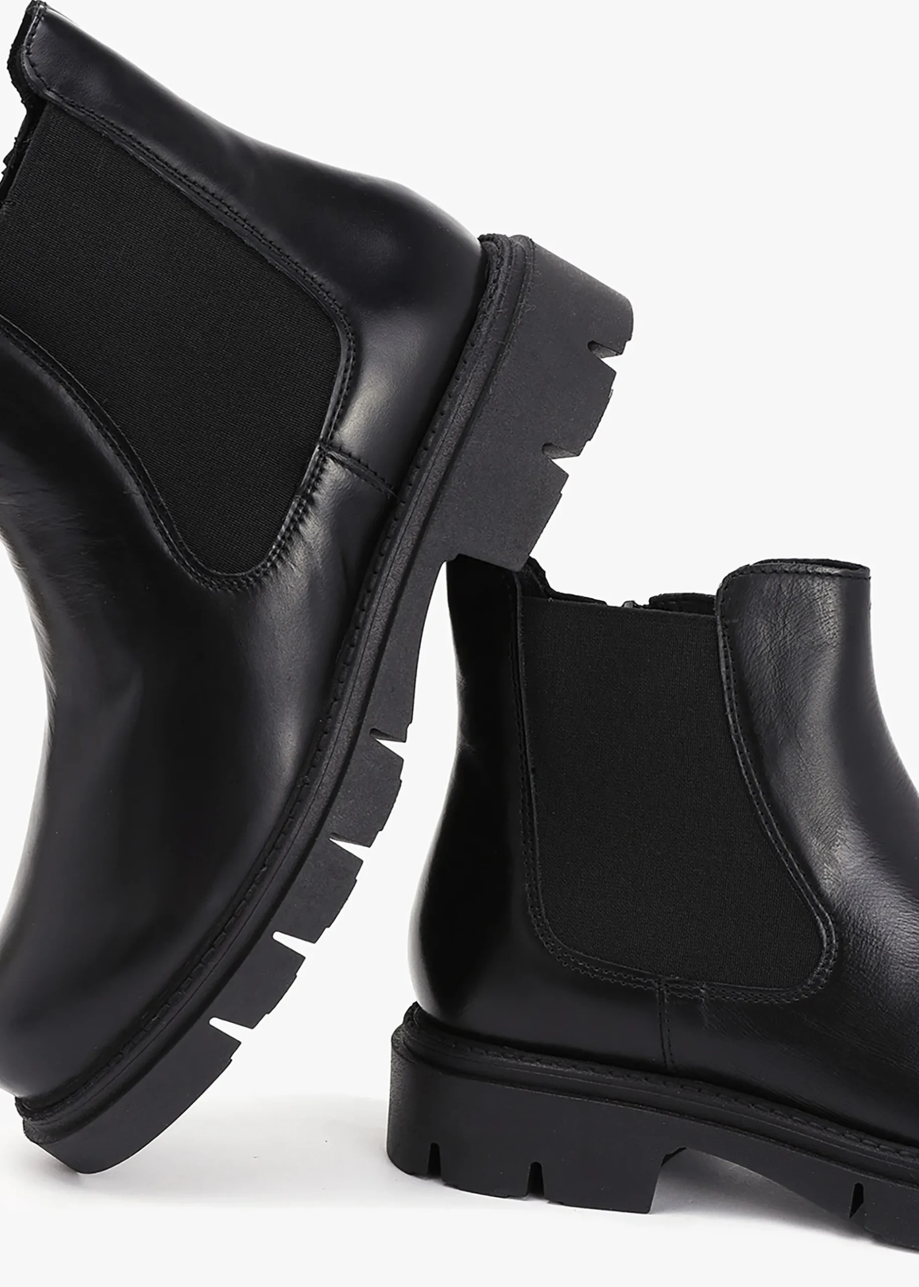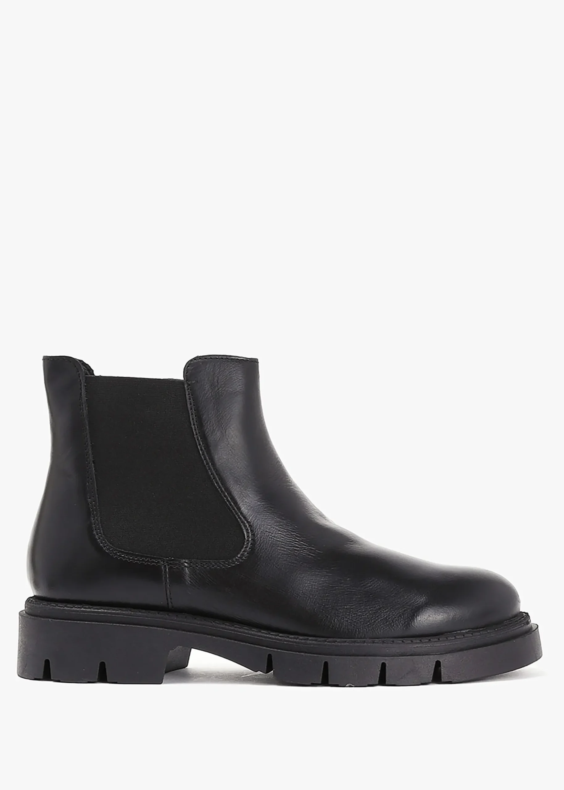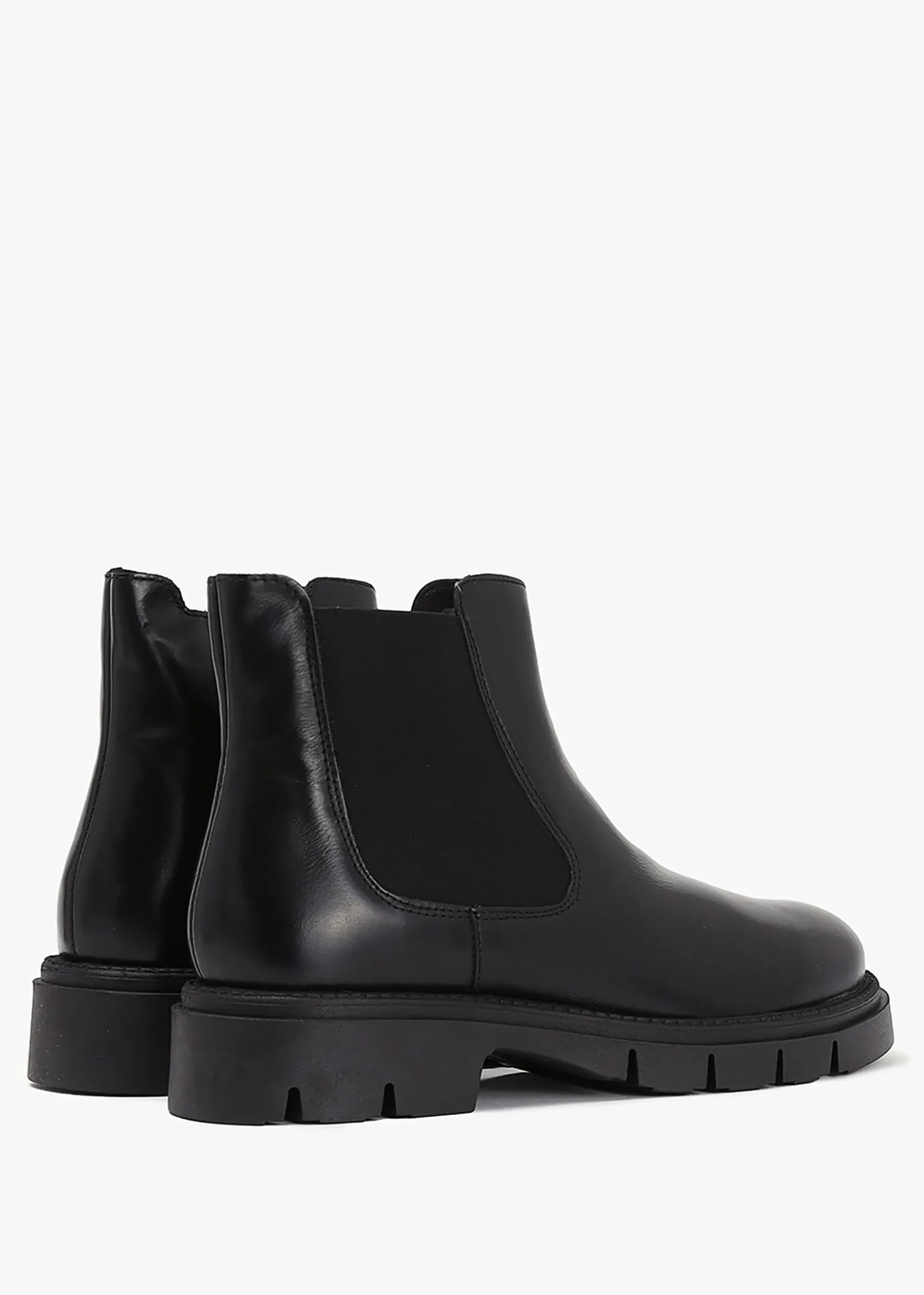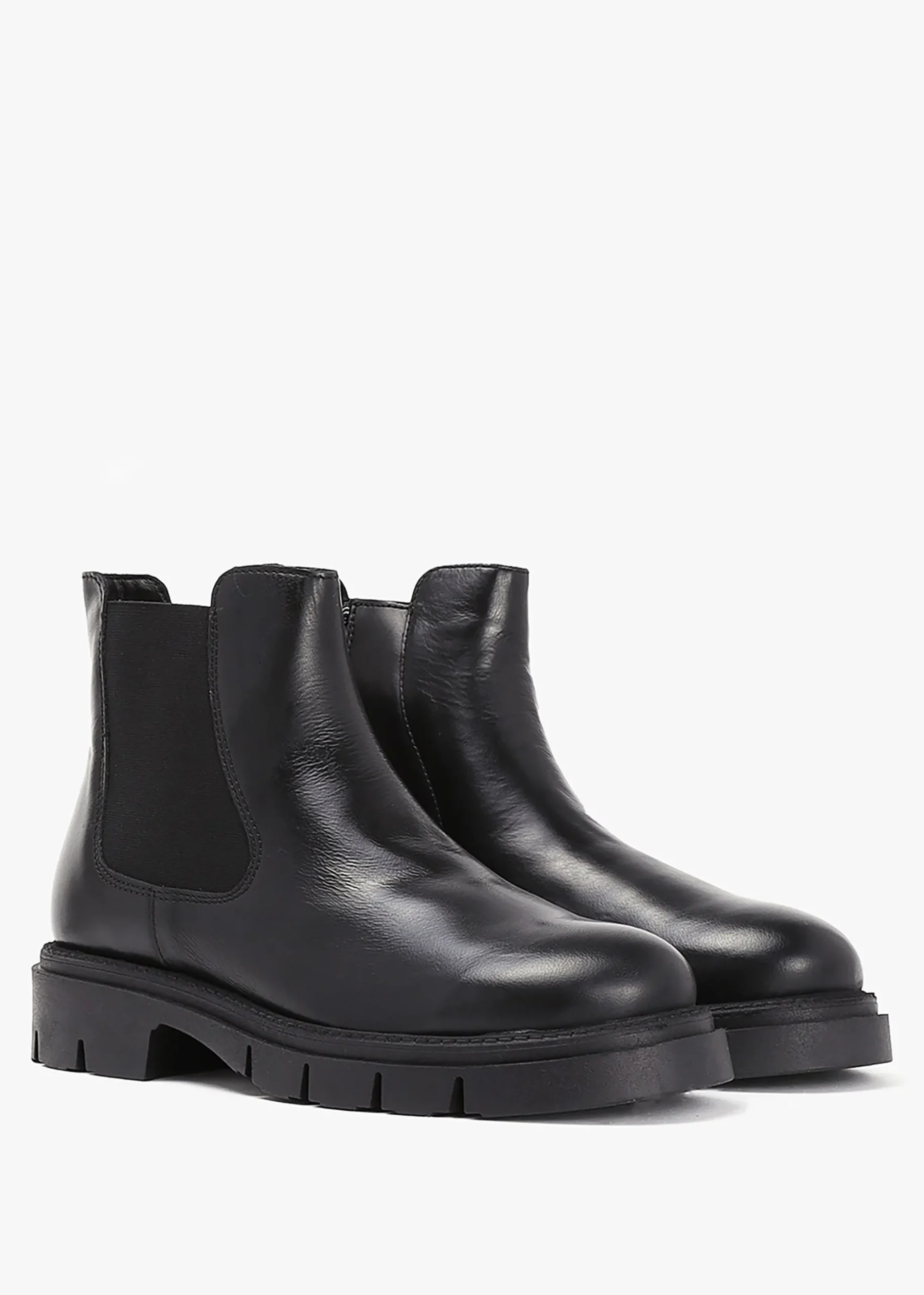 The ‘Leah’ Chelsea boots are part of the New Season collection from Daniel Footwear. This everyday style is crafted from a premium leather upper with textile lining and chunky cleated rubber sole. Zip fastening to the inner leg creates an easy wear. Classic elasticated inserts add detail. The round toe and flat heel make up the silhouette. Signature Daniel branding is seen to the foot-bed.
