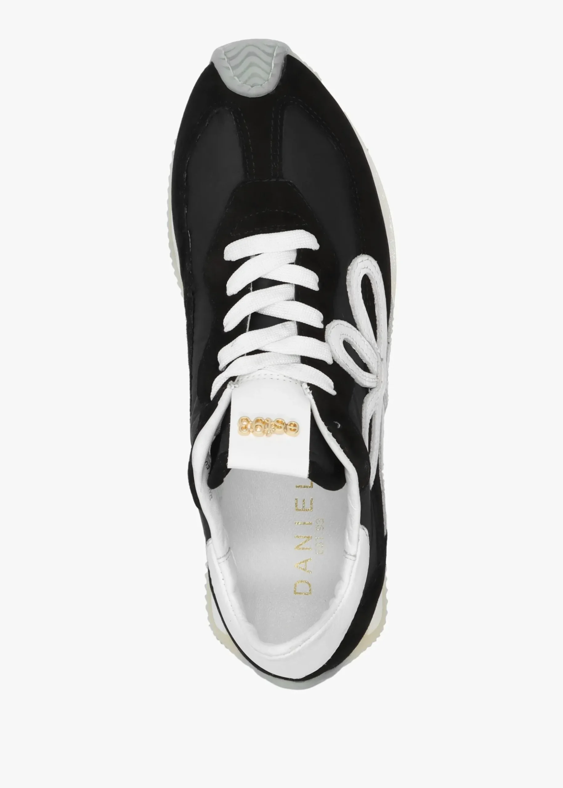 Add the New Season ‘Movie’ runner trainers from Daniel to your off-duty wardrobe. This retro inspired runner style is crafted from a premium suede and textile upper with leather trim, textile lining and a comfy rubber sole. The lace up upper ensures the perfect fit. ‘EST.93’ hardware adds detail to the tongue, a nod to the year our band was created. Statement applique detail features to the side of the trainers. Signature Daniel branding is seen to the footbed.