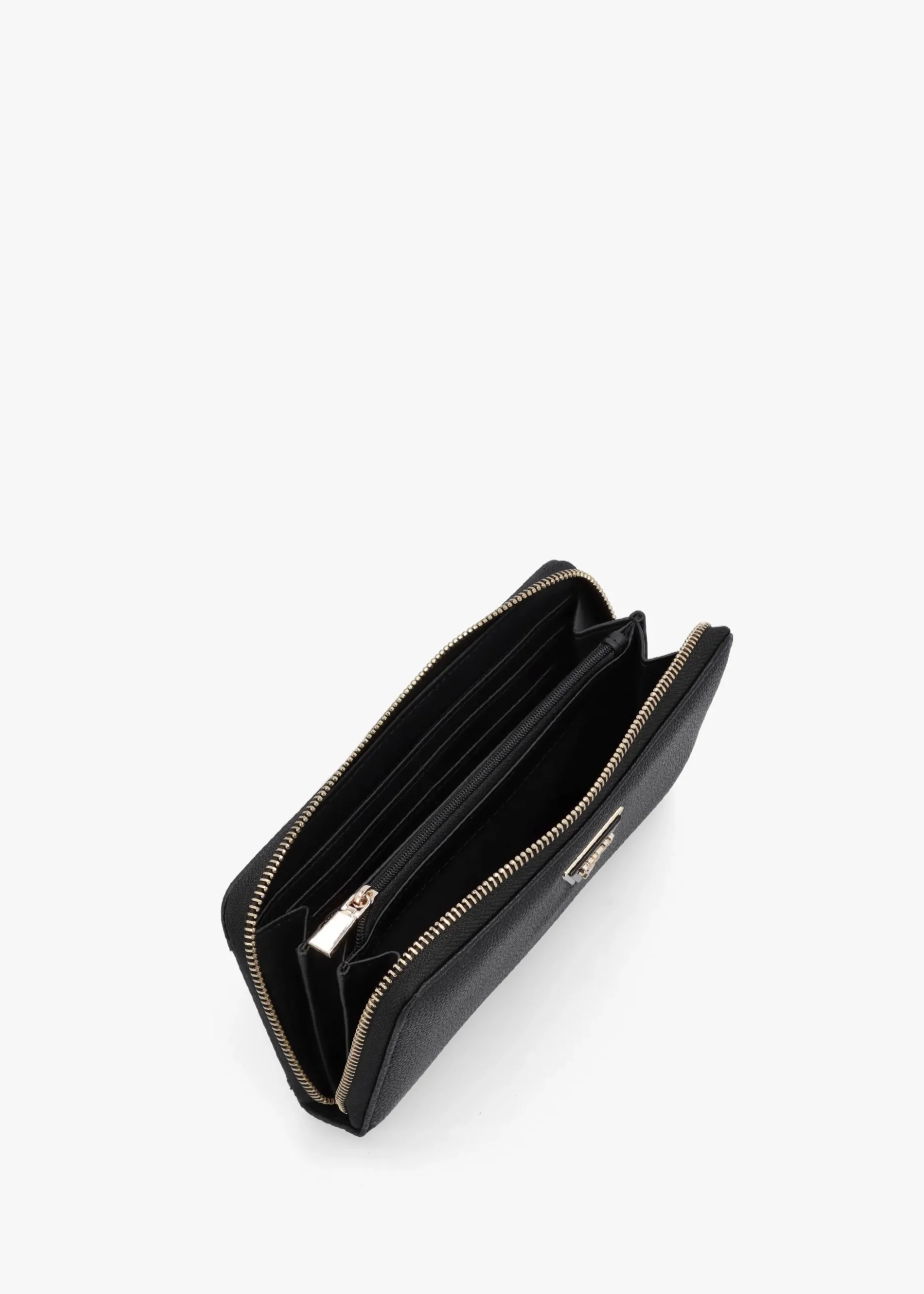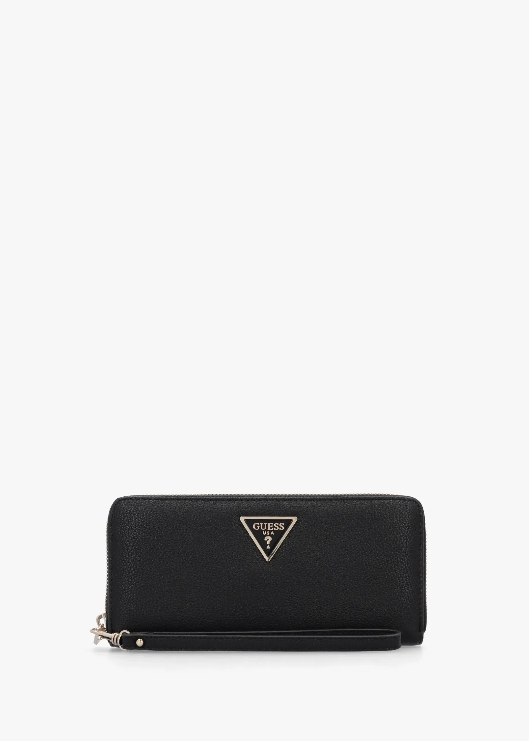 Keep all your cards, notes, and coins in check this New Season with the ‘Large Laurel’ wallet from GUESS. This New Season accessory is perfect for everyday use. Crafted from premium PU in a textured design with polished gold tone accents. The secure zip around fastening reveals multiple handy compartments, exterior zip pocket also features. Signature GUESS branding is seen throughout.