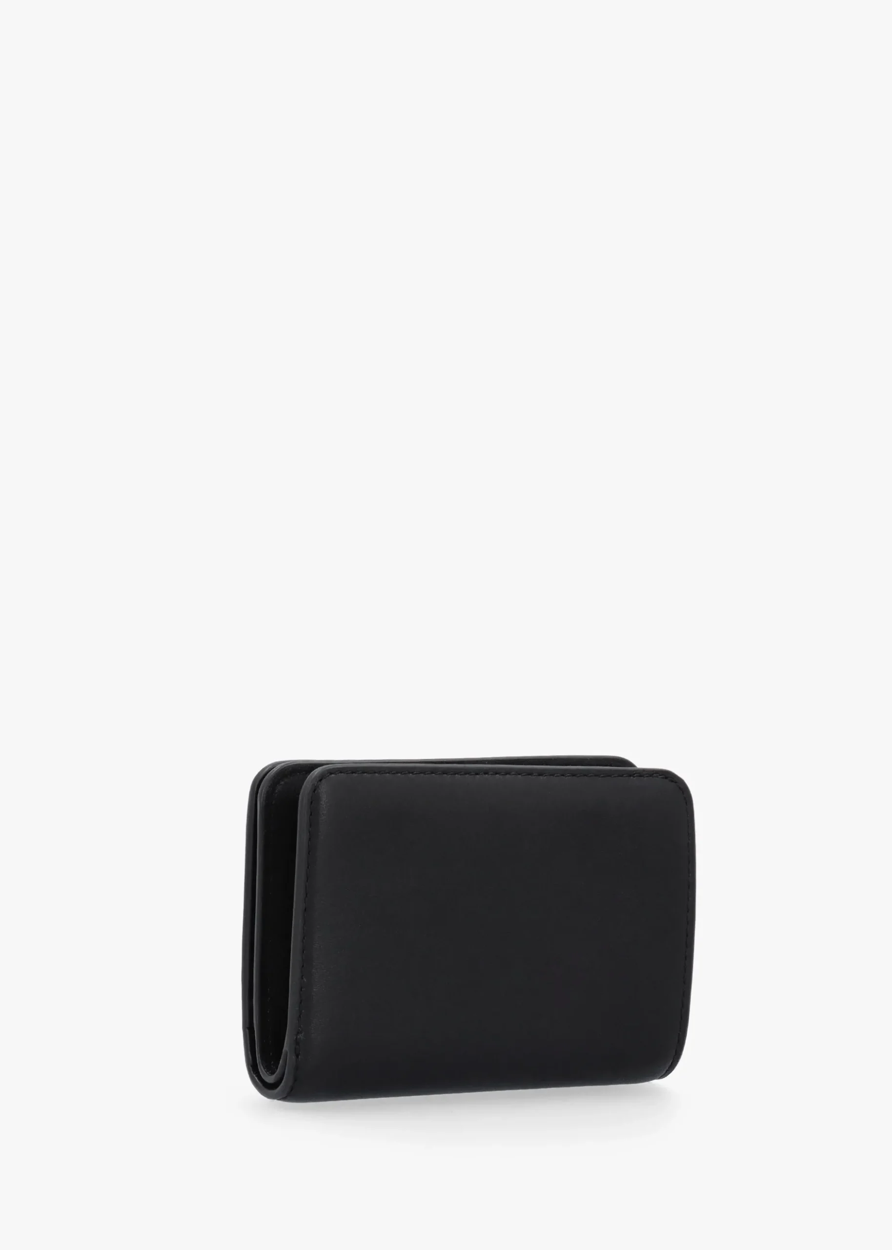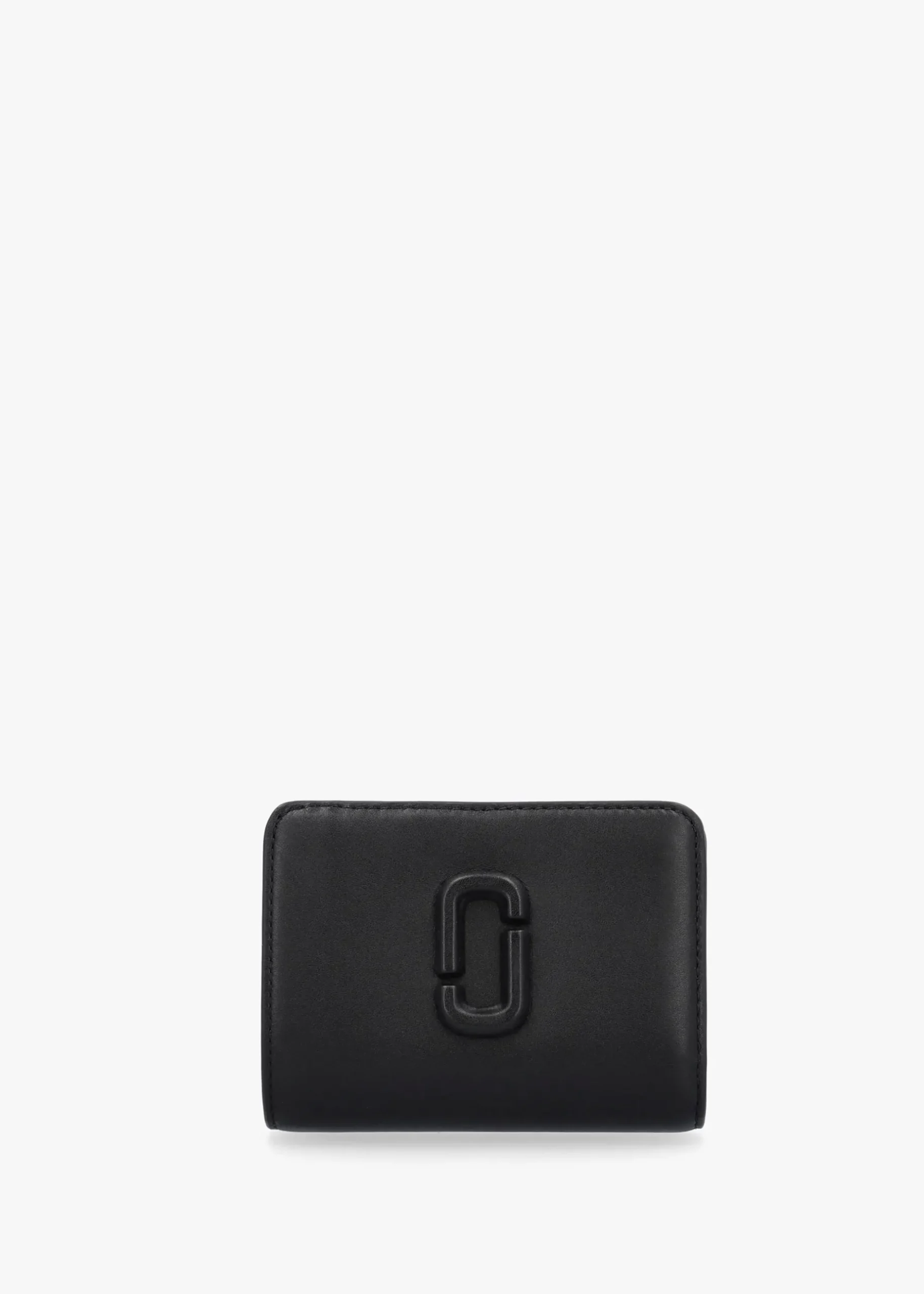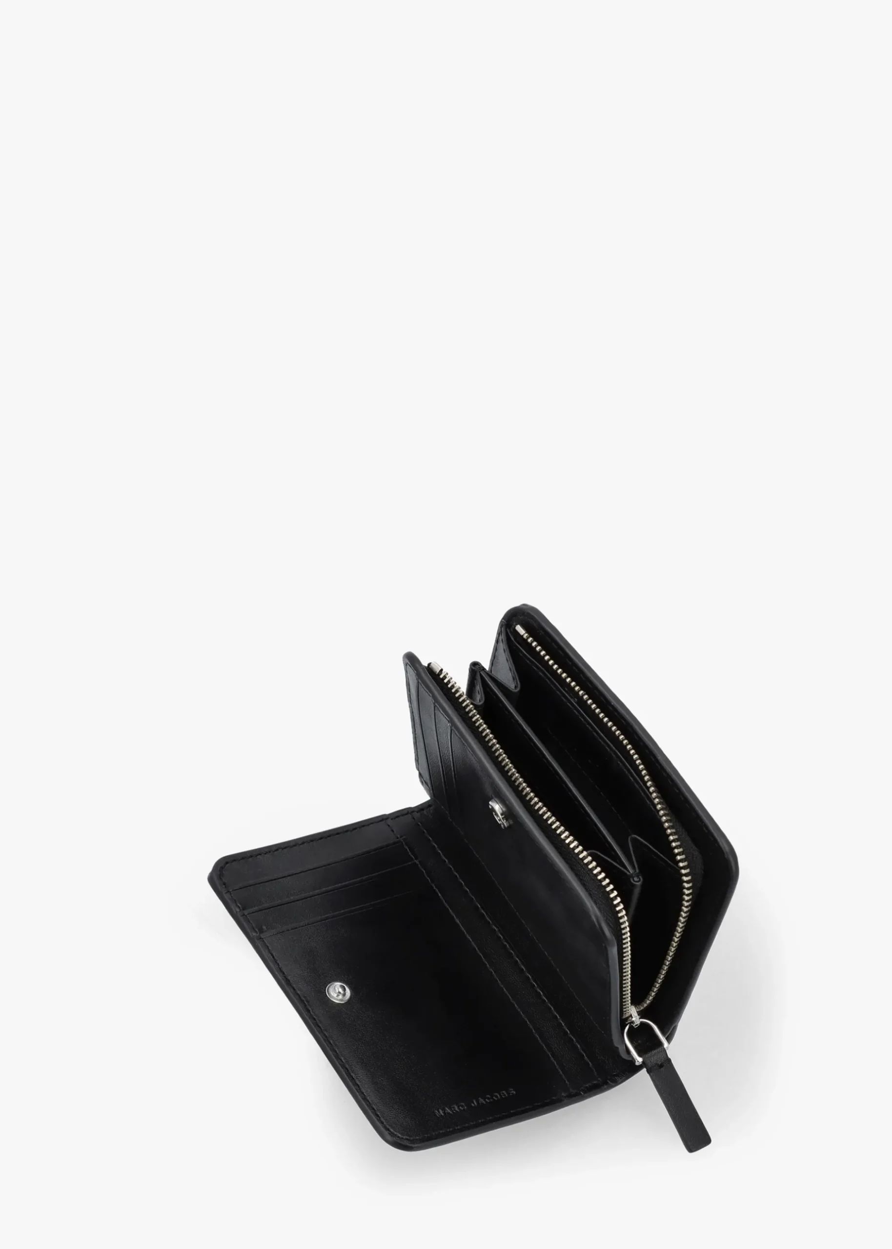 ‘The Covered J Marc Mini Compact’ wallet from Marc Jacobs to your accessories collection. This everyday style is crafted from premium smooth leather with twill lining and silver tone accents. The secure popper and zip fastening reveals multiple classic compartments. Iconic double ‘J’ logo adds detail to the front of the wallet. Signature Marc Jacobs branding is seen throughout.