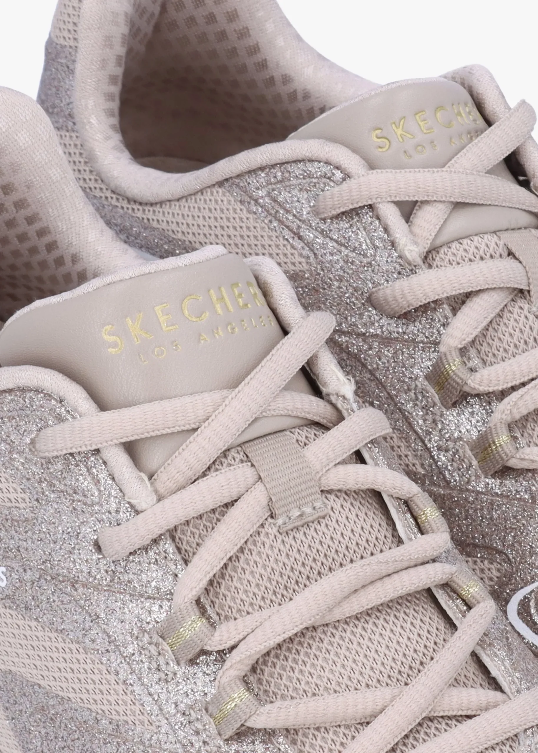 The women’s ‘Tres-Air Uno Glit-Airy’ trainers are part of the New Season collection from Skechers®. This sporty fashion style is crafted from a mesh upper with glitter trim, Skechers® air-cooled memory foam® insole and a visible Skech-Air® airbag midsole. The classic lace up upper ensures the perfect it. Signature Skechers® branding is seen throughout.