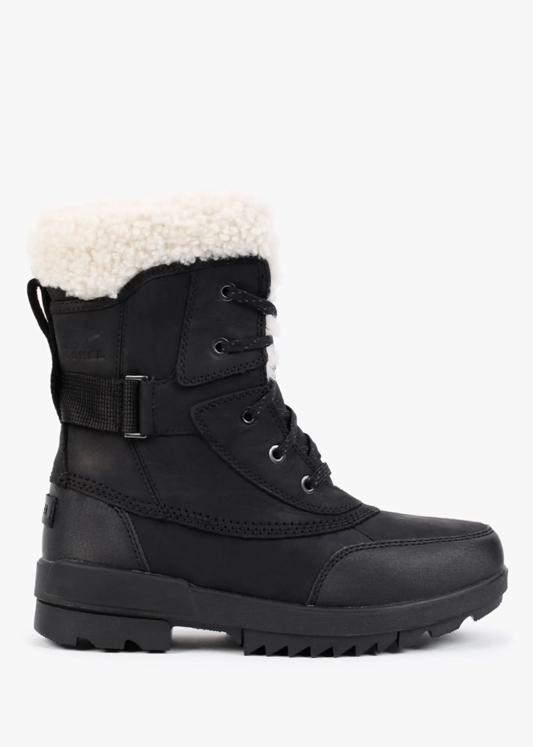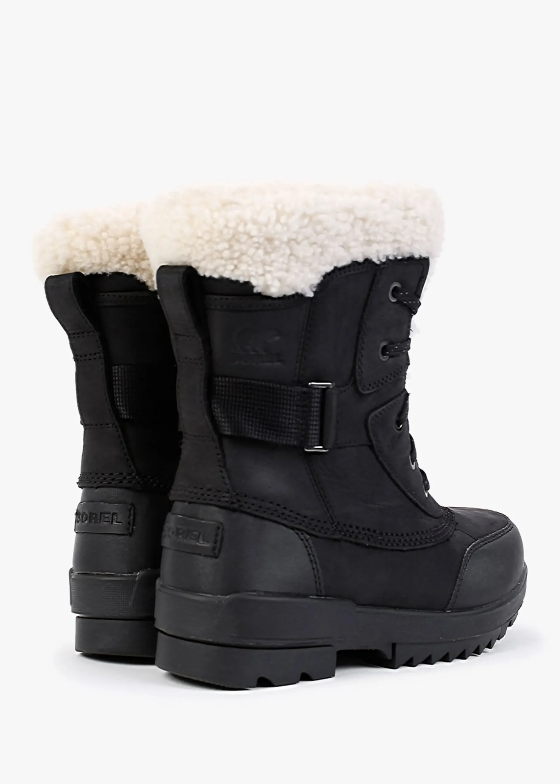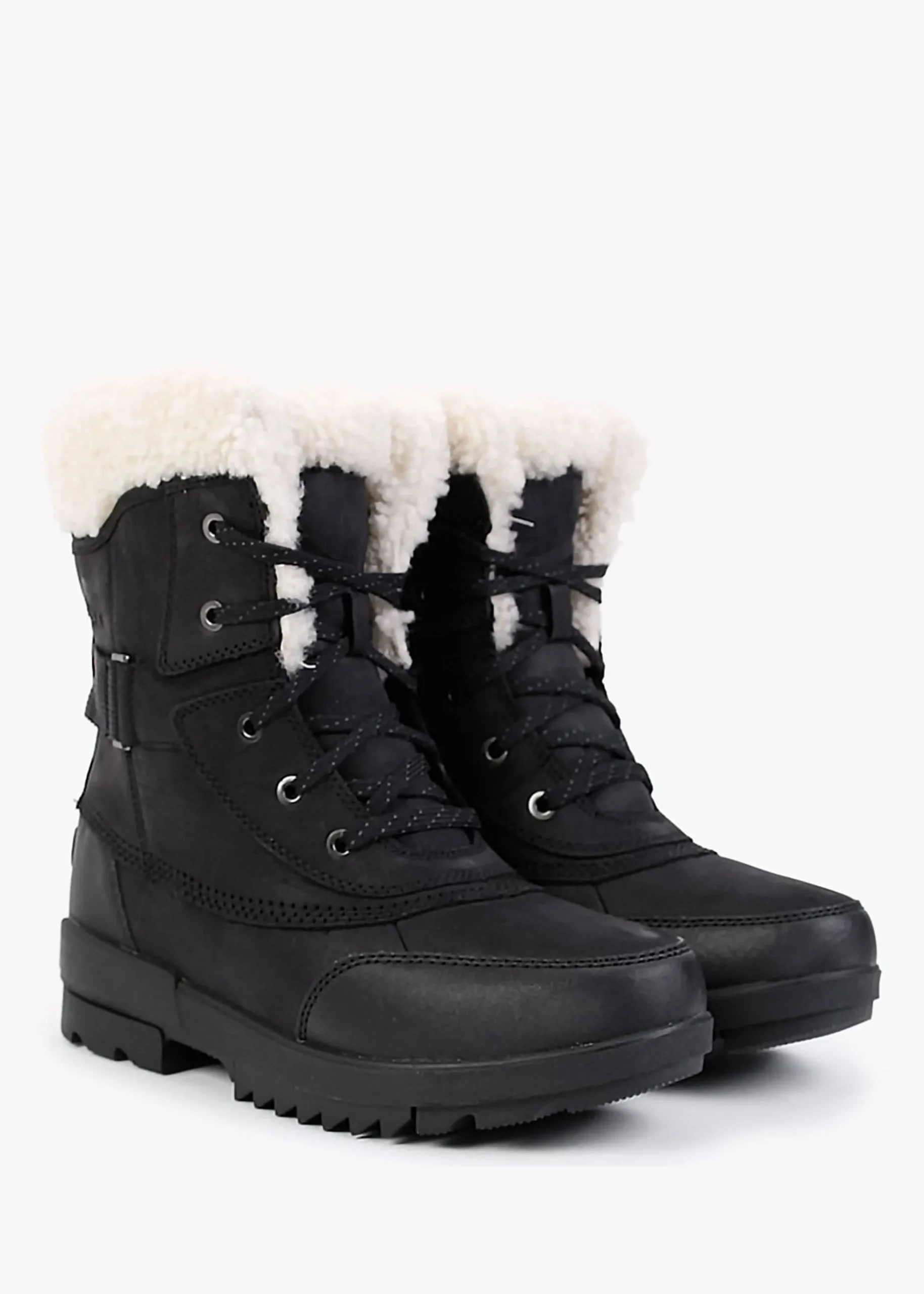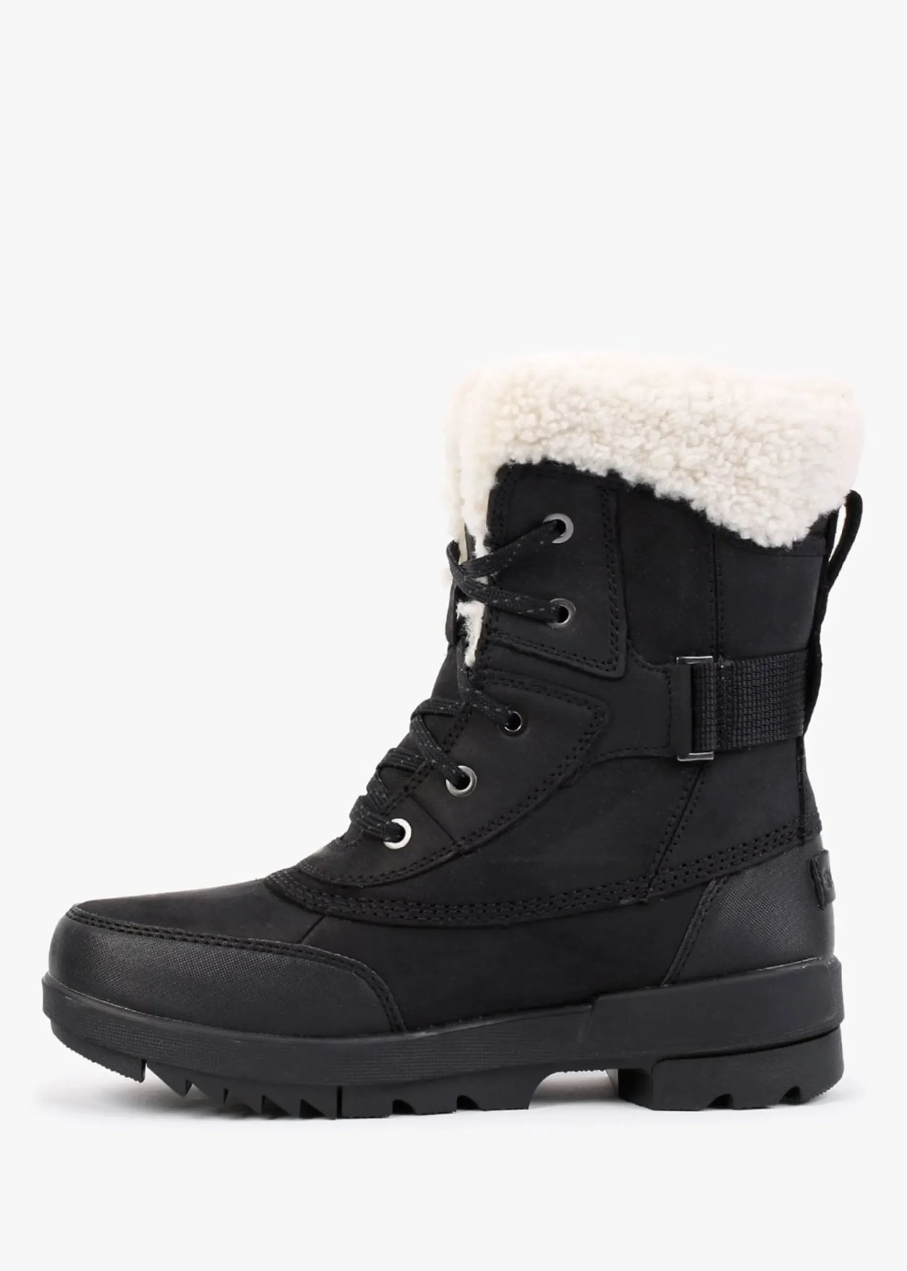 Add the ‘Torino II Parc’ boots from Sorel to your Winter wardrobe. Rugged laces meet genuine shearling in this must have calf boot. Crafted from practical waterproof leather featuring genuine shearling collar, wool lining, an EVA foot-bed, and moulded rubber sole for added traction. Signature Sorel branding is seen throughout.