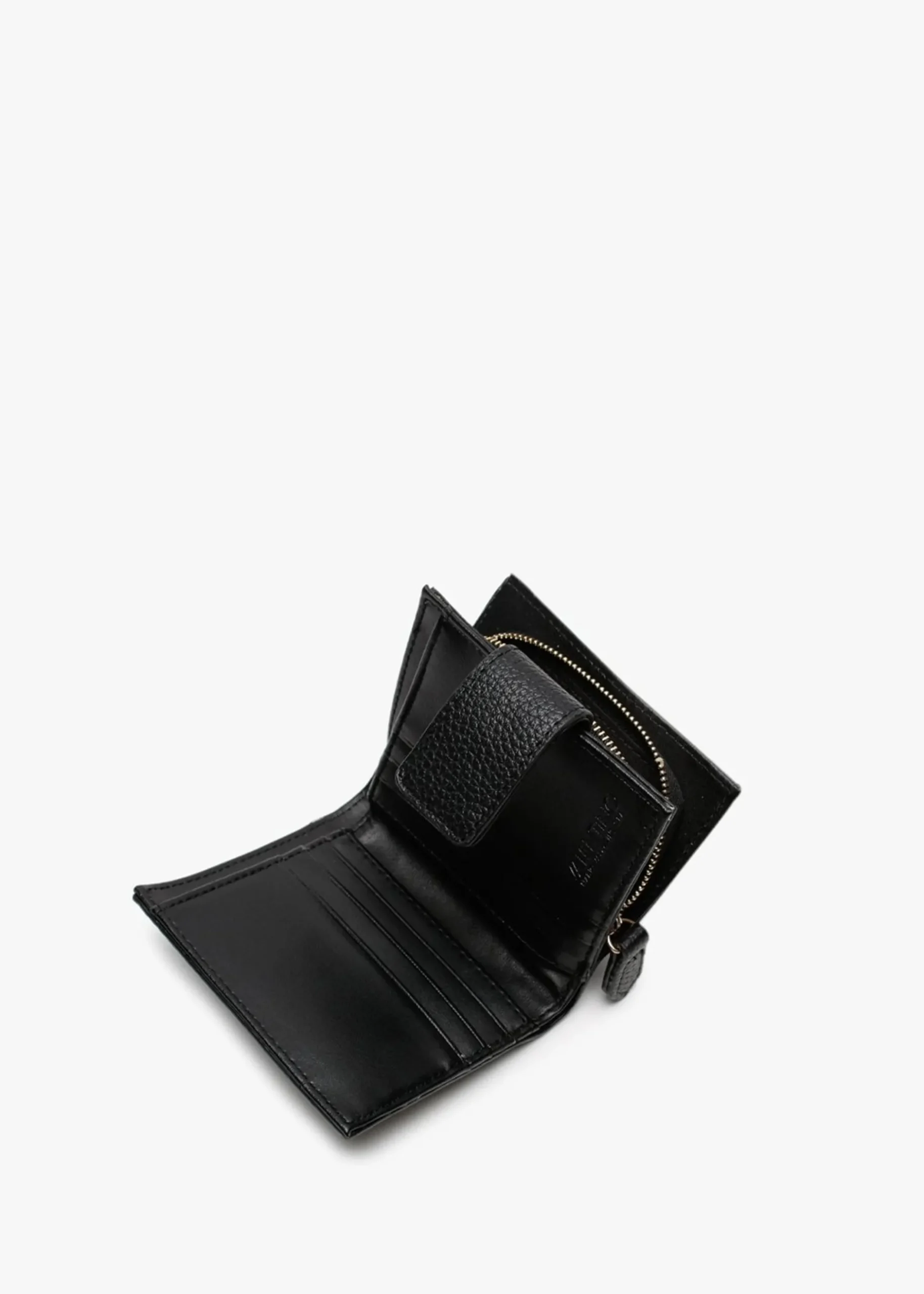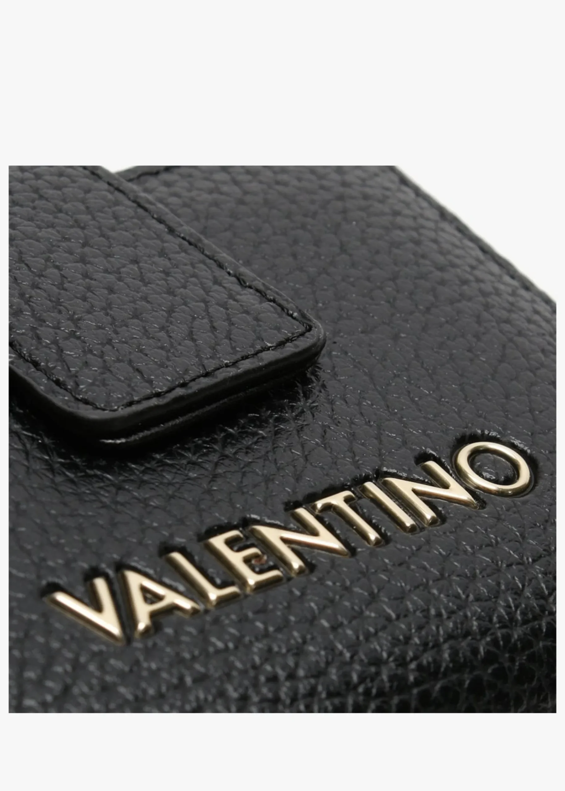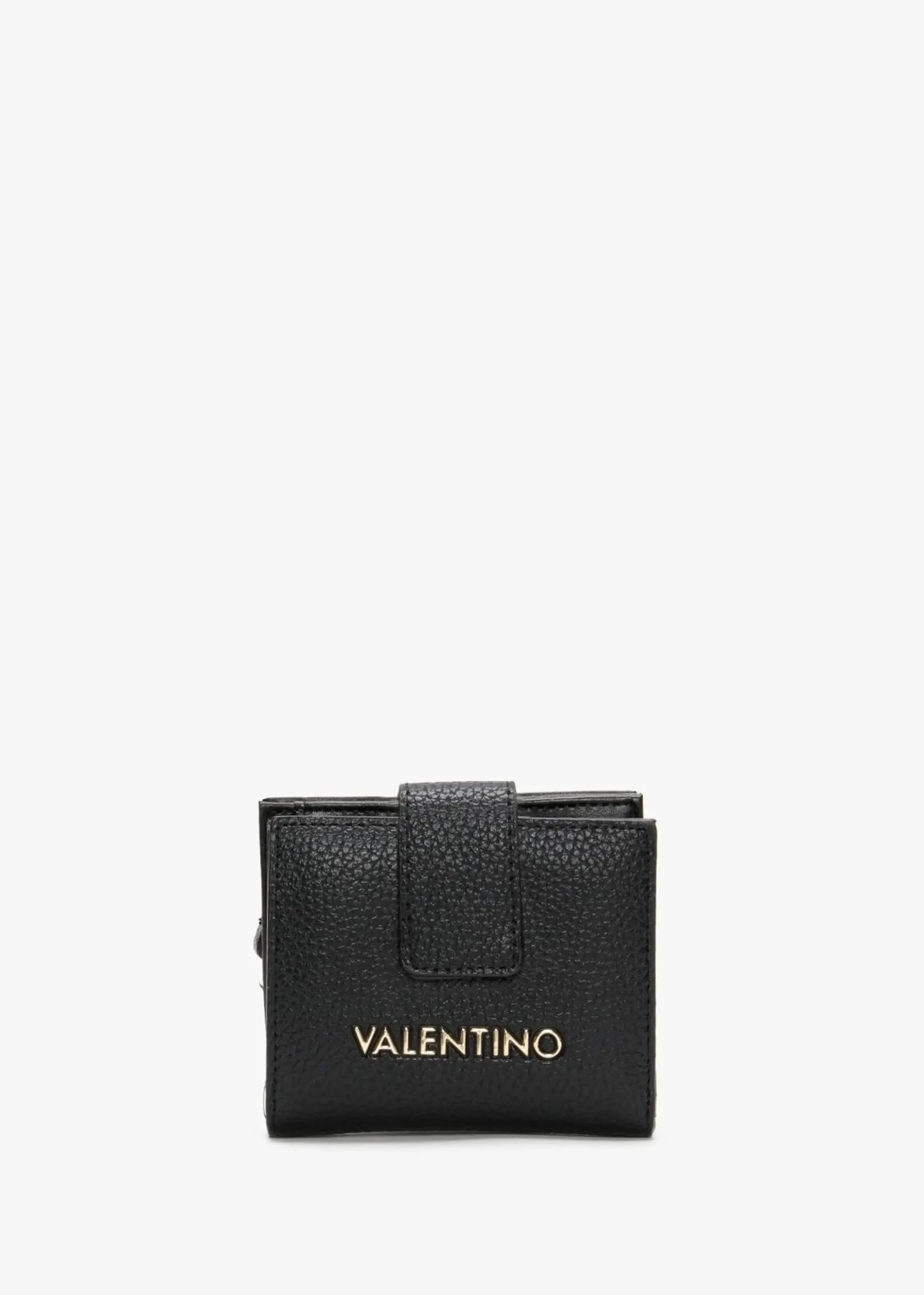 Keep all your coins notes and cards in check this New Season with the ‘Zip Around’ wallet from Valentino Bags. This classic everyday style is crafted from premium pebbled PU with gold tone accents. The secure popper fastening strap reveals a zip fastening coin compartment, multiple card slots as well as a compartment for all your notes. Bold logo adds detail to the front of the purse. Signature Valentino Bag branding is seen throughout.