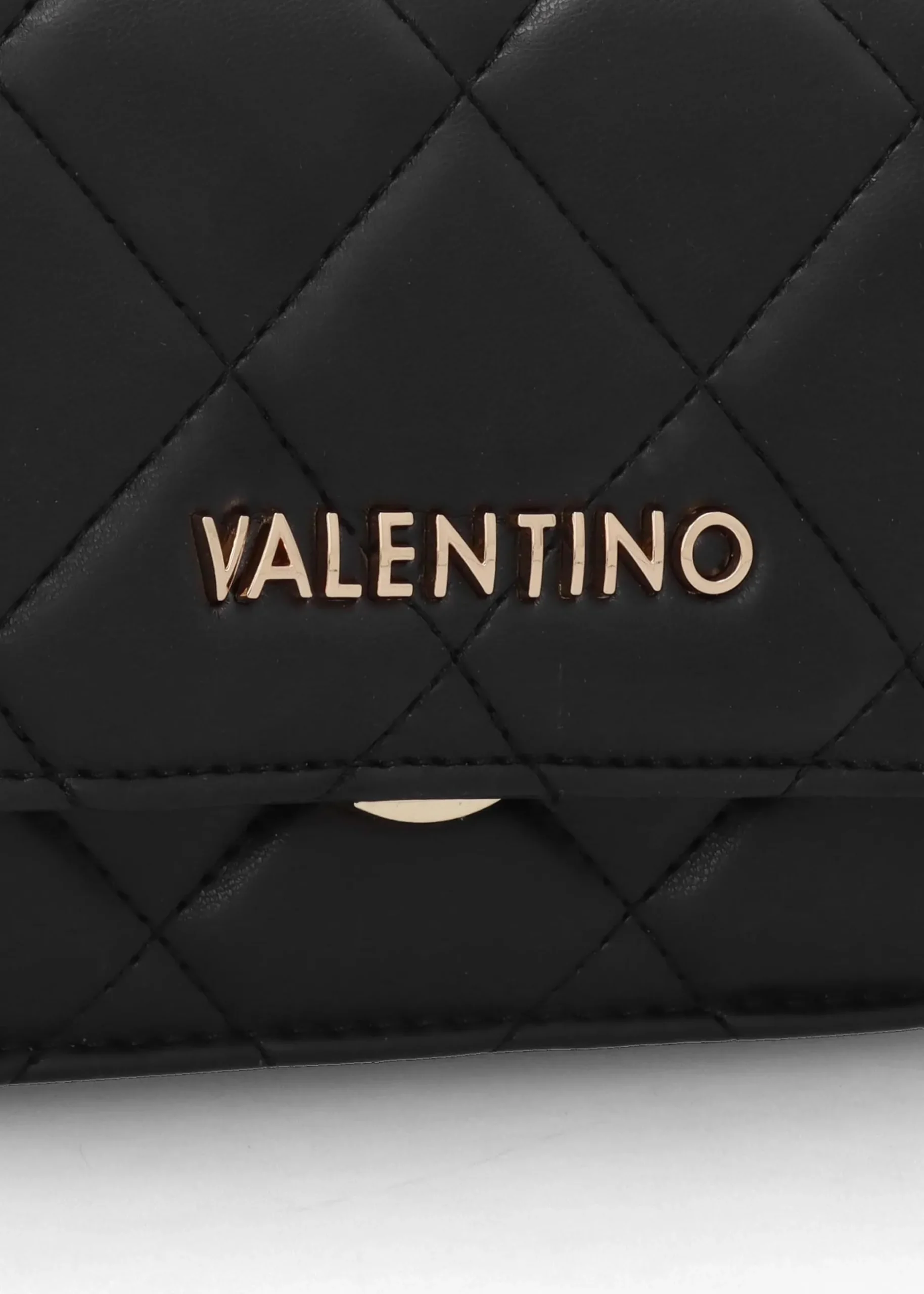 Buy the ‘Ocarina II’ shoulder bag from Valentino online today at Daniel Footwear. This day to dark style is crafted from premium PU made from part recycled materials in a classic quilted design with polished gold tone accents. The secure push lock front fastening reveals the main compartment with handy inner zip pockets, front slot pocket also features. Carry by the adjustable chain and PU strap on the shoulder or across the body. Signature Valentino branding is seen throughout.
