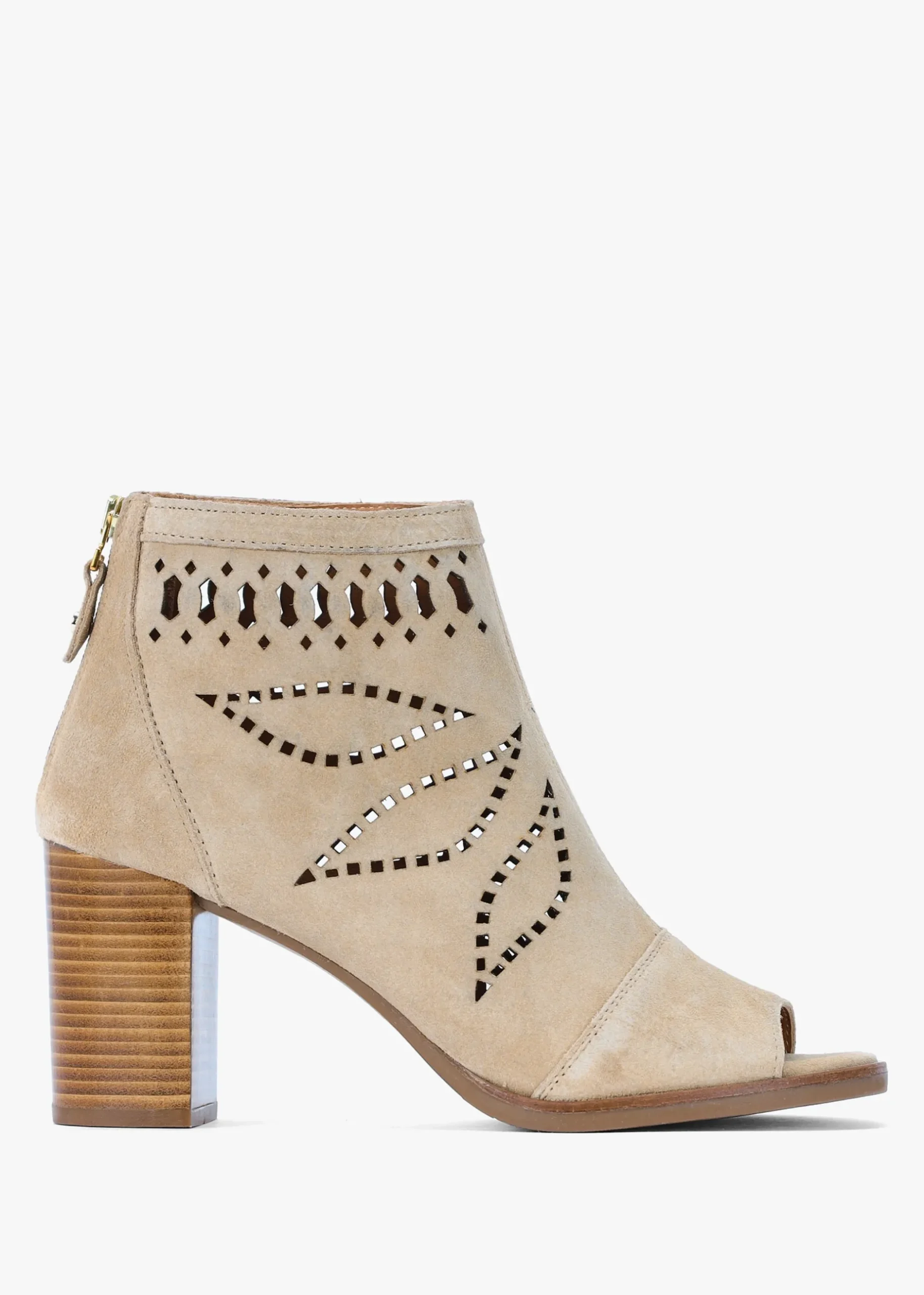 New from Alpe this Season the ‘Albany’ shoe boots. This versatile style is crafted from a premium suede upper with luxurious leather lining and a man-made sole. Zip fastening to the back of the ankle creates an easy wear. Decorative perforation adds detail to the upper. The feminine peep toe and high block heel make up the silhouette. Signature Alpe branding is seen to the footbed.