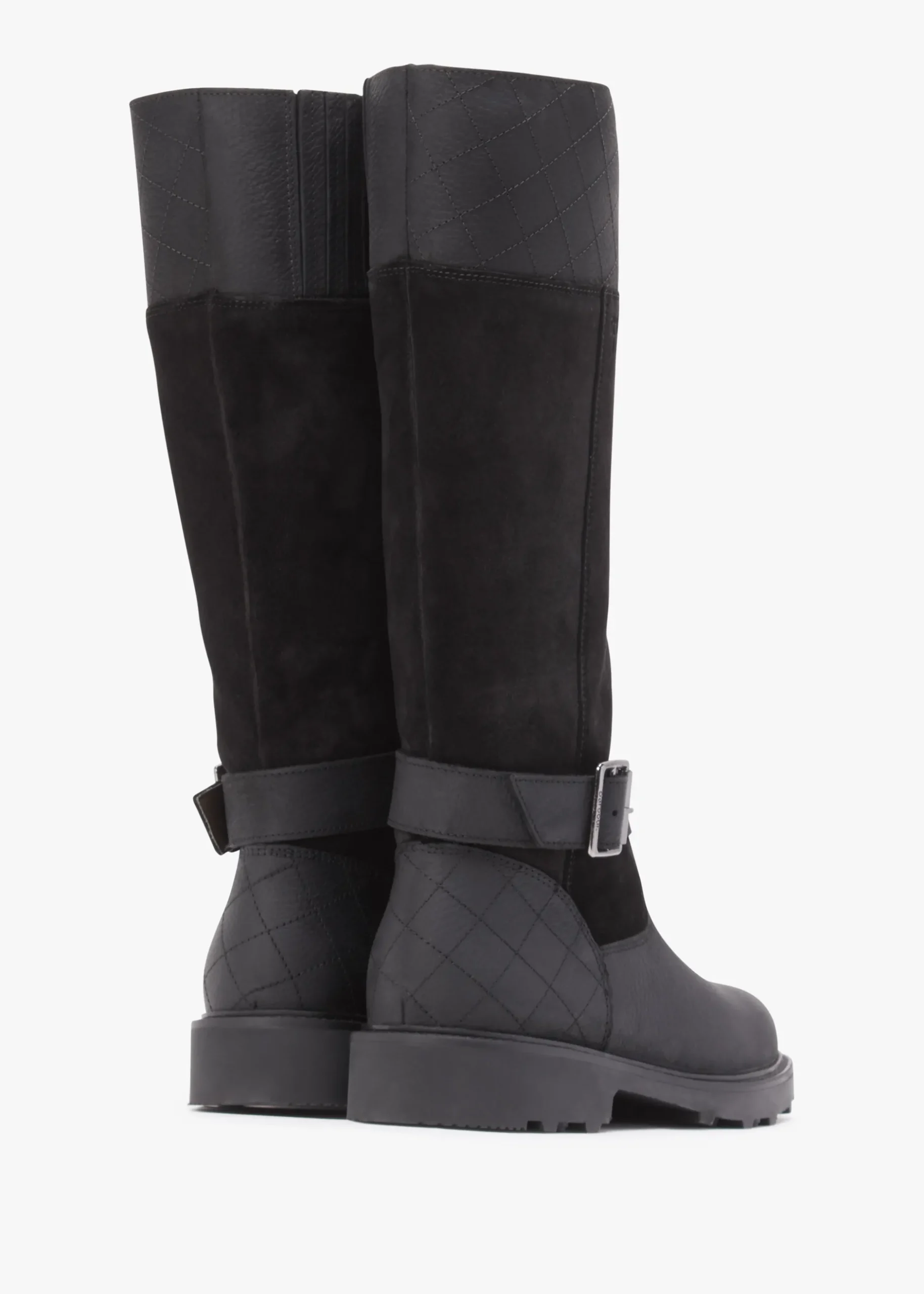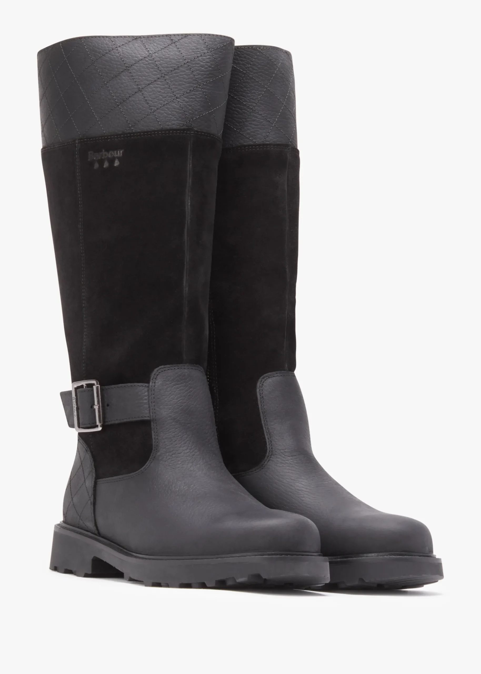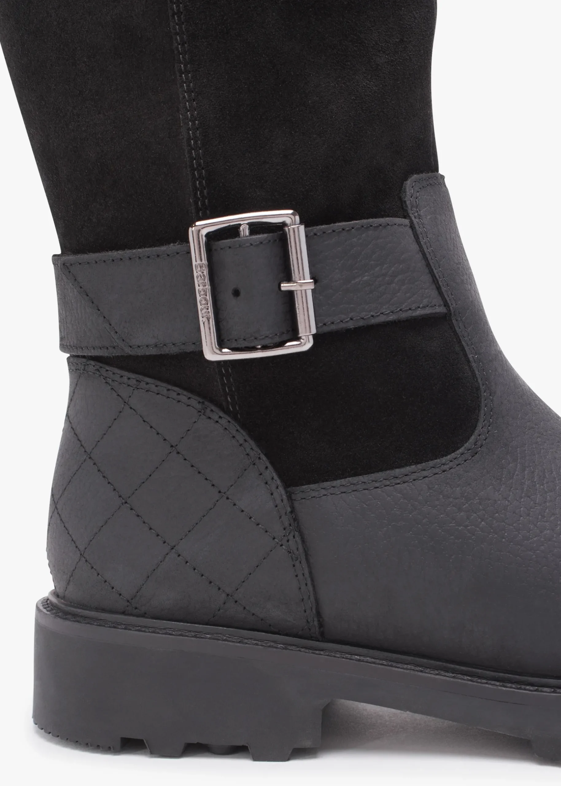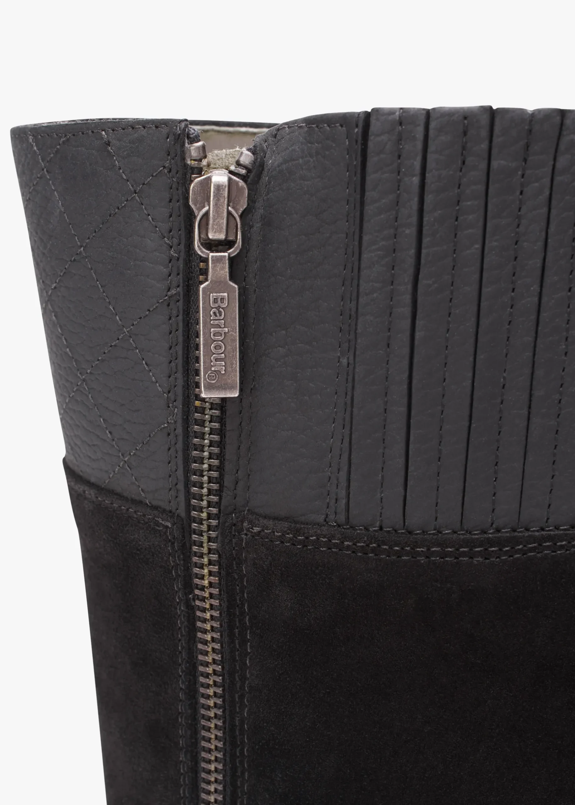 The ‘Fareham’ knee high boots from Barbour are the perfect Winter style. This classic knee high riding style is crafted from premium nubuck leather with textile lining and a chunky rubber sole. Zip fastening to the inner leg creates an easy wear. Logo embossed buckle fastening ankle strap and tonal diamond top stitching design add detail. Signature Barbour branding is seen throughout.