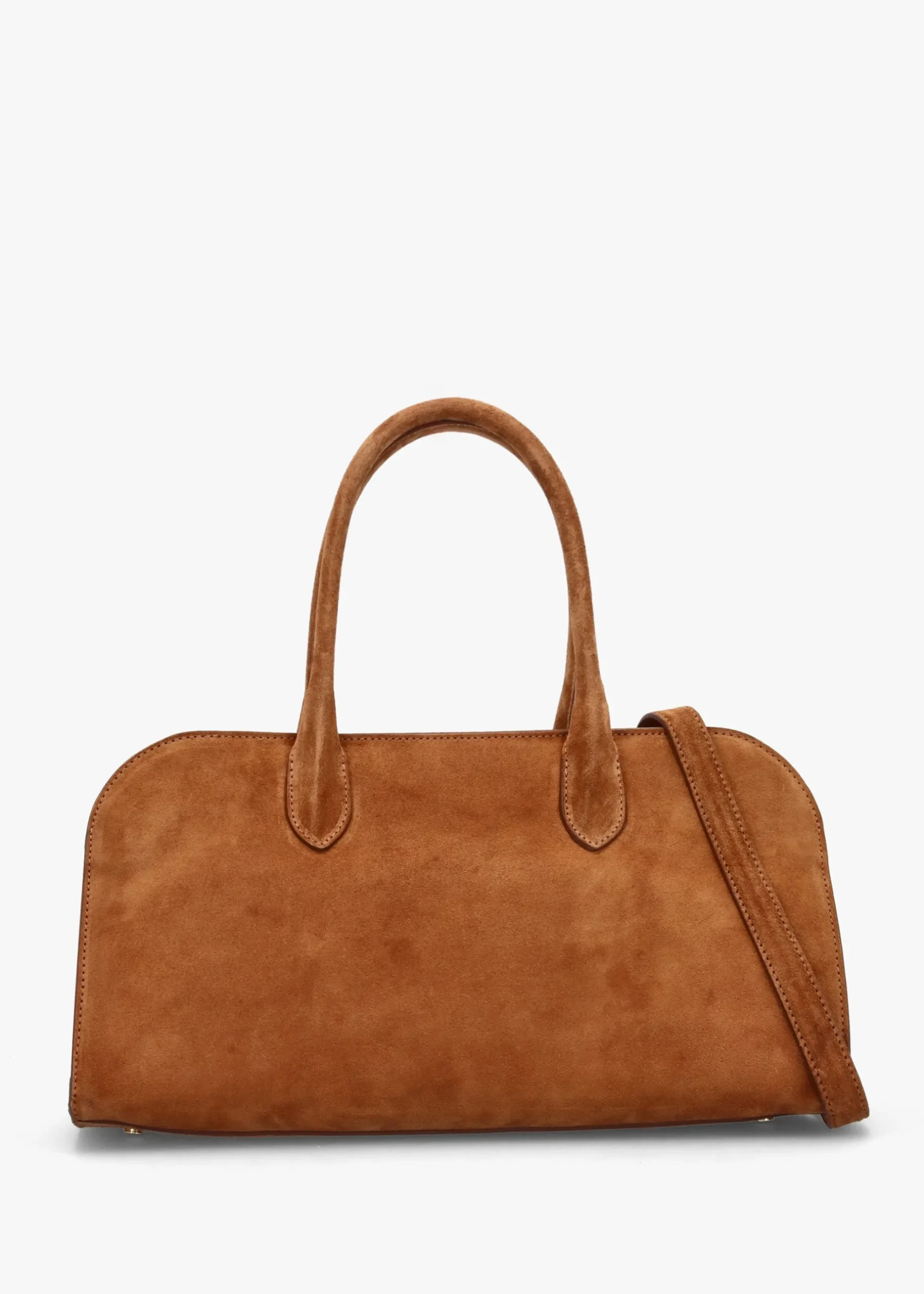 Add the ‘Lilah East West’ shoulder bag from Lunna Ferracuti to your handbag collection. This New Season style has simple yet chic silhouette. Crafted from premium suede with polished gold tone accents. The secure top zip fastening reveals the spacious single main compartment with handy inner zip and slot pockets. Carry by the top handles or by the detachable across the body. Signature Lunna Ferracuti branding is seen to the inner lining.