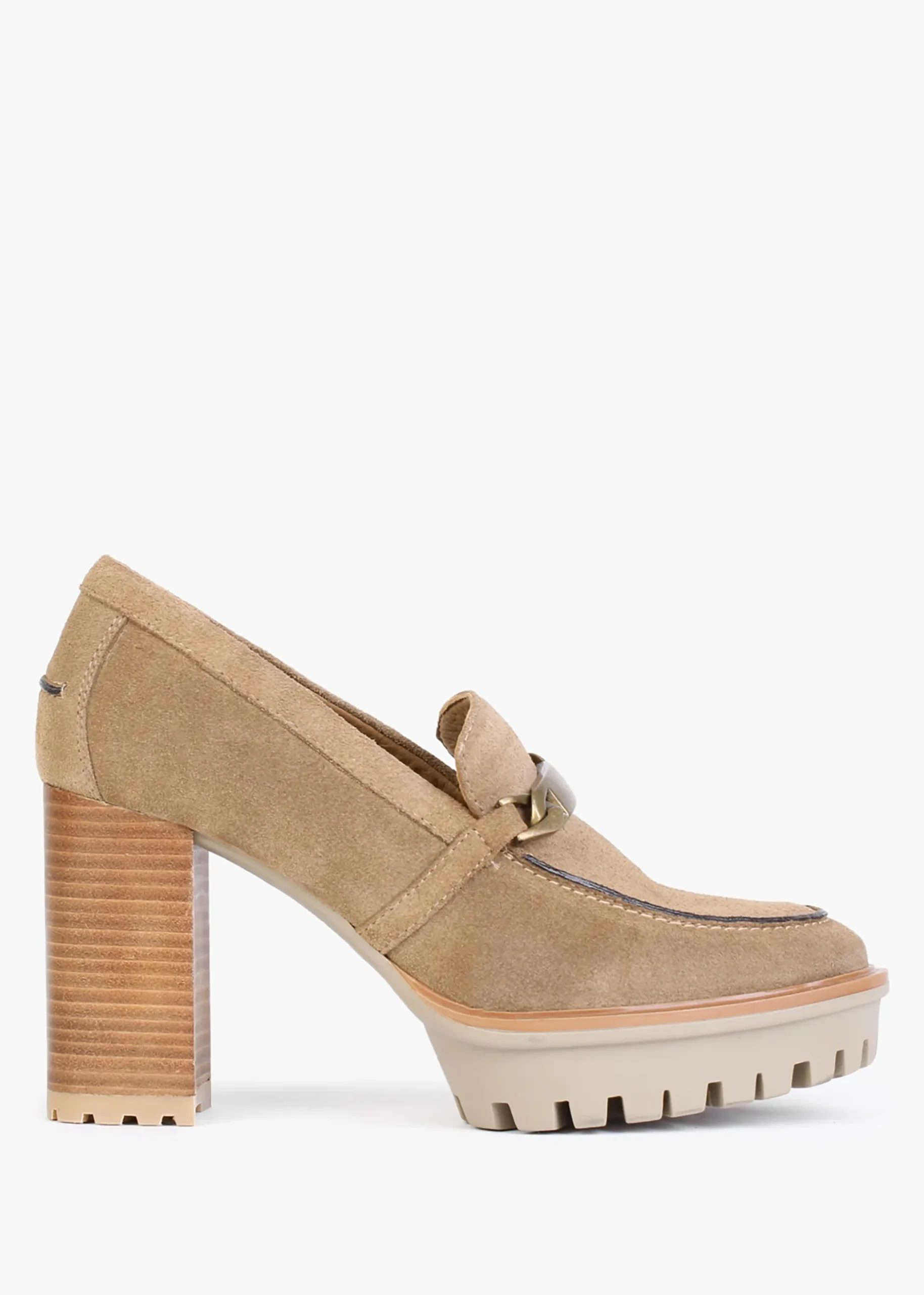 Add the ‘Zest’ platform court style shoes from Pedro Miralles to your New Season wardrobe. This everyday style is crafted from a premium suede upper with luxurious leather lining and a comfy rubber sole. The platform sole and high block heel make up the silhouette. Hardware detail adds detail to the upper. Signature Pedro Miralles branding is seen to the foot-bed.