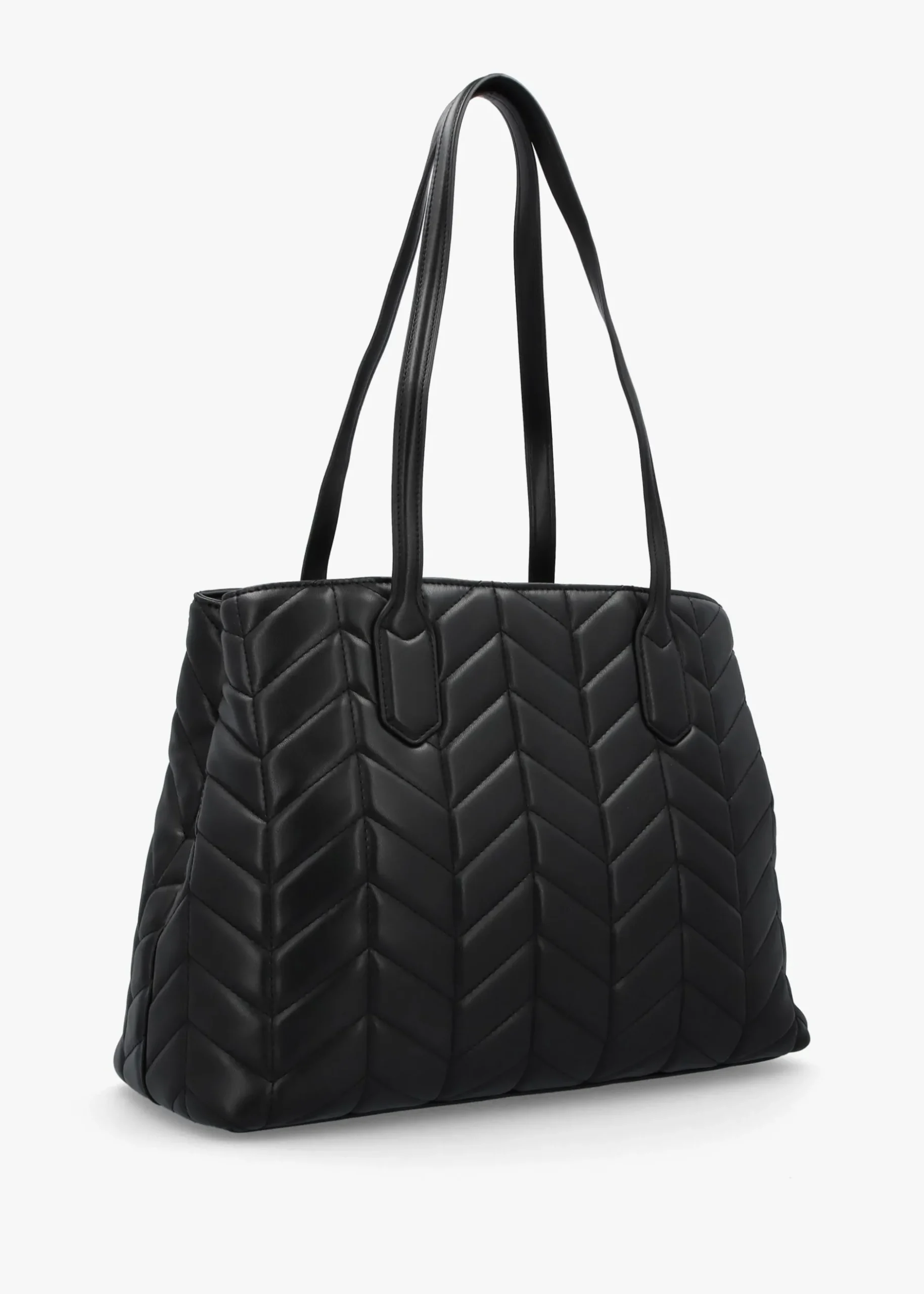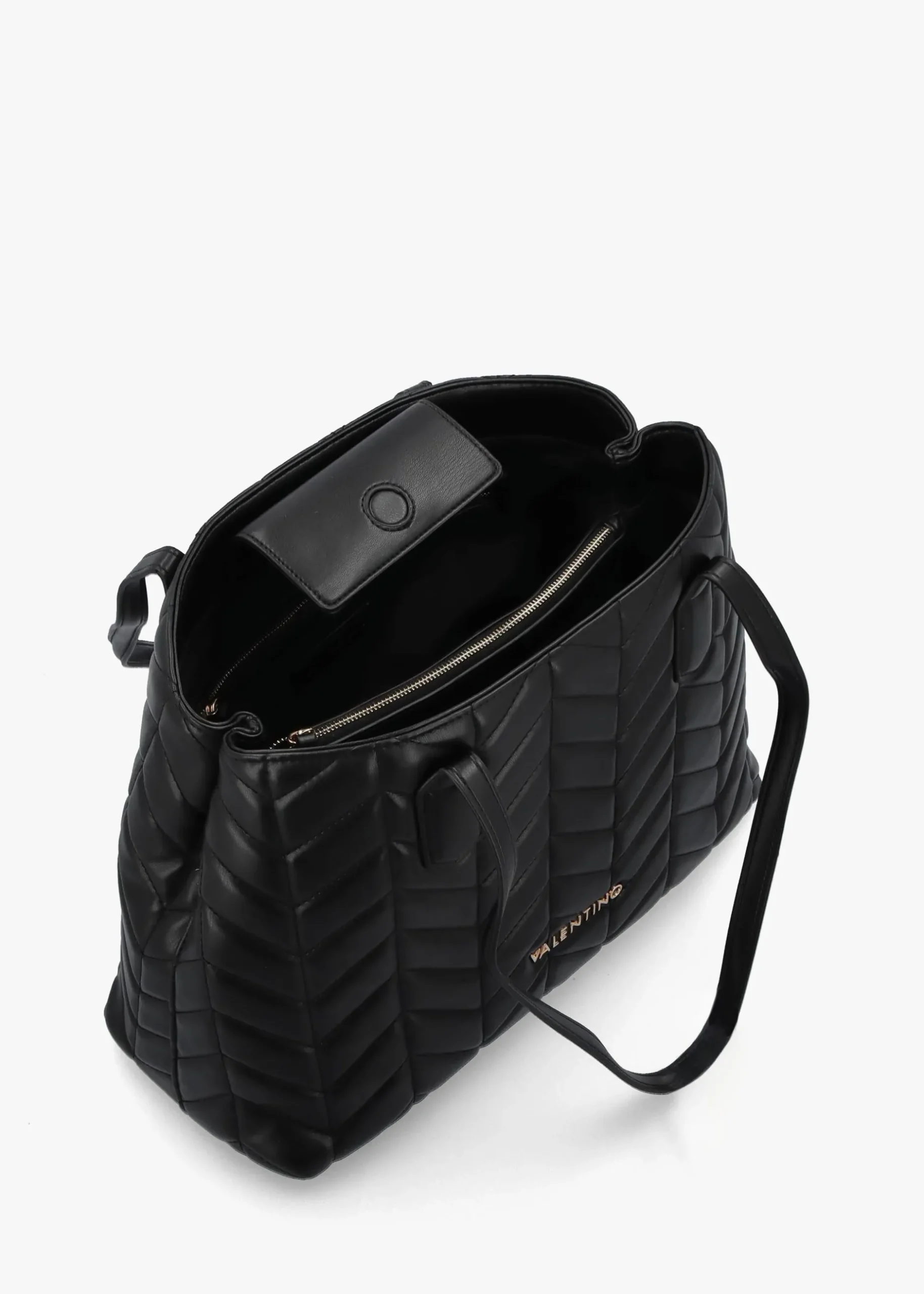 The ‘Petal’ shopper bag is part of the New Season collection from Valentino. This timeless style is crafted from premium PU made from part recycled materials in a quilted chevron design with polished gold tone accents. The secure magnetic snap top fastening reveals triple compartments as well as handy inner zip and slot pockets. Carry by the top handles. Signature Valentino branding adds detail throughout.