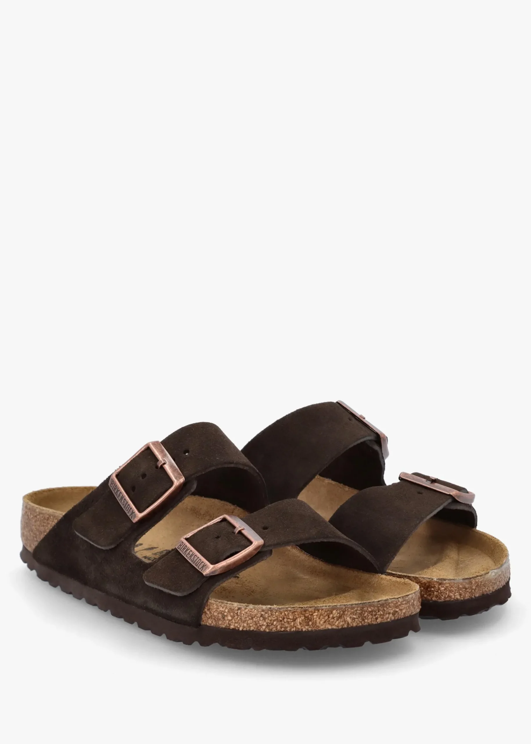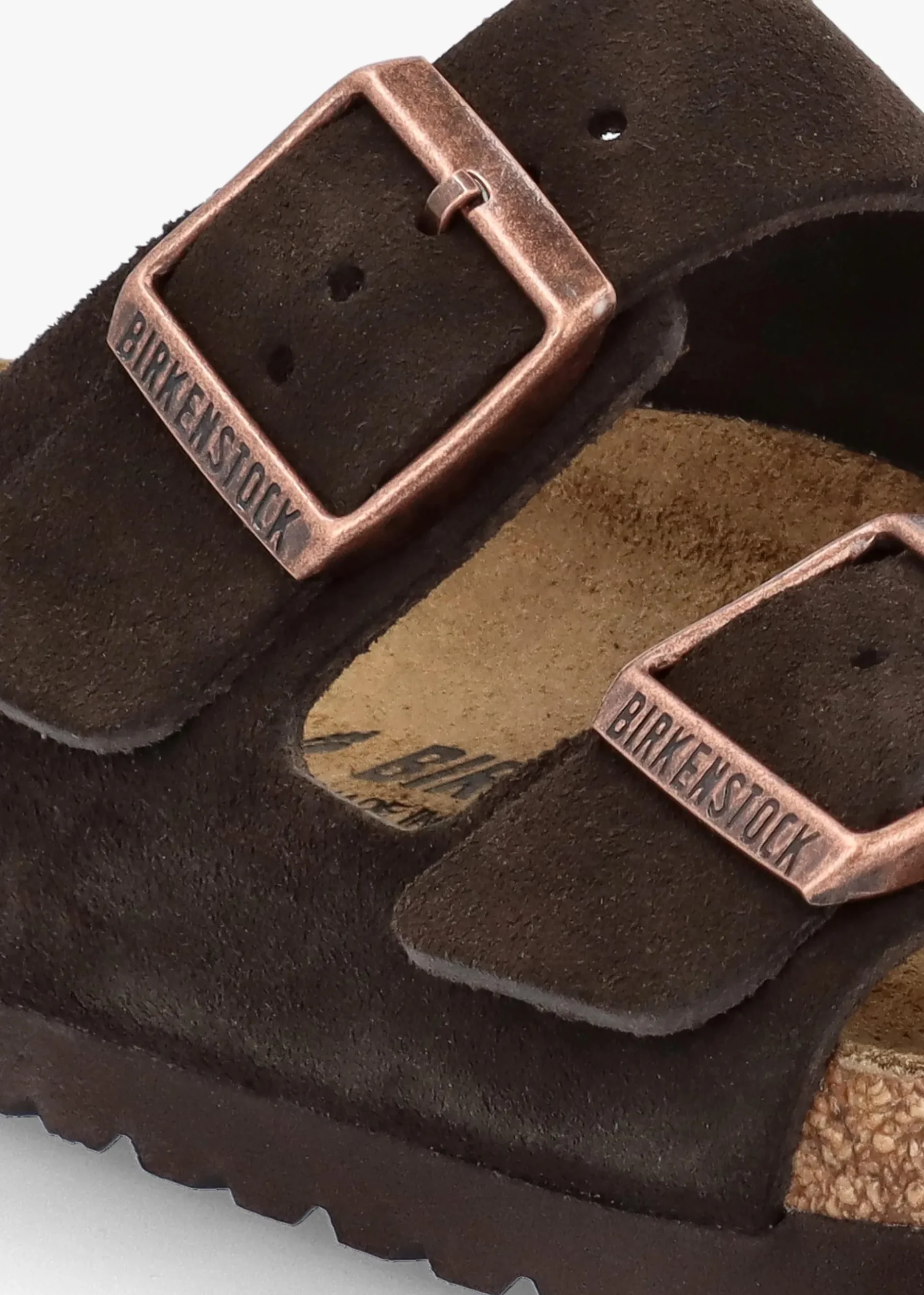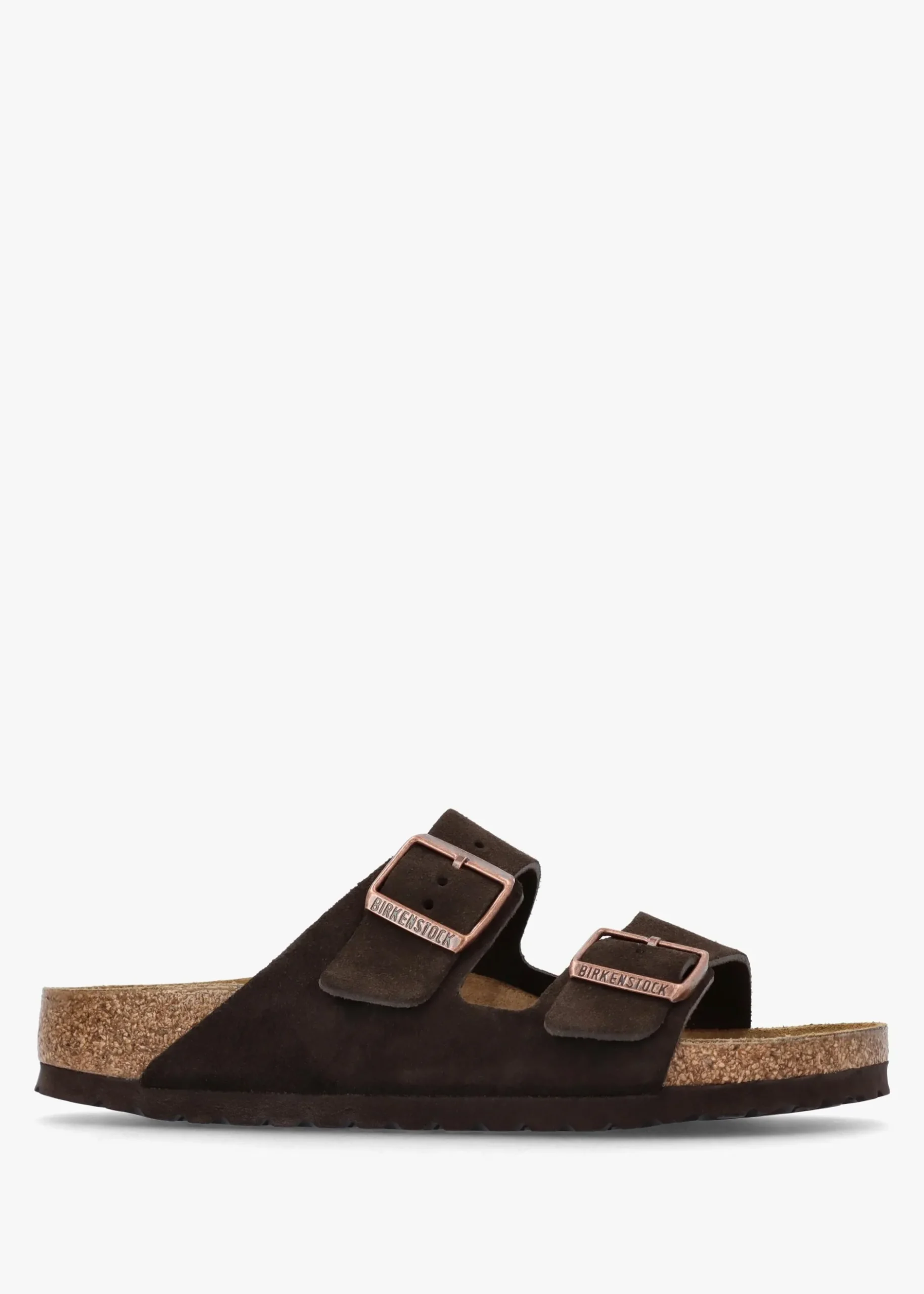 The popular women’s ‘Arizona’ mules from Birkenstock have been given an update this Season. This classic staple Summer style is crafted from a premium suede upper with leather lining, cork foot-bed and EVA sole. An easy to wear slip on mule featuring two strap upper with buckle fastening. The foot-bed has been contoured to conform to the shape of your foot – with arch support and and extra layer of cushioning for optimum comfort. Signature Birkenstock branding is seen throughout.