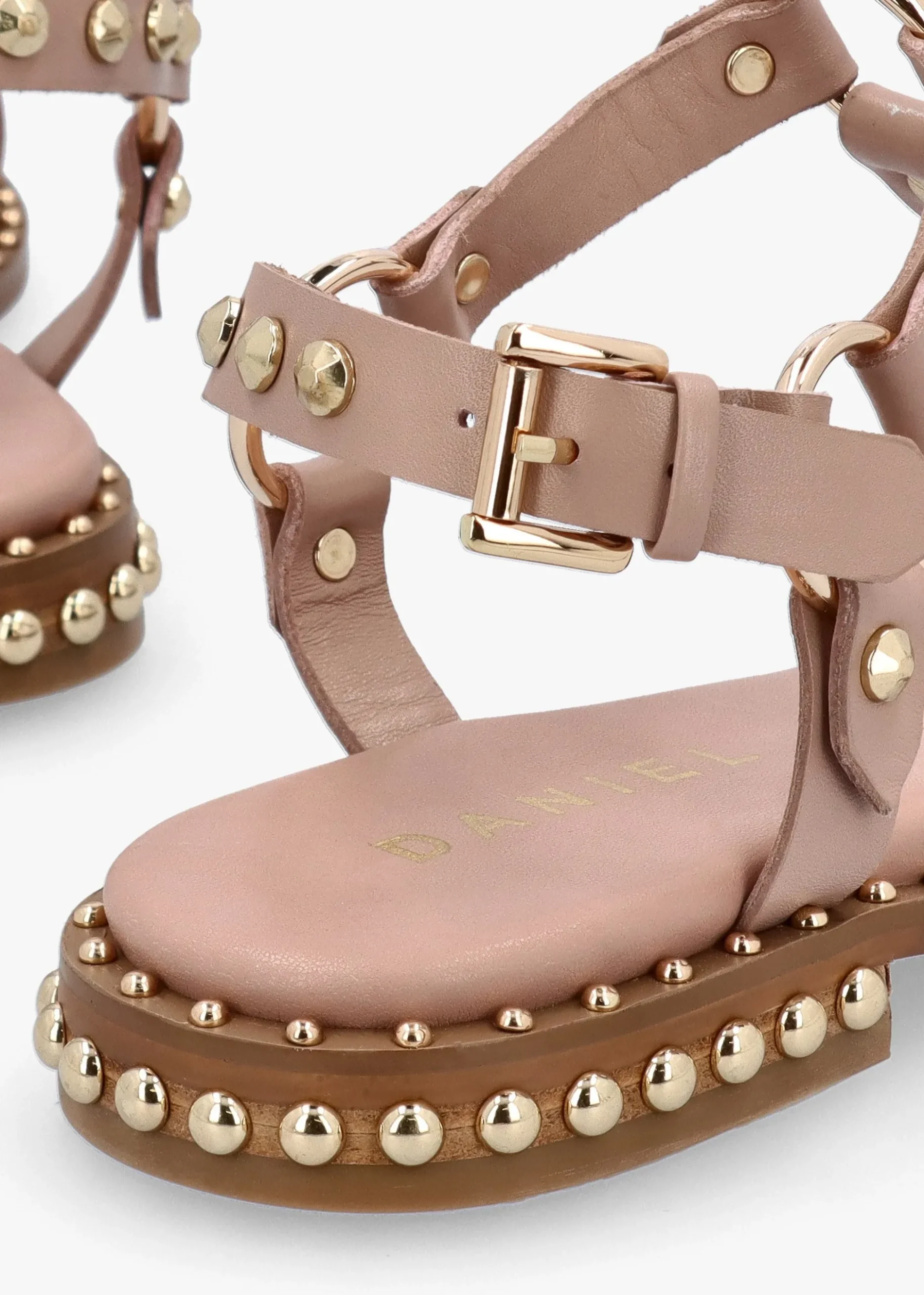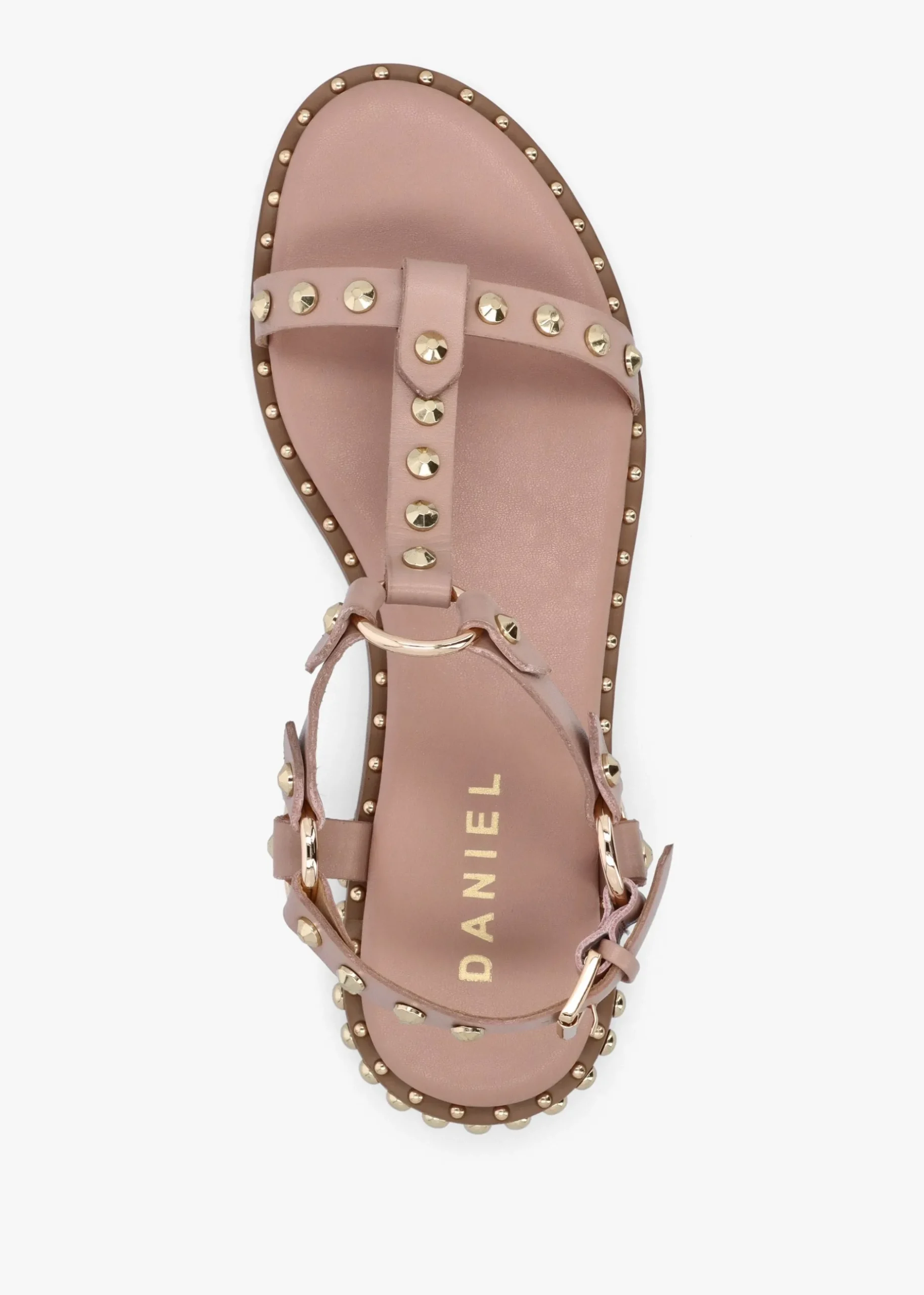 Perfect for the Summer Season the ‘Everlast’ T Bar sandals from Daniel. Crafted from a premium leather upper with luxurious leather lining, cushioned footbed and a man-made sole. The buckle fastening ankle strap creates an easy wear. Studded embellished adds detail to the upper and sole. Signature Daniel branding is seen to the footbed.