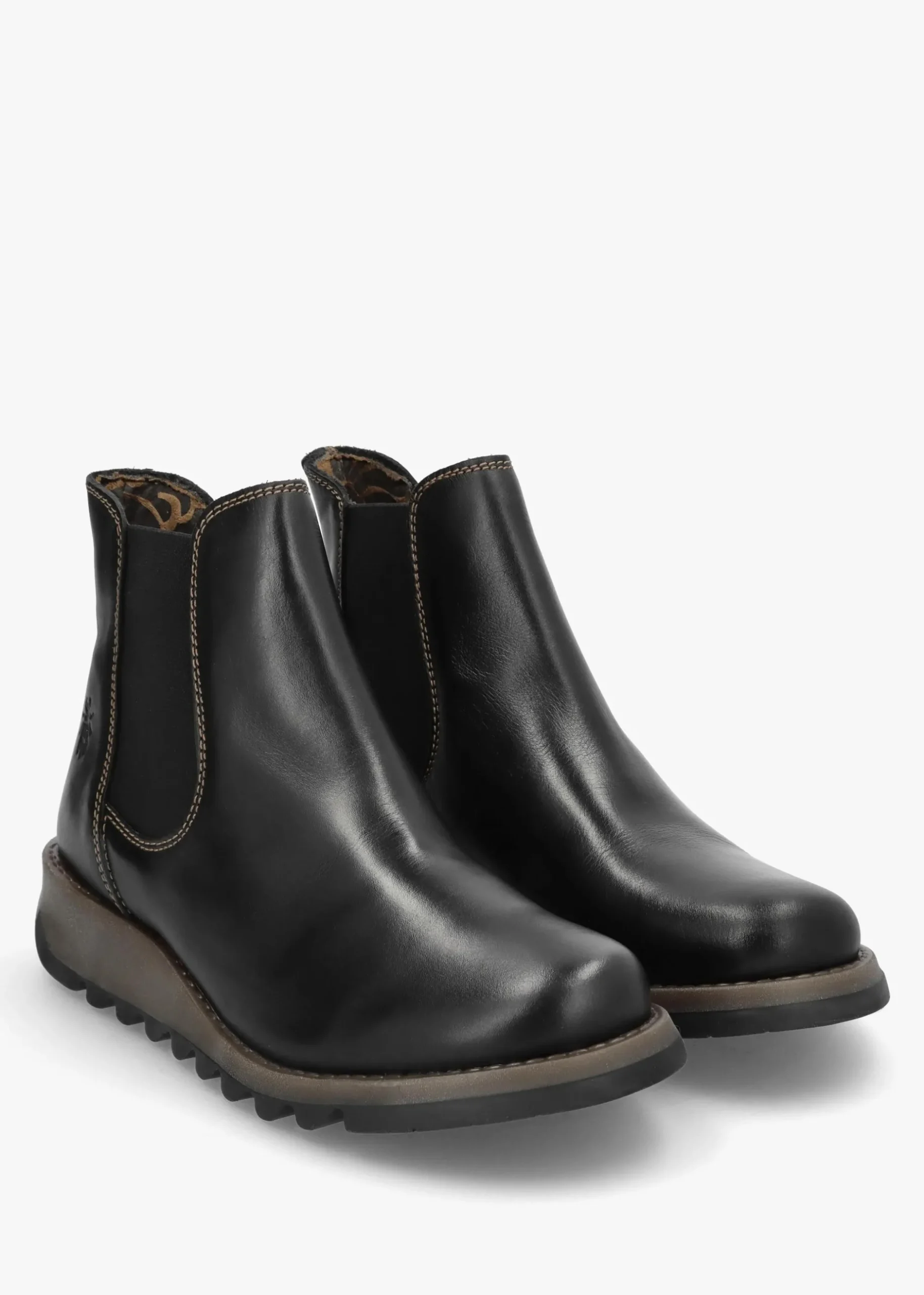 Add the ‘Salv’ Chelsea boots from Fly London to your boot collection. This low profile stylish pull on boot is not only practical but super stylish too. Crafted from premium smooth leather featuring patterned microfiber lining and a modern cleated rubber sole. The elasticated inserts create that classic Chelsea style as well as ensuring an easy wear. Debossed logo adds detail to the side of the boots. Signature Fly London branding is seen to the footbed and sole.