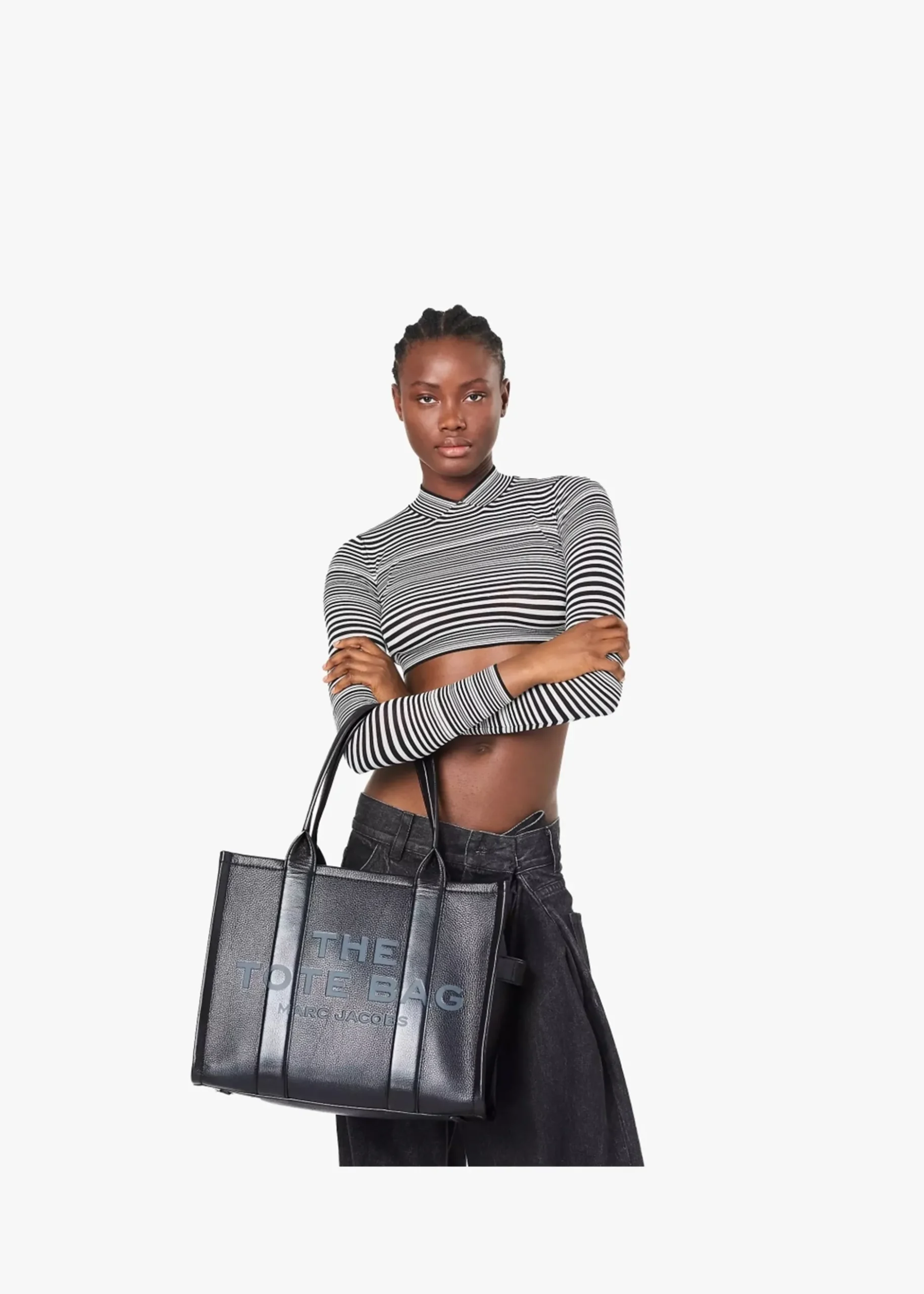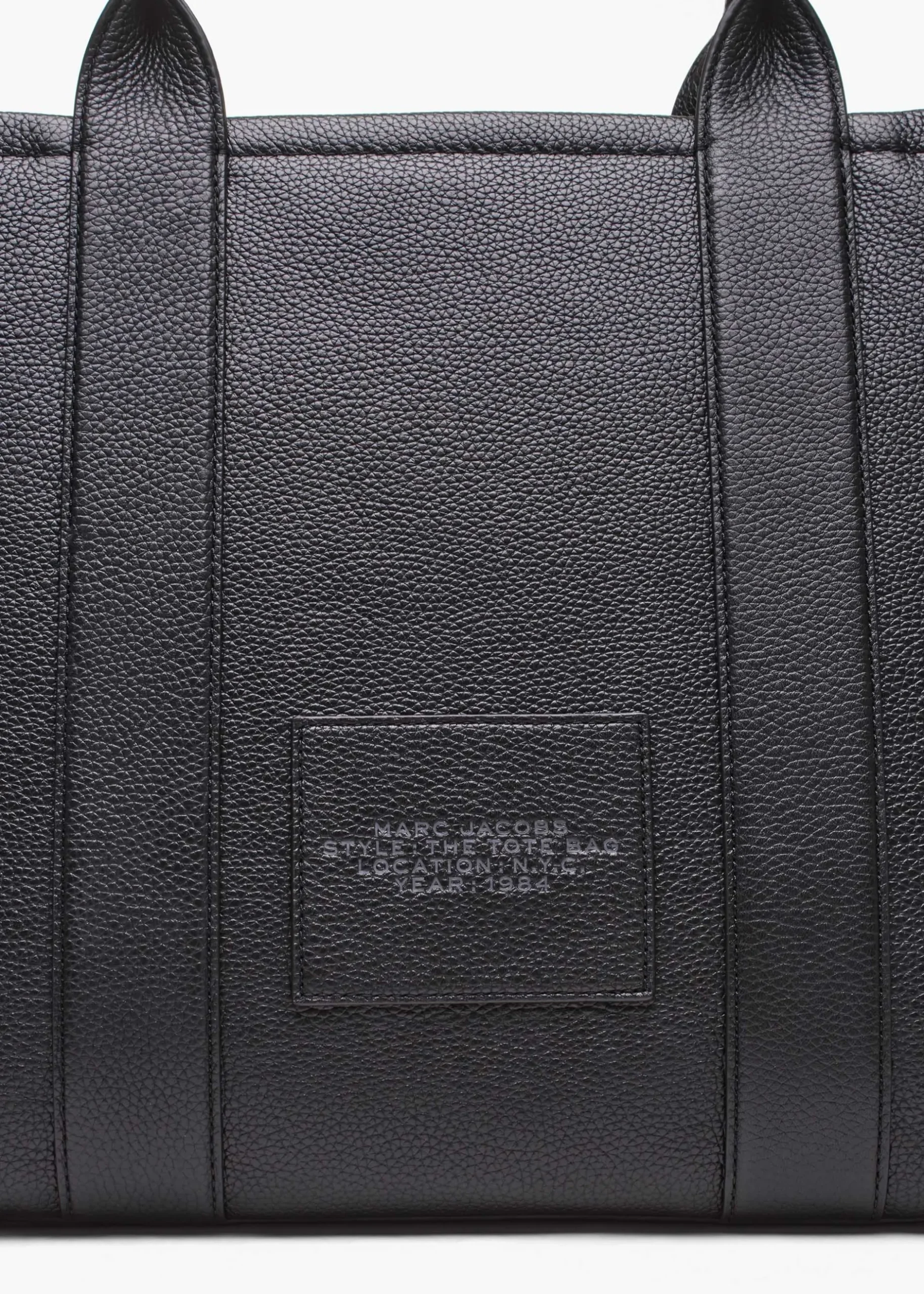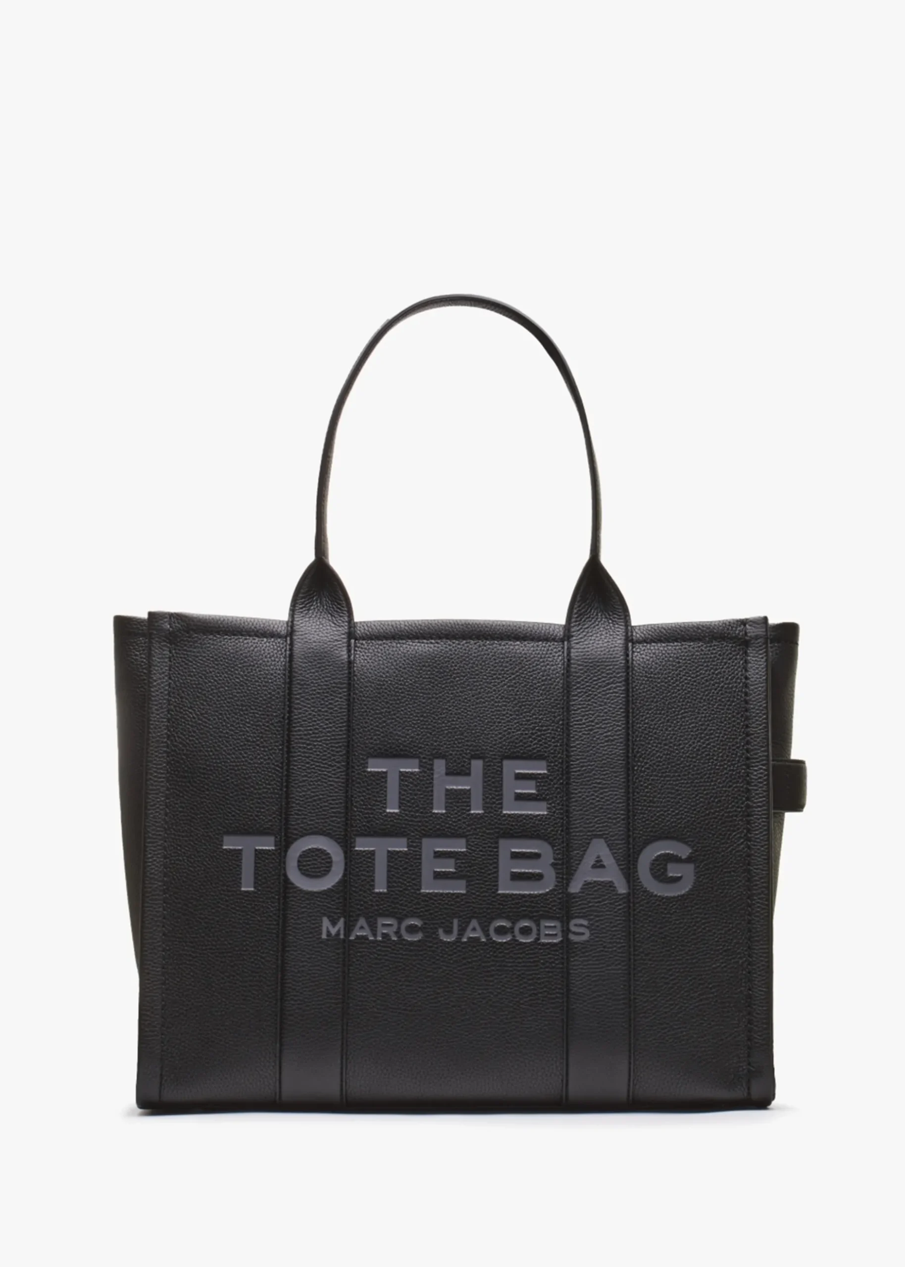 Add ‘The Leather Large’ tote bag from Marc Jacobs to your handbag collection. This go to carryall style is crafted from a premium full grain leather featuring gold tone accents. The secure top zip fastening reveals the main compartment and handy inner zip and slot pockets. Carry by the grab handles. Classic embossed branding is seen to the front of the bag. Signature Marc Jacobs branding is seen throughout.