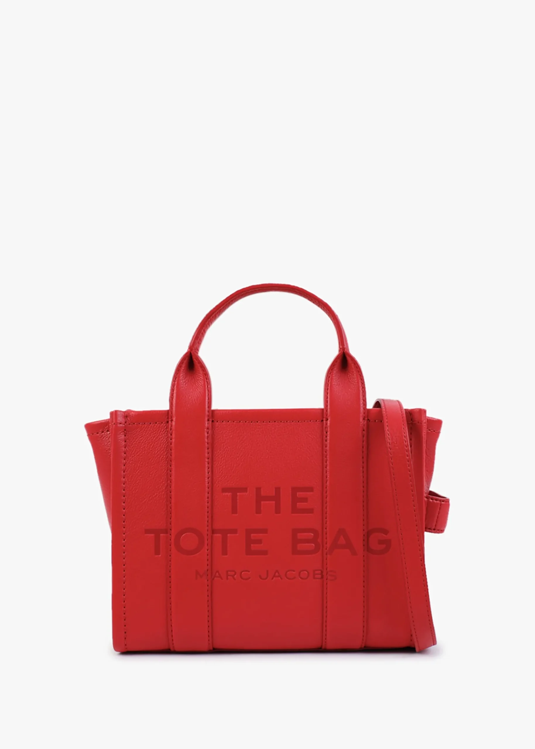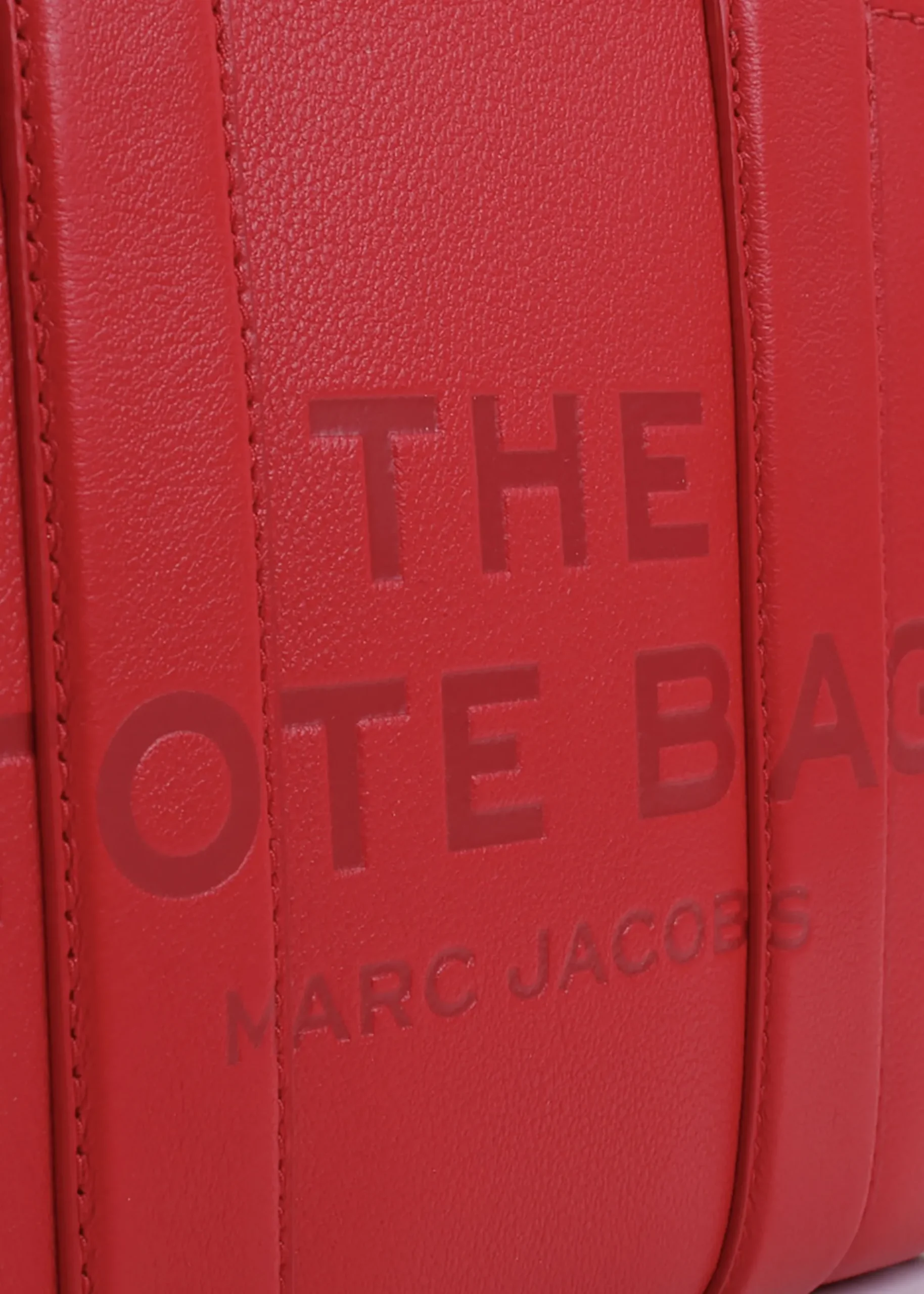 ‘The Leather Small’ tote bag from Marc Jacobs is a go to carry all style. This New Season everyday bag is crafted from premium pebbled leather with gold tone accents. The secure top zip fastening reveals the main compartment with handy inner slot pocket. Carry by the grab handles or the detachable strap. Bold embossed logo adds detail to the front of the bag. Signature Marc Jacobs branding is seen throughout.