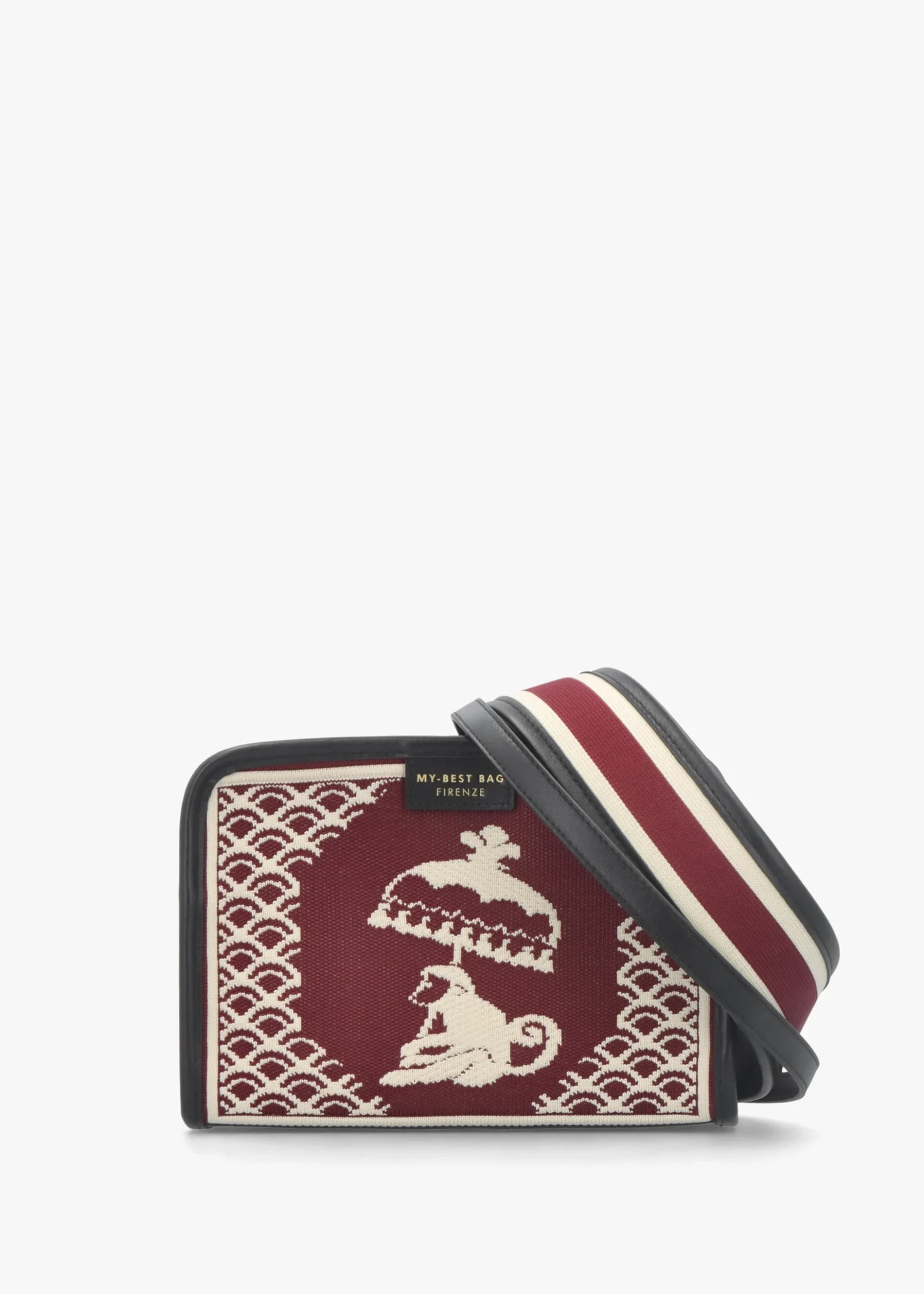 New to Daniel Footwear this Season is this everyday shoulder bag from MY-BEST BAG. An innovative new Italian brand featuring simple yet chic everyday styles. This must have silhouette is crafted from premium fabric in a fun tapestry design with fabric lining and polished gold tone accents and luxurious leather trim. The secure top zip fastening reveals the single main compartment with handy inner zipper pocket. Carry by the detachable webbed shoulder strap or the detachable leather cross-body strap. Signature MY-BEST BAG branding adds detail.