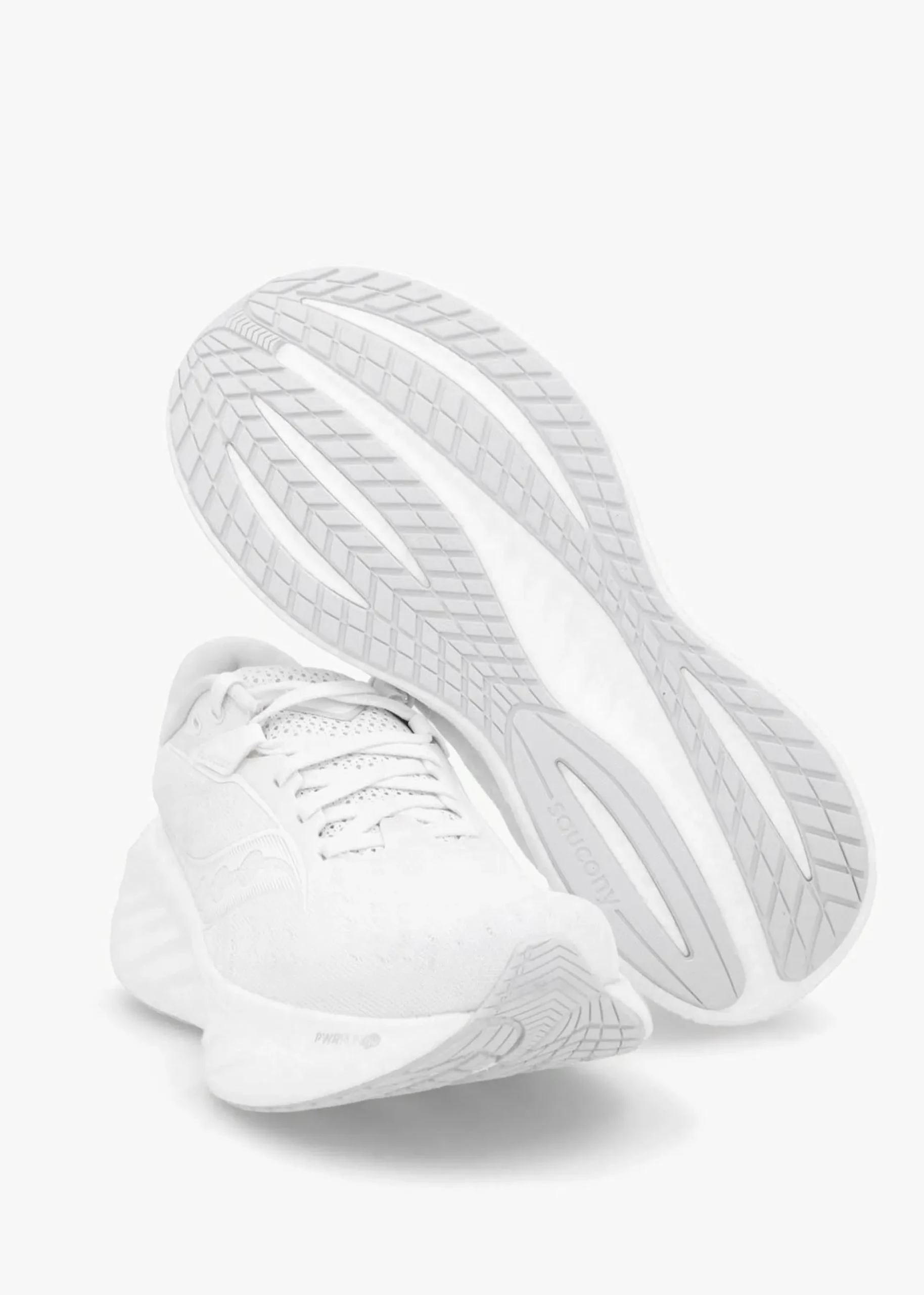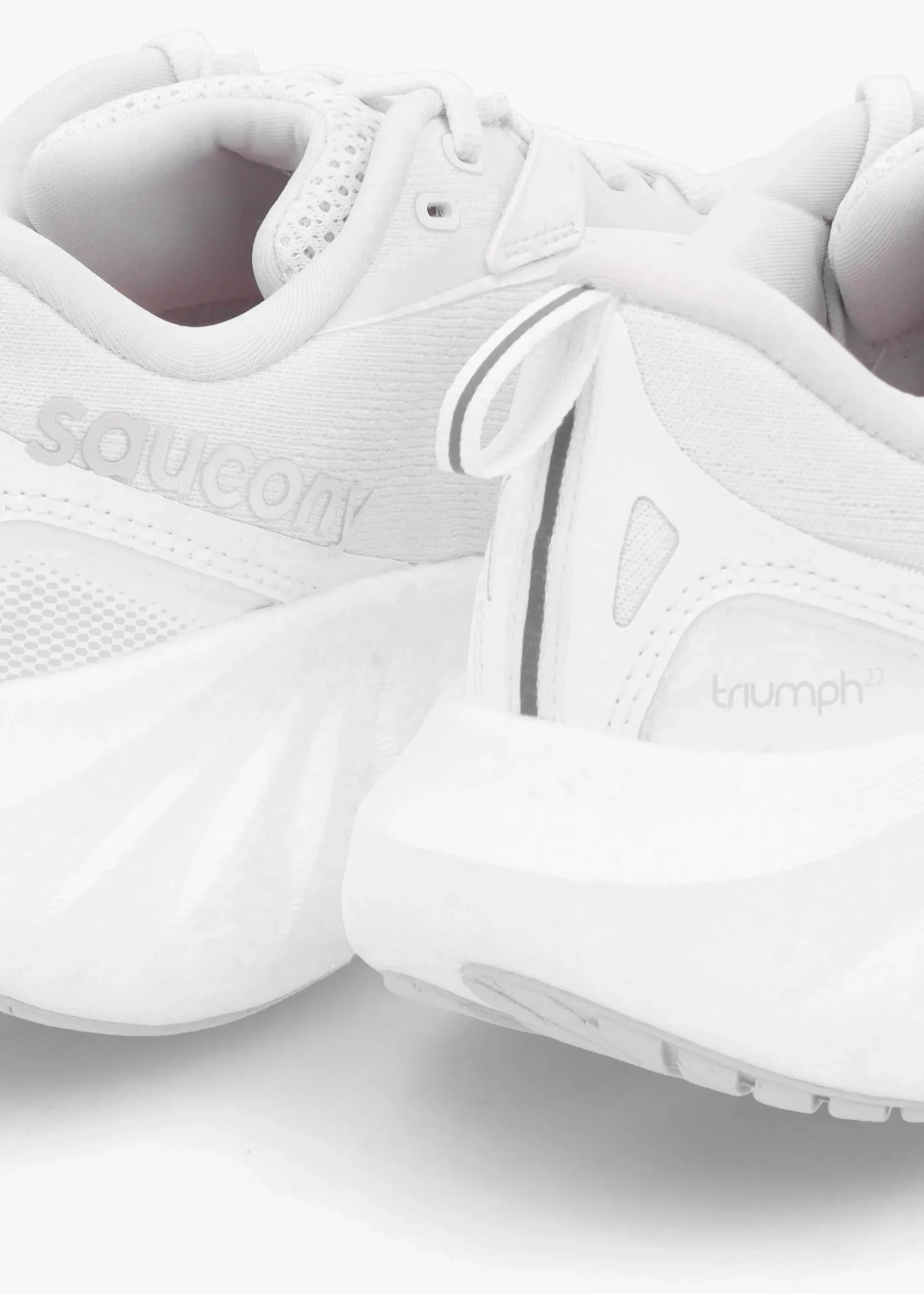 The women’s vegan ‘Triumph’ trainers from Saucony are designed to be both a running and everyday style. Crafted from an engineered mesh upper, recycled materials, CenterPath technology and PWRRUN PB cushioning. The lace up upper ensures the perfect fit. Signature Saucony branding is seen throughout.