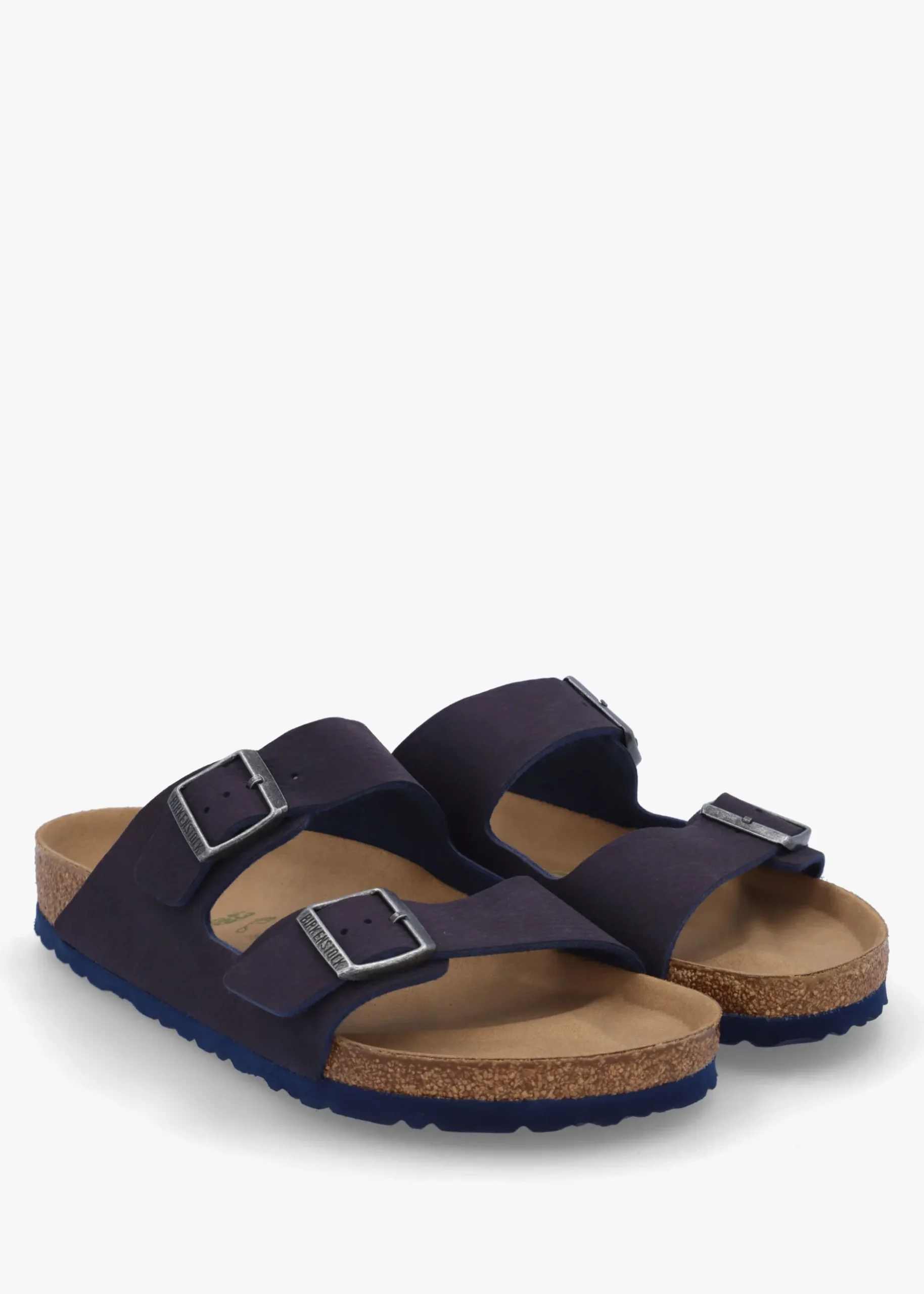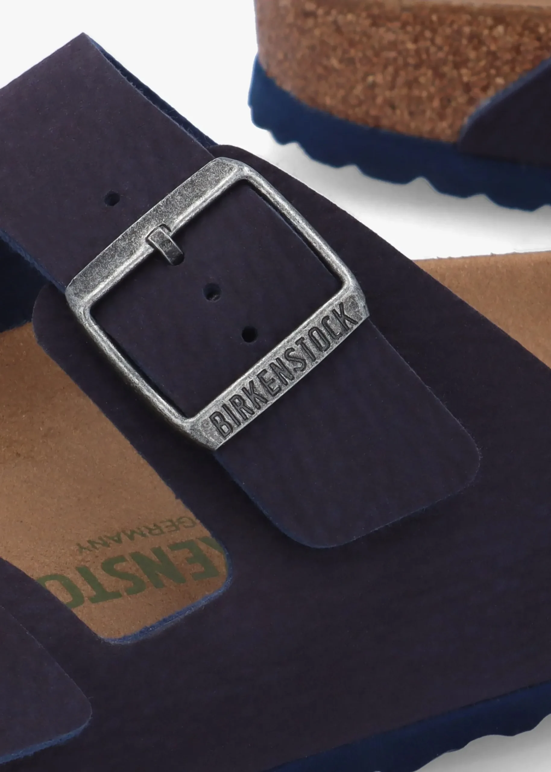 The popular men’s vegan ‘Arizona’ mules from Birkenstock have been given an update this Season. This classic staple Summer style is crafted from the skin-friendly, hard-wearing synthetic material Birko-Flor with microfiber insole, natural cork footbed and EVA sole. An easy to wear slip on mule featuring two strap upper with logo branded buckle fastening. The footbed has been contoured to conform to the shape of your foot – with arch support and an extra layer of cushioning for optimum comfort. Signature Birkenstock branding is seen to the footbed and sole.