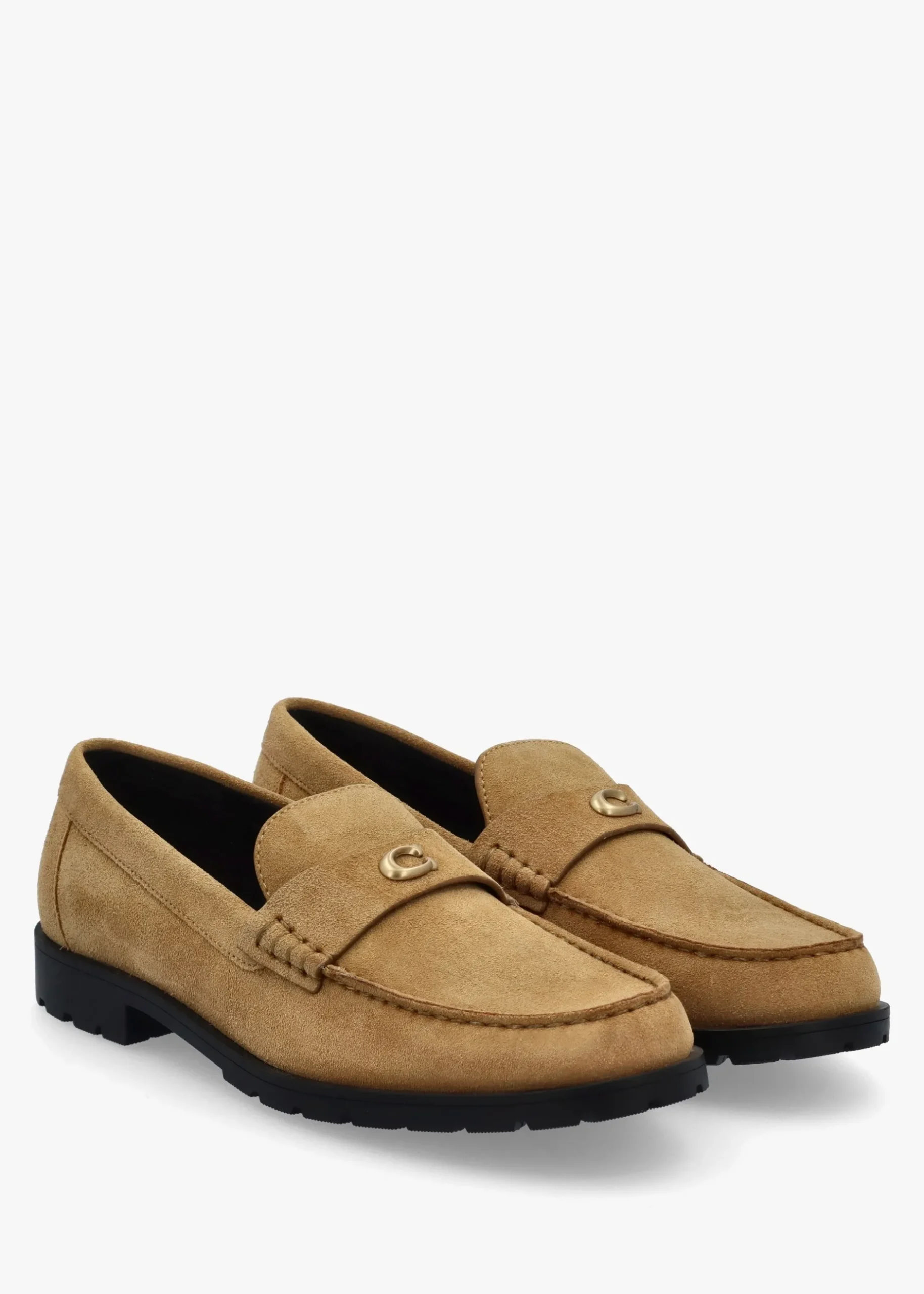 The wear anywhere ‘Jocelyn’ loafers are part of the New Season collection from COACH. Crafted from a premium suede upper with part leather lining and a tracked rubber sole. An easy to wear slip on silhouette. Classic gold tone ‘C’ logo motif adds detail to the upper. Signature COACH branding is seen to the footbed.