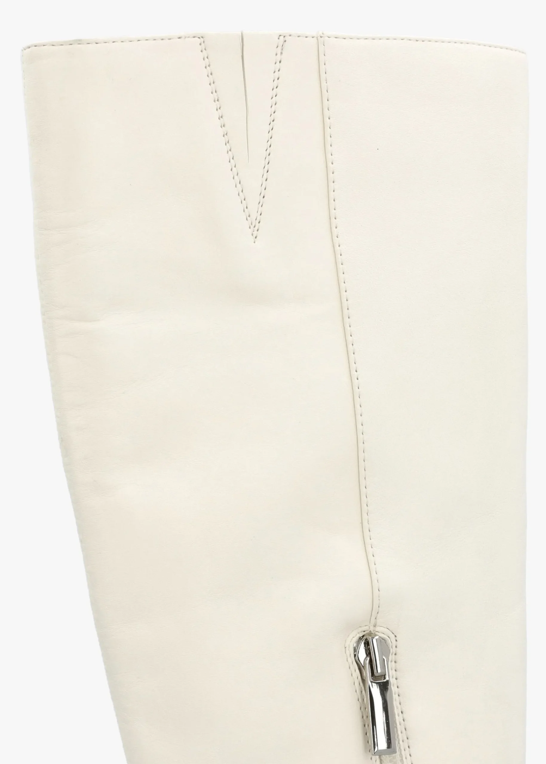 Add the simple yet chic ‘Saffia’ knee boots from Daniel to your New Season wardrobe. This must have boot is crafted from a premium leather upper with textile lining and a man-made sole. Half zip fastening to the inner leg creates an easy wear. The classic pointed toe and elegant wrapped slim high heel make up the silhouette. Signature Daniel branding is seen to the footbed.