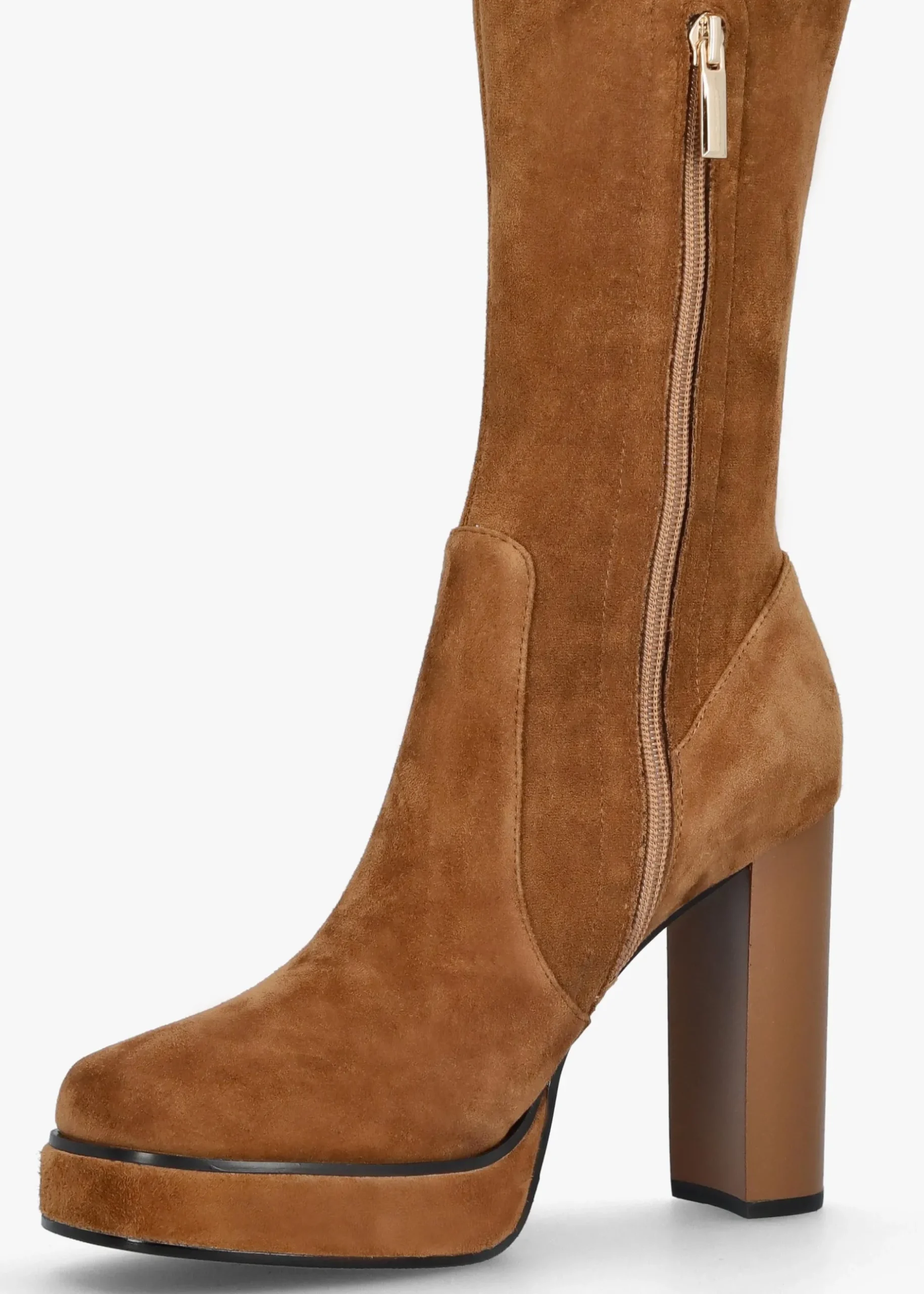 Add the ‘Sippy Over The Knee’ boots from Daniel Footwear to your boot collection. This New Season move on from the original ‘Sippy Knee’ style is crafted from a premium suede upper with textile stretch lining and a rubber sole. Half zip fastening to the inner leg creates an easy wear. The rounded square toe, platform and high block heel make up the silhouette. Signature Daniel branding is seen to the foot-bed.