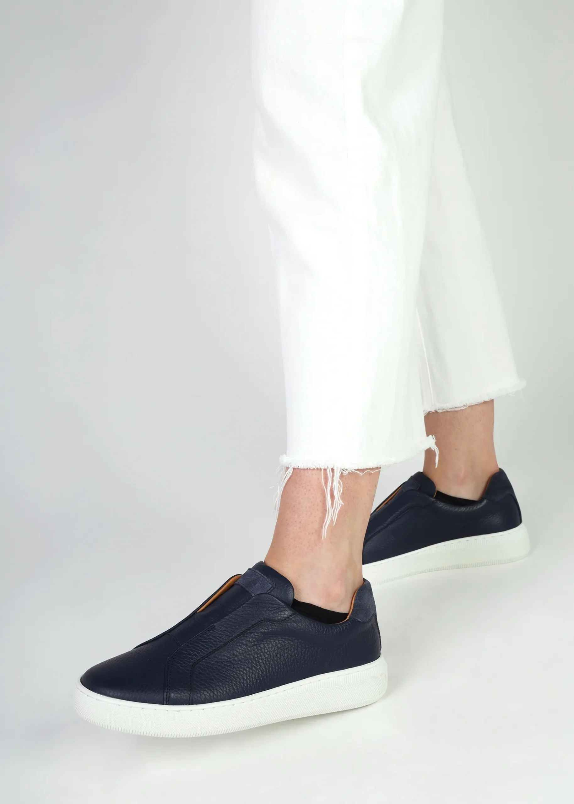 Add the easy to wear slip on ‘Viola’ laceless trainers from Daniel to your off-duty wardrobe. Crafted from a premium tumbled leather upper with leather lining, cushioned footbed and a textured rubber sole. Tonal suede insert to the ankle and tongue add detail. Signature Daniel branding is seen to the footbed.