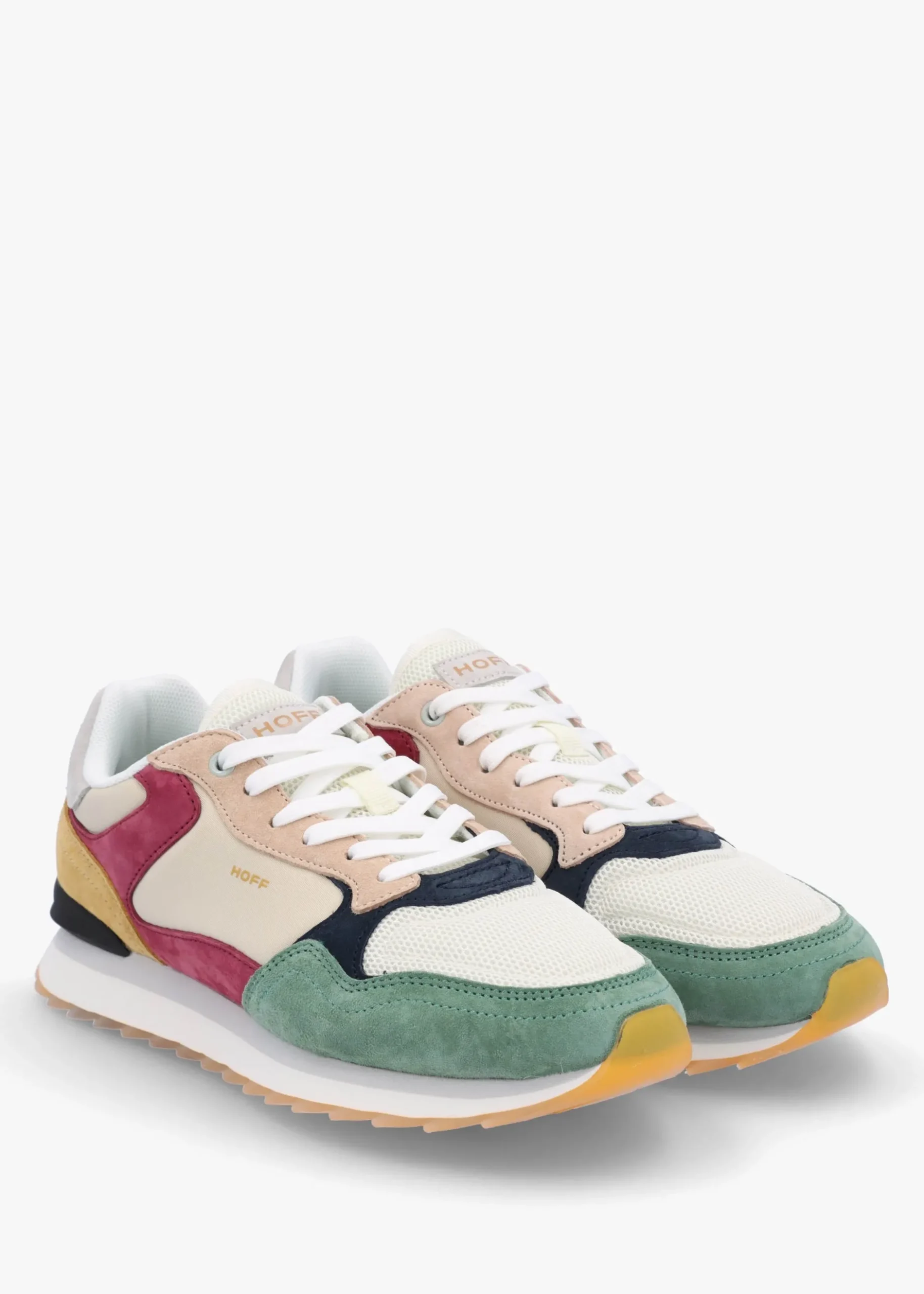 The ‘Montreal’ trainers are part of the New Season collection from HOFF. This sporty style is crafted from a premium suede and mesh upper with textile lining a removable memory foam foot-bed and a comfy rubber sole. The lace up upper ensures the perfect fit. Colour block design features to the upper. Logo adds detail to the back of the ankle and tongue. Signature HOFF branding is seen throughout.