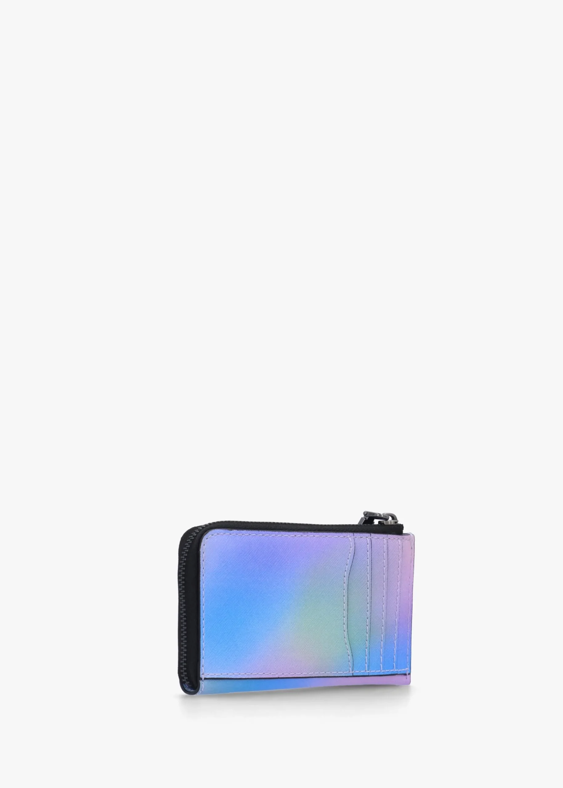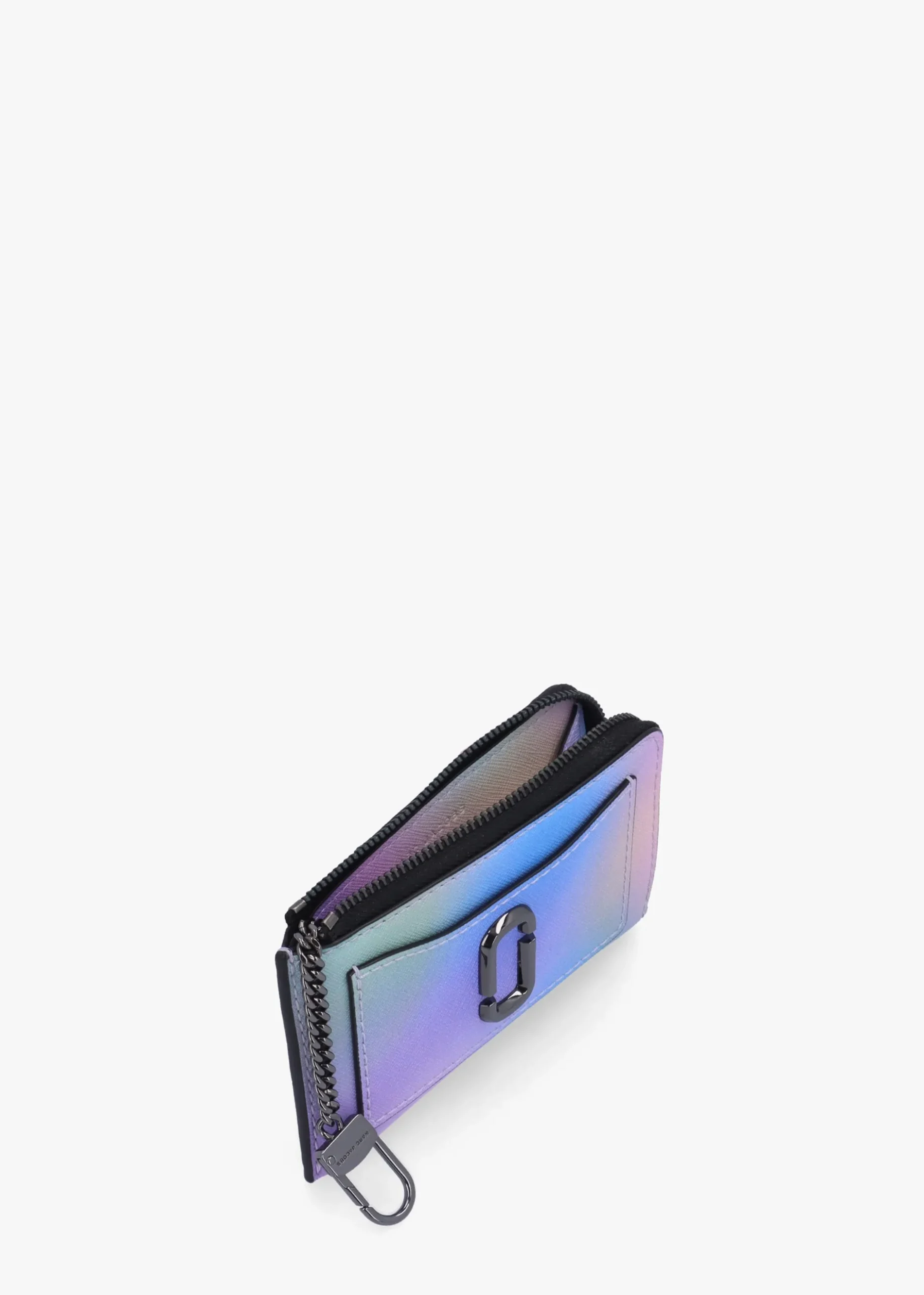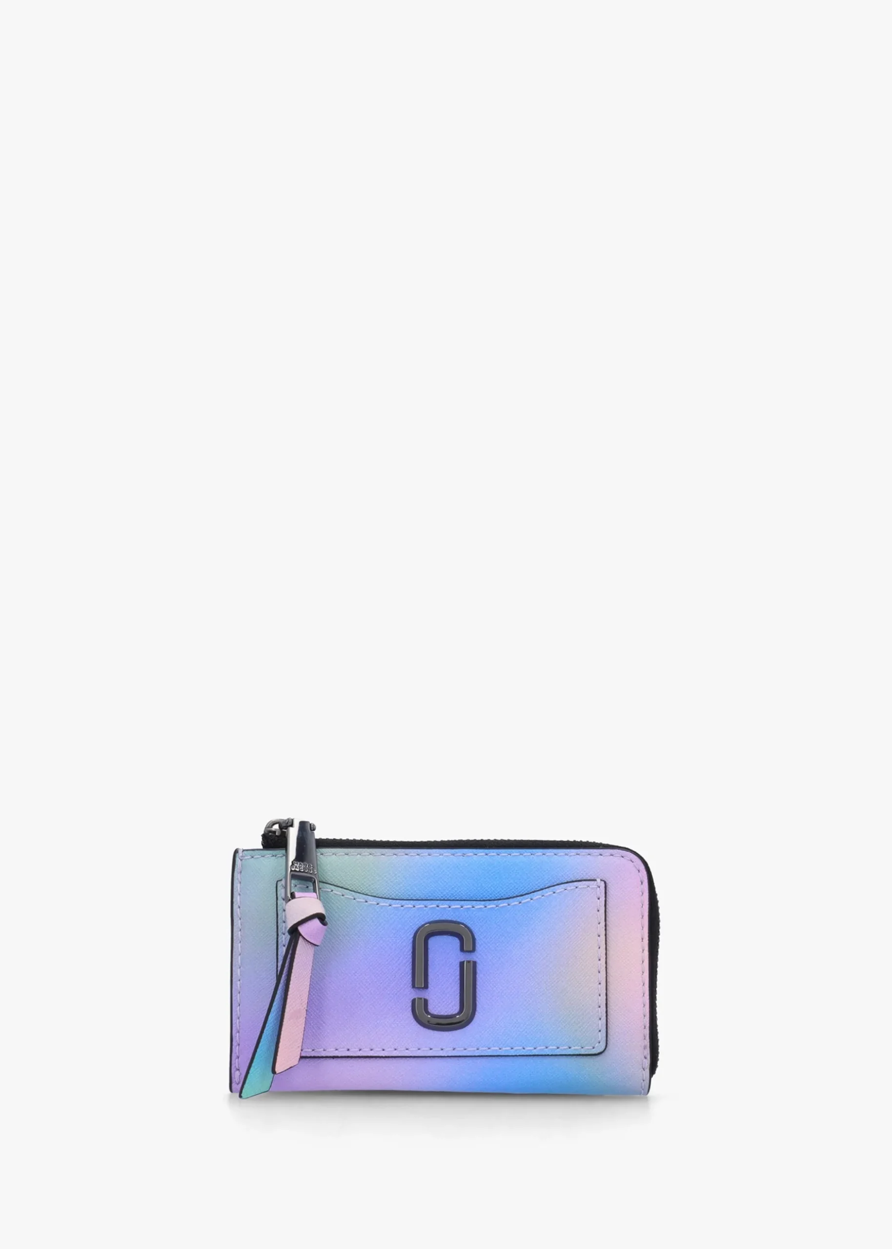 Add ‘The Daisy Airbrush Utility Snapshot Top Zip’ wallet from Marc Jacobs to your accessories collection. This everyday wallet is crafted from premium saffiano leather in the brands vibrant seasonal airbrush print with polished gunmetal tone accents. This compact, yet spacious wallet includes four card slots, two slip pockets and a lobster key chain. Classic double ‘J’ logo adds detail. Signature Marc Jacobs branding is seen throughout.