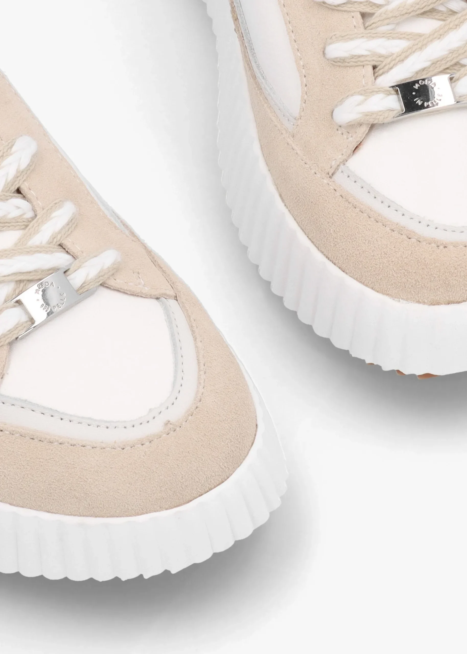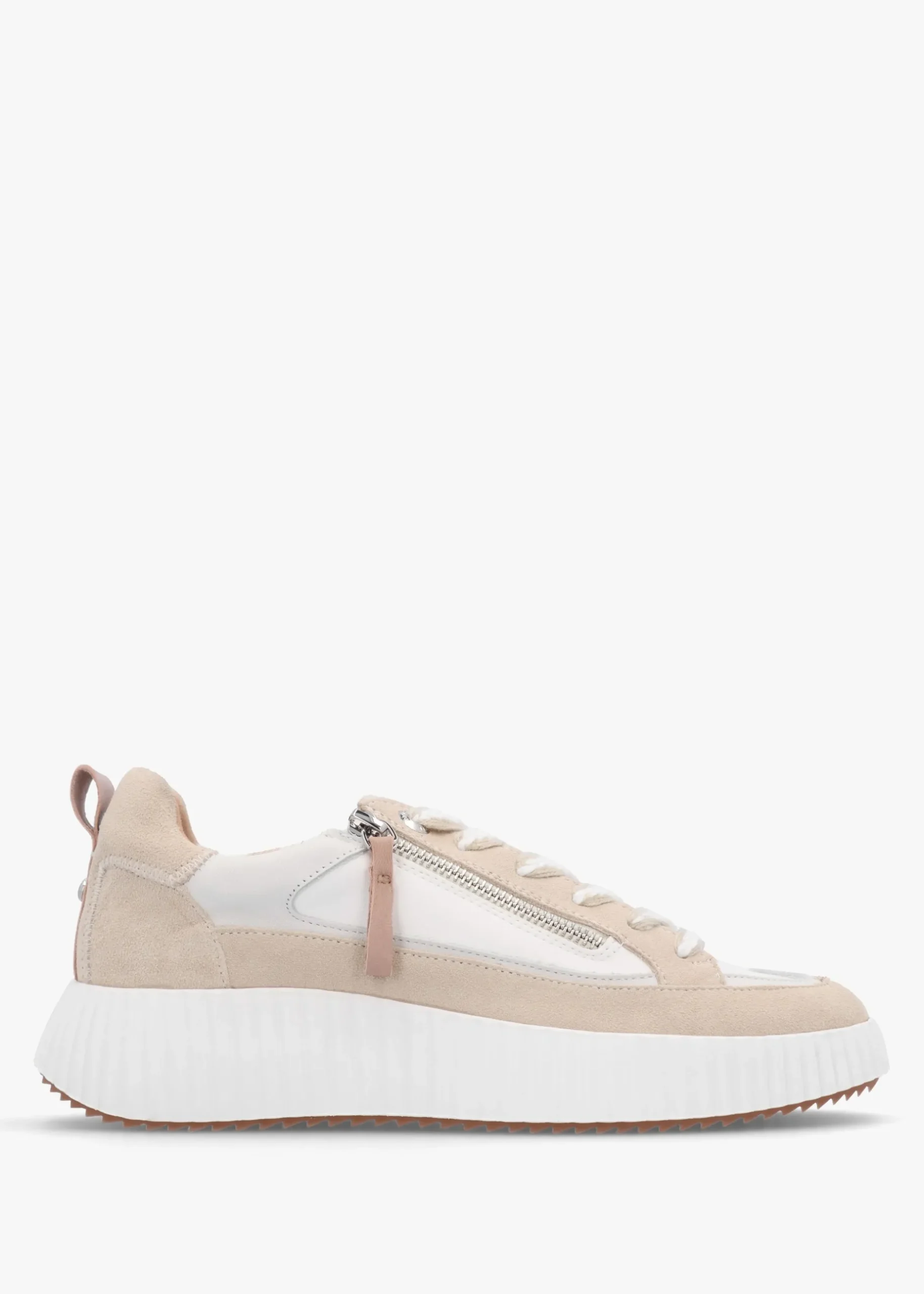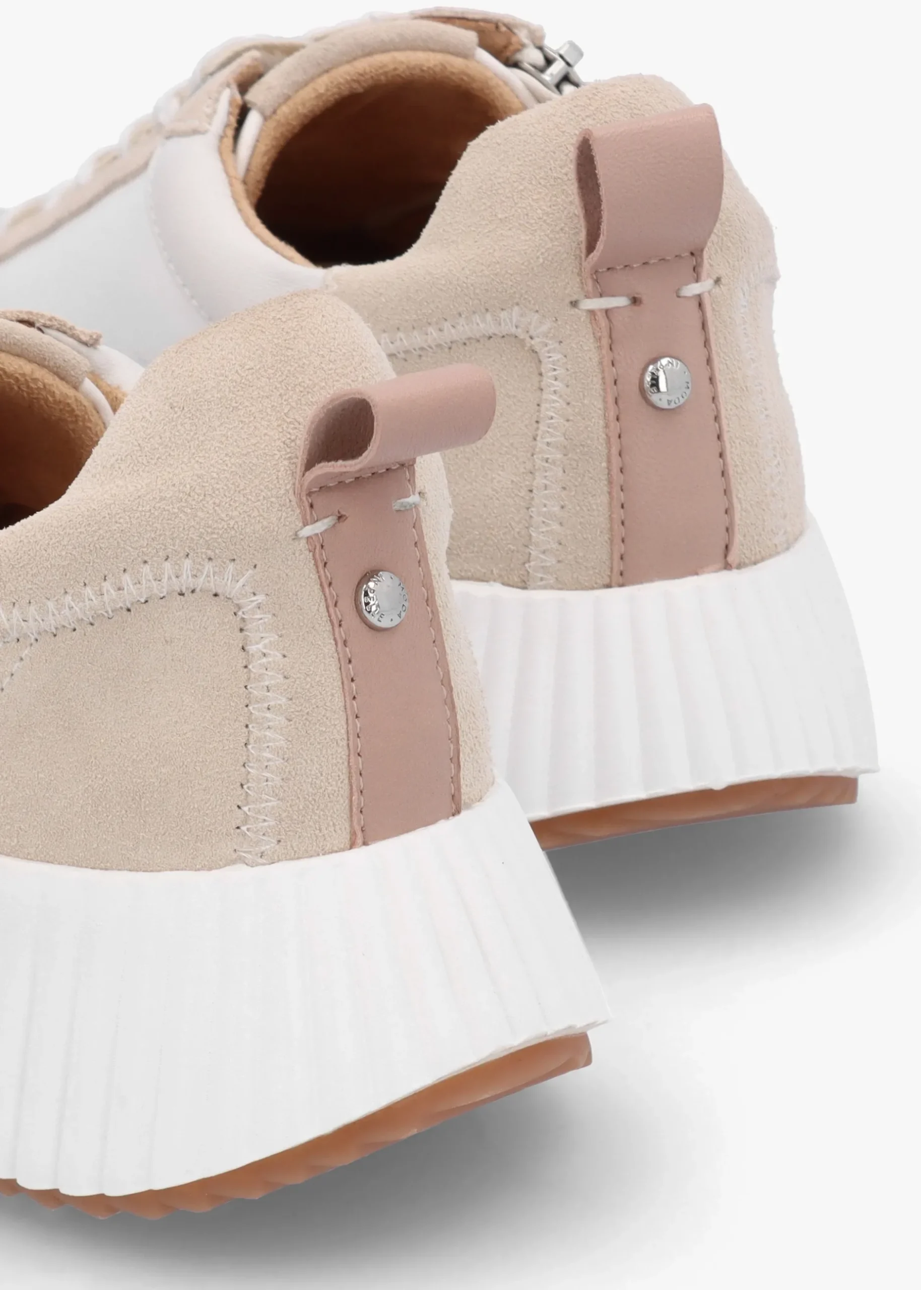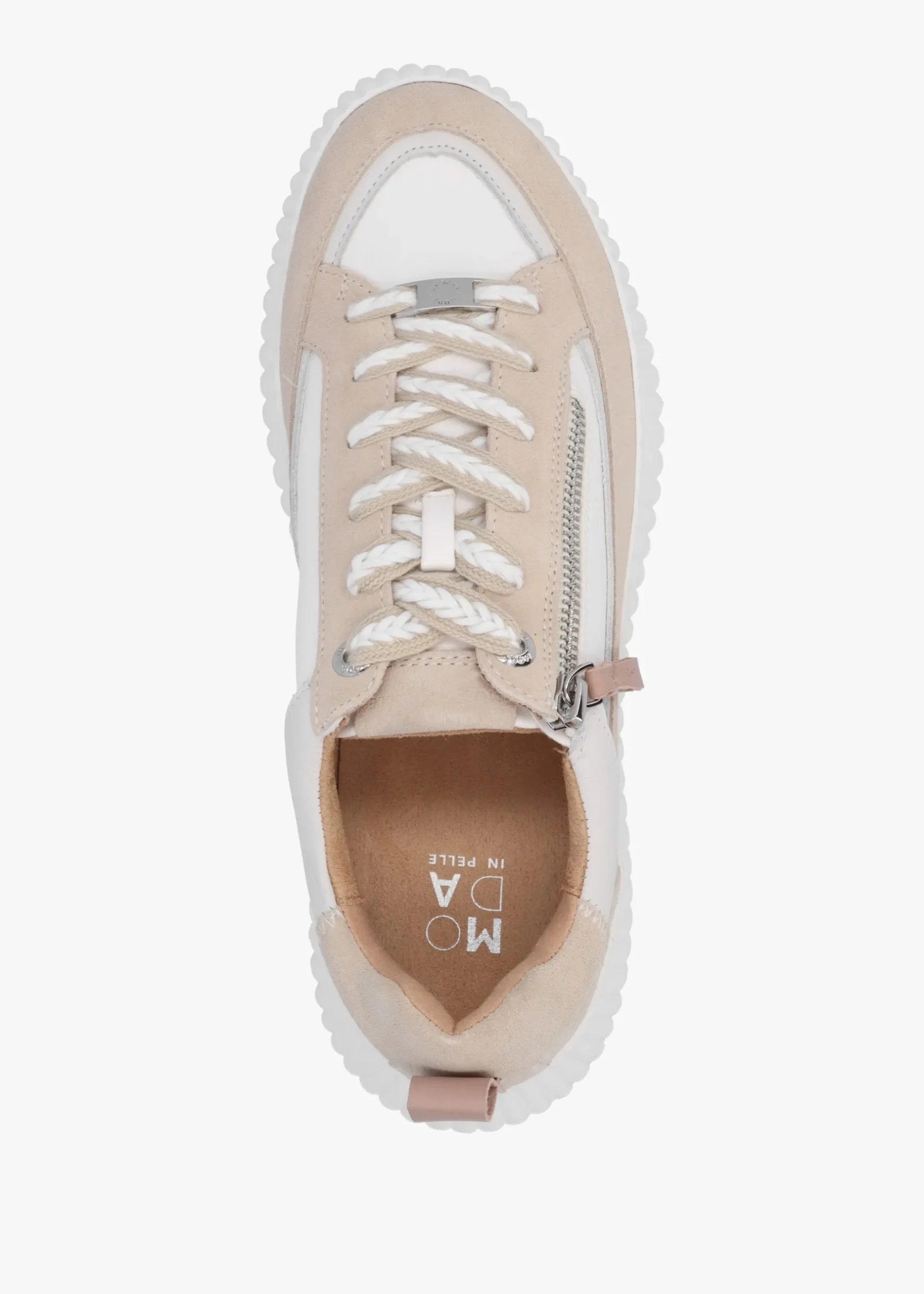 Add the chunky ‘Bouville’ trainers from Moda In Pelle to your off-duty wardrobe. This must have sporty style is crafted from a premium leather upper with contrasting suede inserts, textile lining and a ribbed rubber sole. The classic lace up upper ensures the perfect fit and the side zip creates an easy wear. Pull tab adds detail to the ankle as well as branded stud. Signature Moda In Pelle branding is seen throughout.