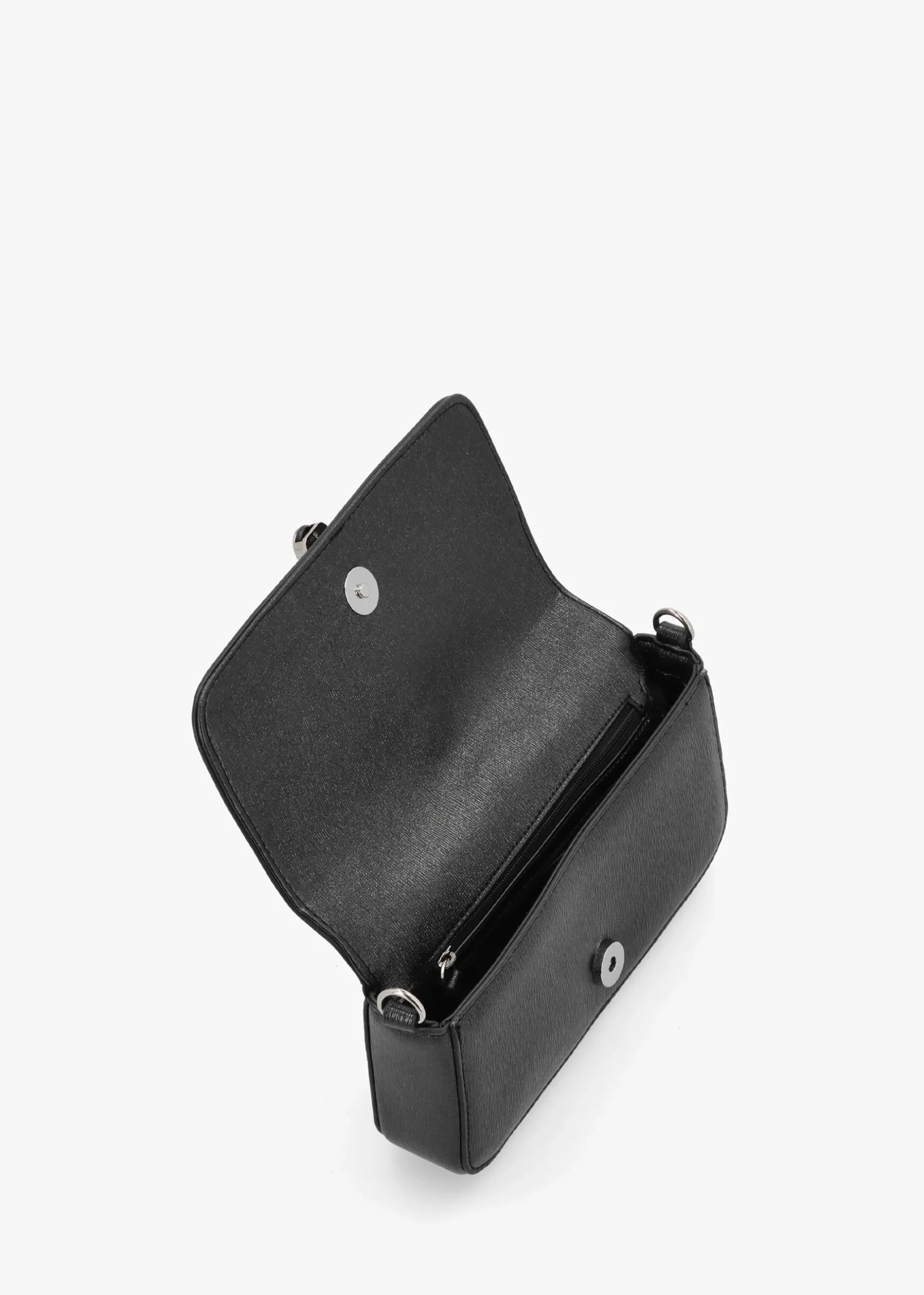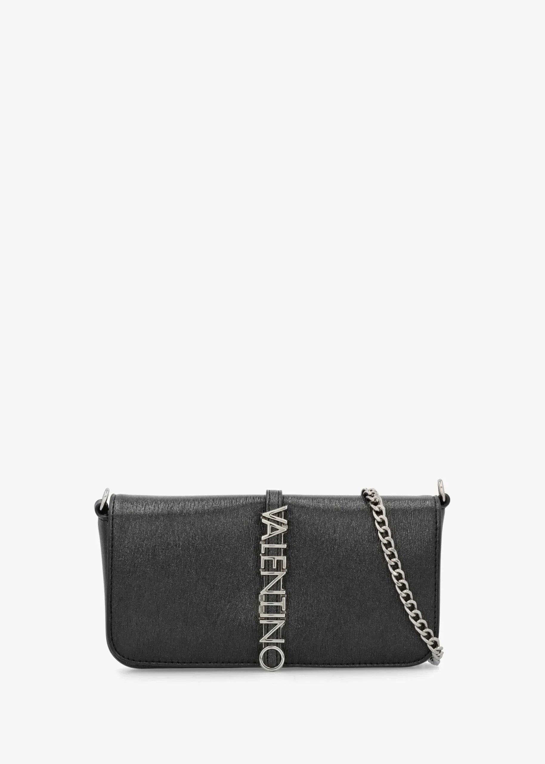 The ‘Materia’ shoulder bag from Valentino is the perfect evening accessory. This New Season style is crafted from premium metallic PU in a textured design with polished silver tone accents. The secure magnetic snap front flap reveals a single compartment and features handy inner zip pocket. Carry by the detachable curb chain strap, or detach and use as a classic clutch. Statement logo lettering adds detail to the front flap. Signature Valentino branding is seen throughout.