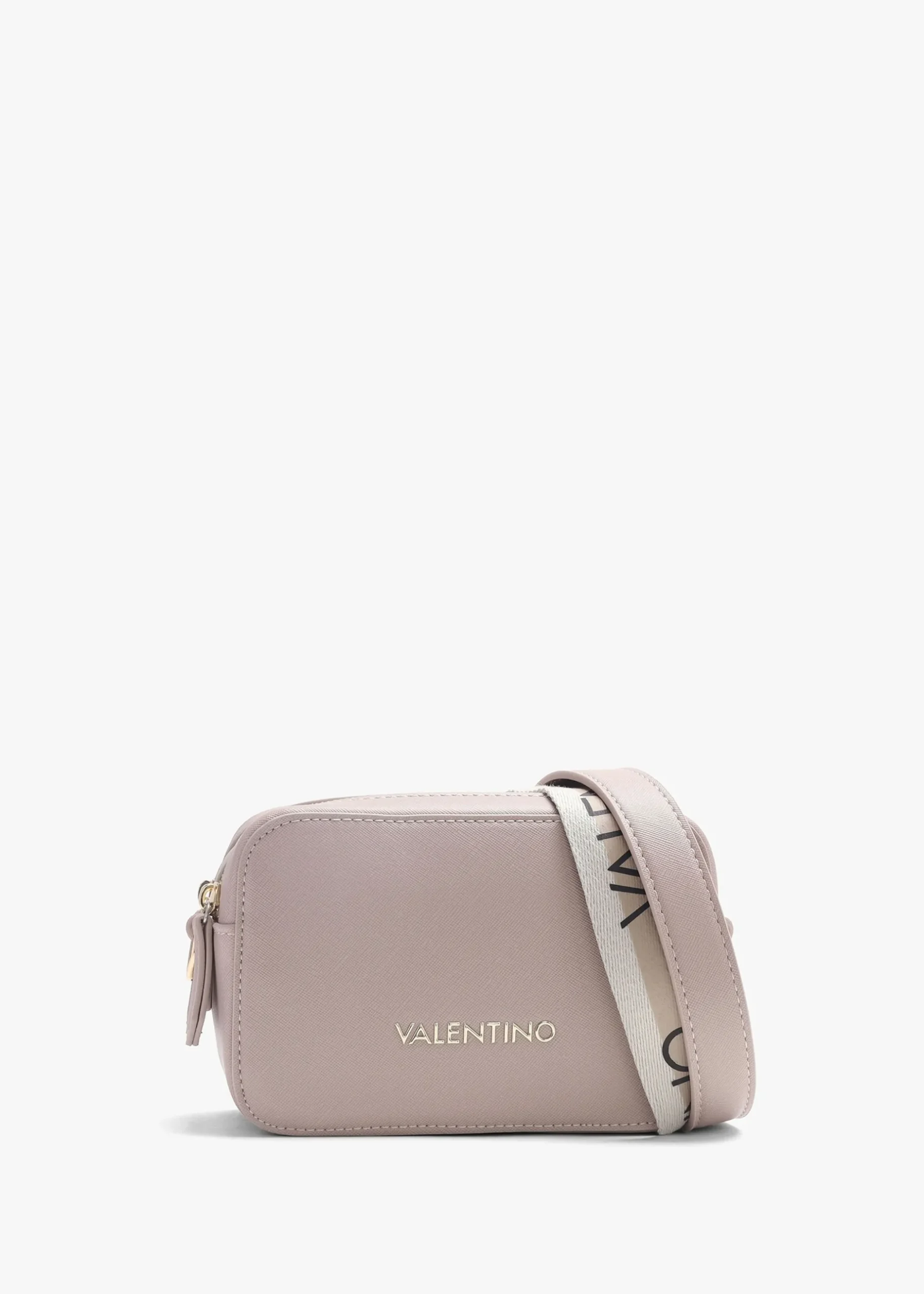 The ‘Zero’ camera bag from Valentino Bags eco-friendly collection is the perfect everyday style. Crafted from premium textured PU made from part recycled materials with polished gold tone hardware. The secure double top zip fastening compartments reveal handy inner zip and slot pockets, exterior zip pocket also features. Carry by either of the detachable straps. Signature Valentino Bags branding is seen throughout.