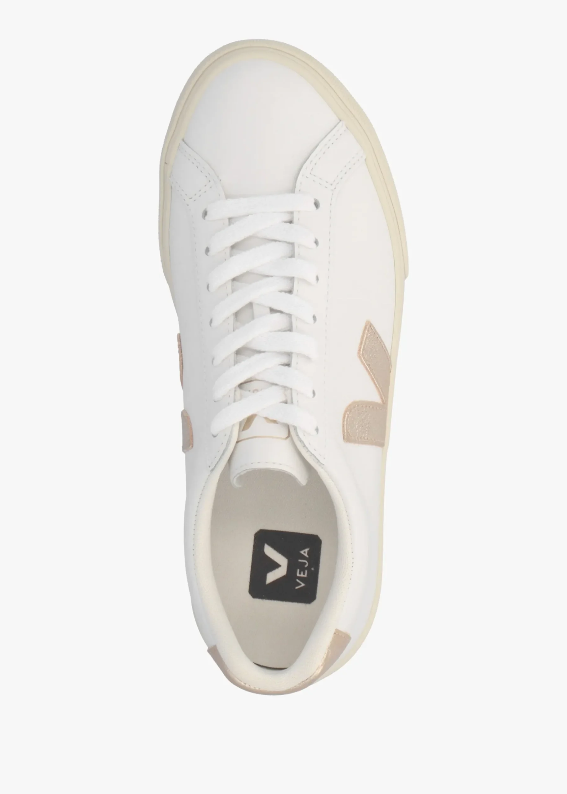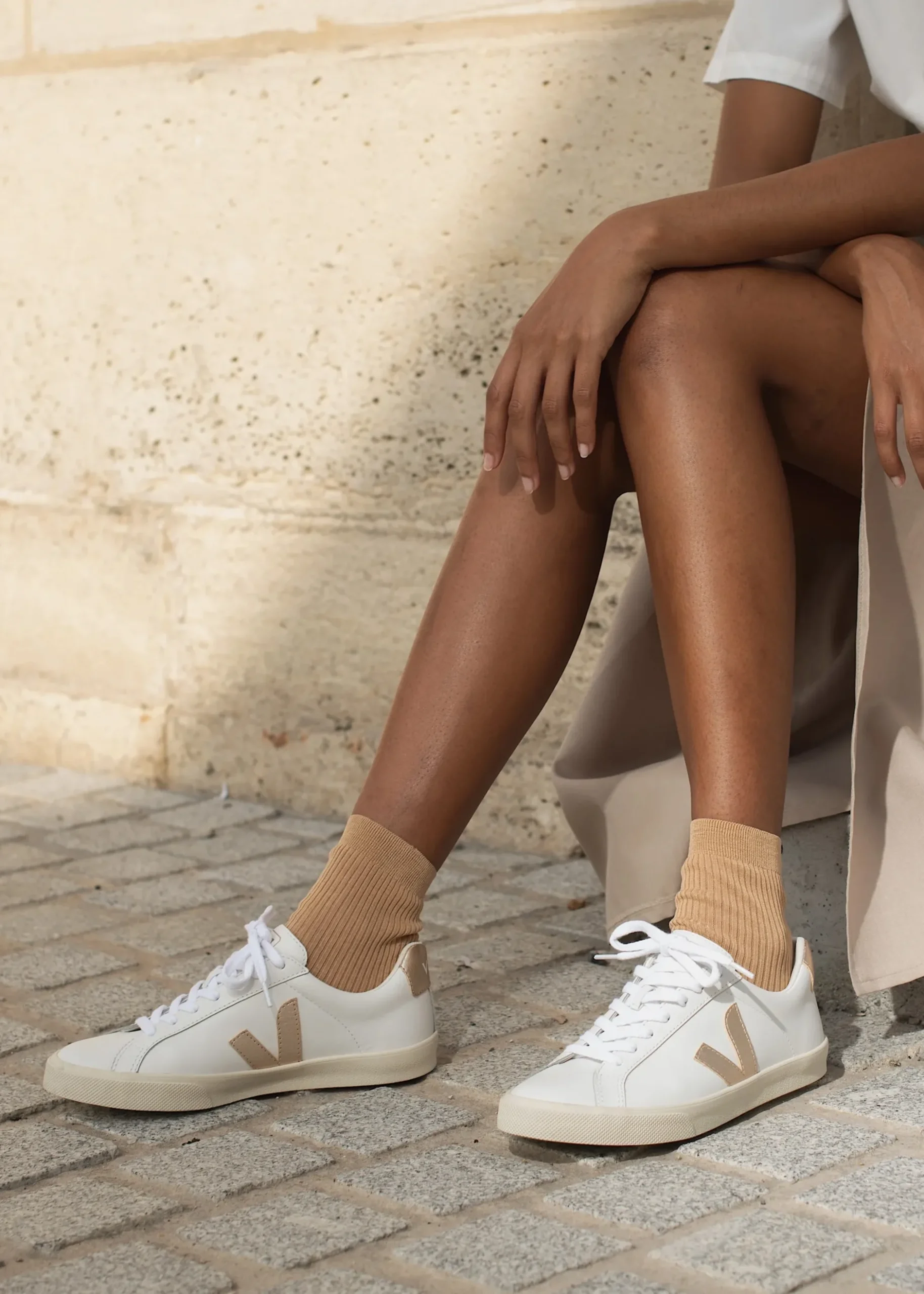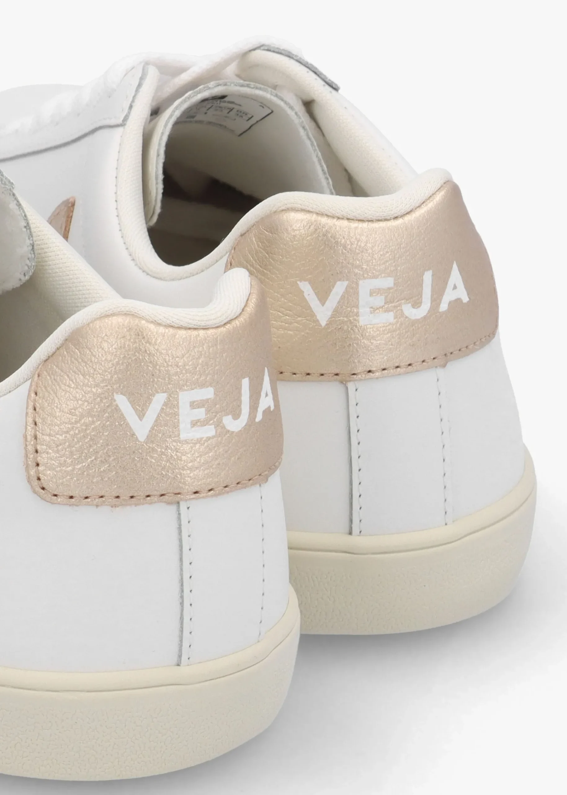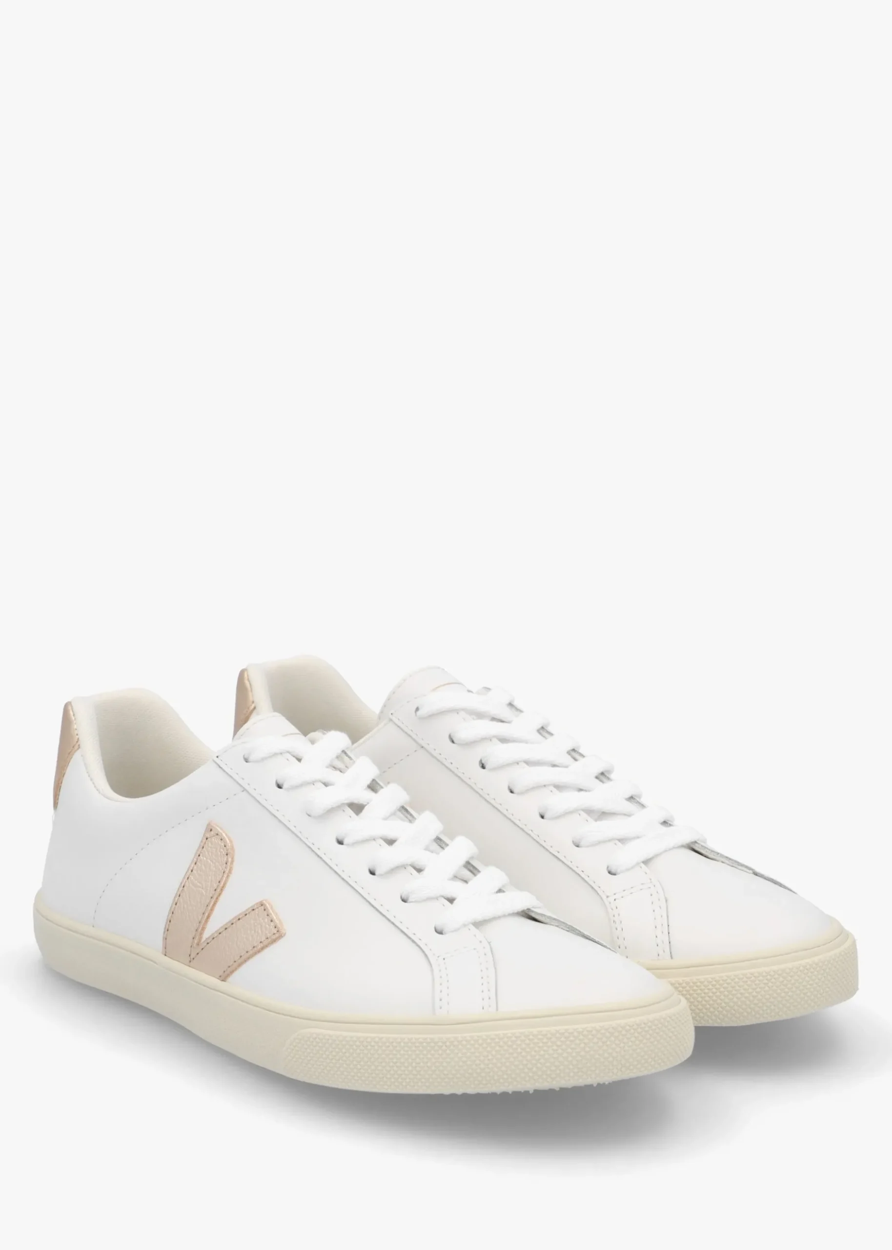 The ‘Esplar Logo’ trainers from VEJA are crafted from ecological and sustainable materials. This sporty style is crafted from a premium leather upper with organic cotton lining and a wild rubber sole sourced from the Amazonian forest. The lace up upper creates an easy wear as well as ensuring the perfect fit. Bold V brand logo in gold leather adds detail to the side of the trainers. Signature VEJA branding is seen throughout.