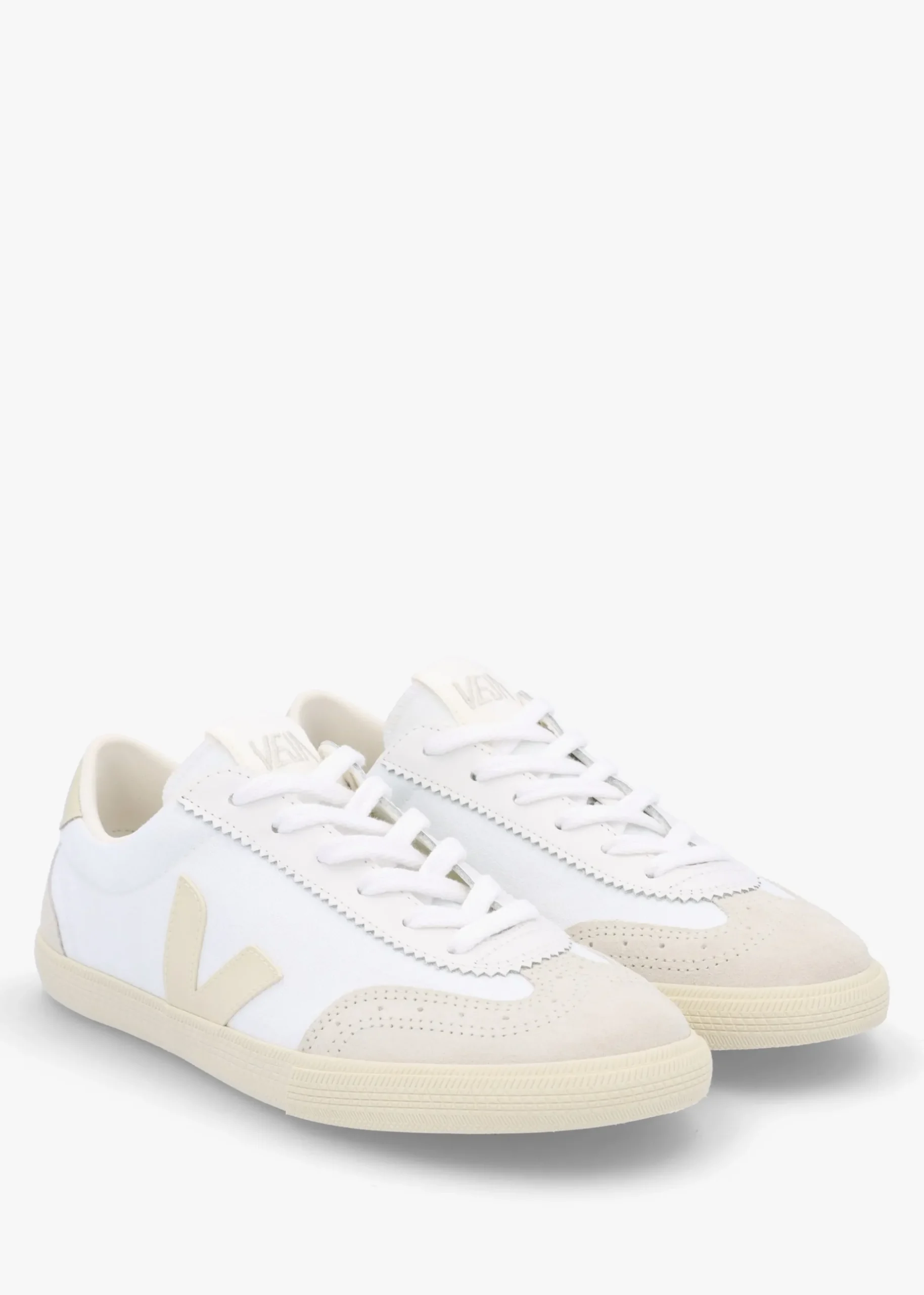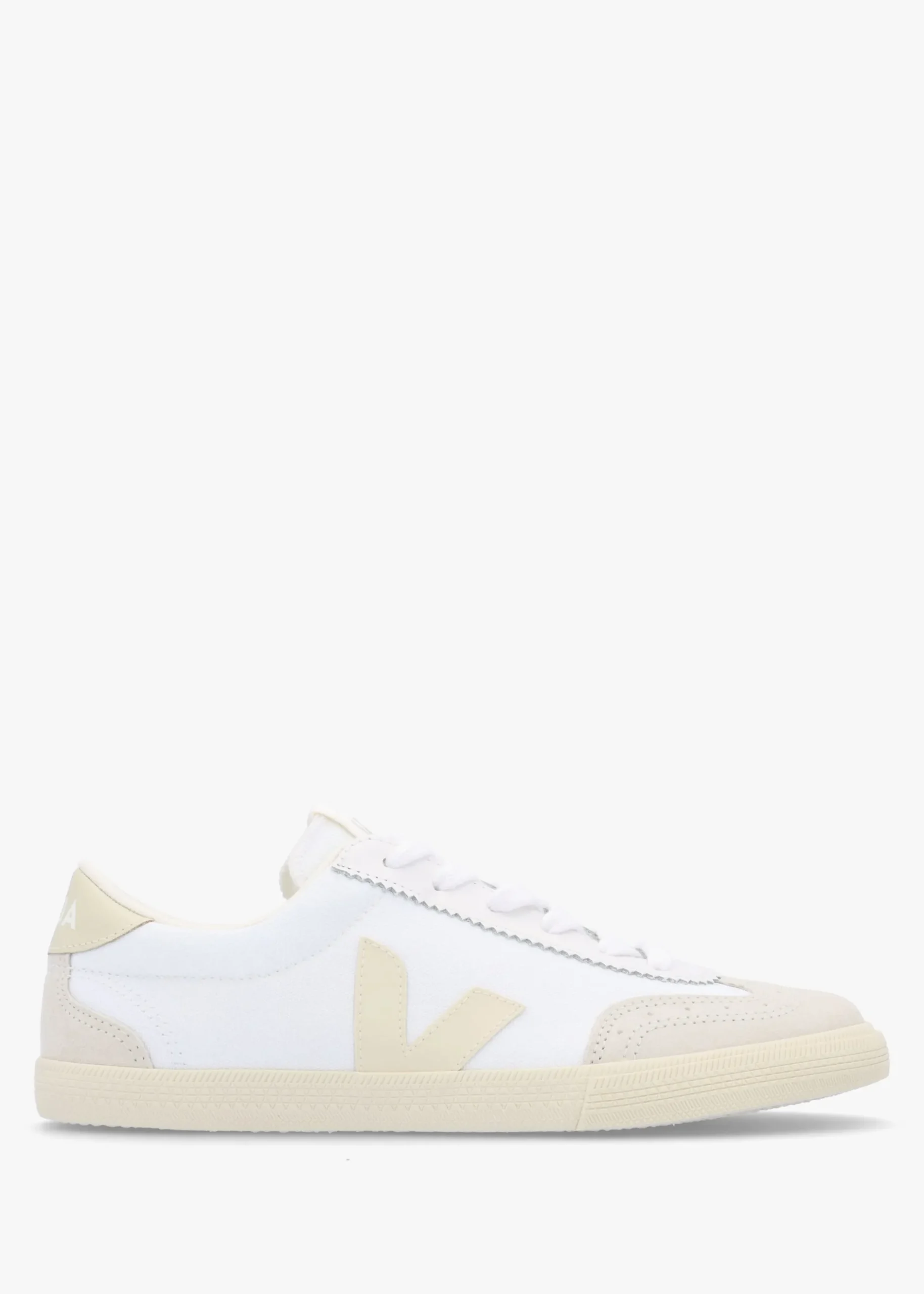 Add this New Season style from VEJA to your off-duty wardrobe. Inspired by the Brazilian volleyball shoes of the 70s this revised light weight trainer is crafted from a 100% organic cotton upper with 100% recycled polyester lining and a 40% wild rubber sole sourced from the Amazonian forest. Subtle contrasting suede and leather inserts add detail. The 100% organic cotton laces ensure the perfect fit. Amazonian rubber V brand logo adds detail to the side of the trainers. Signature VEJA branding is seen throughout.