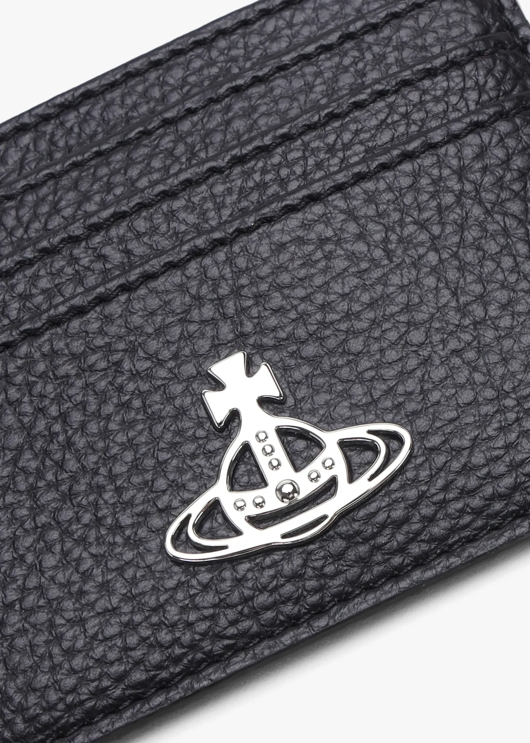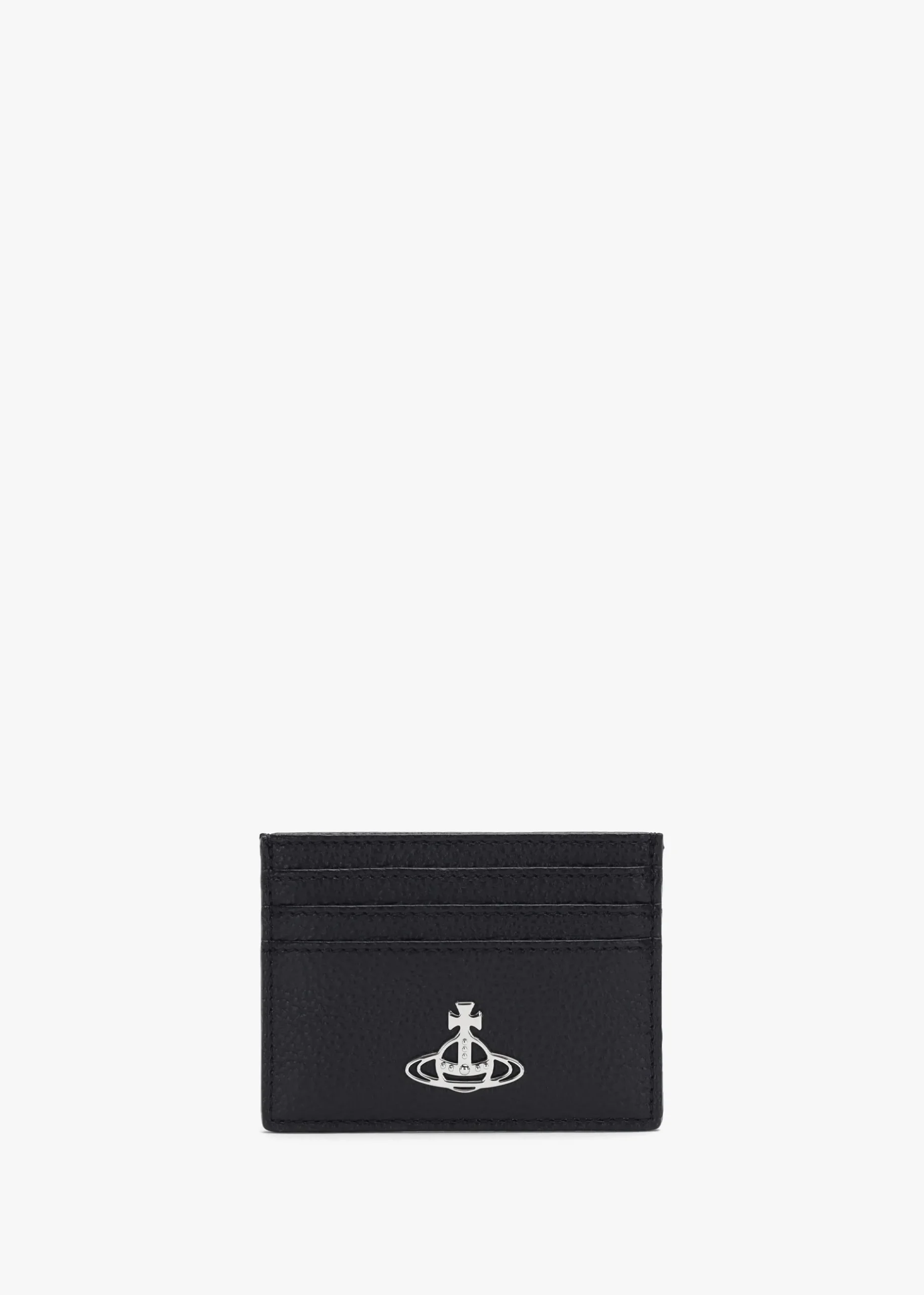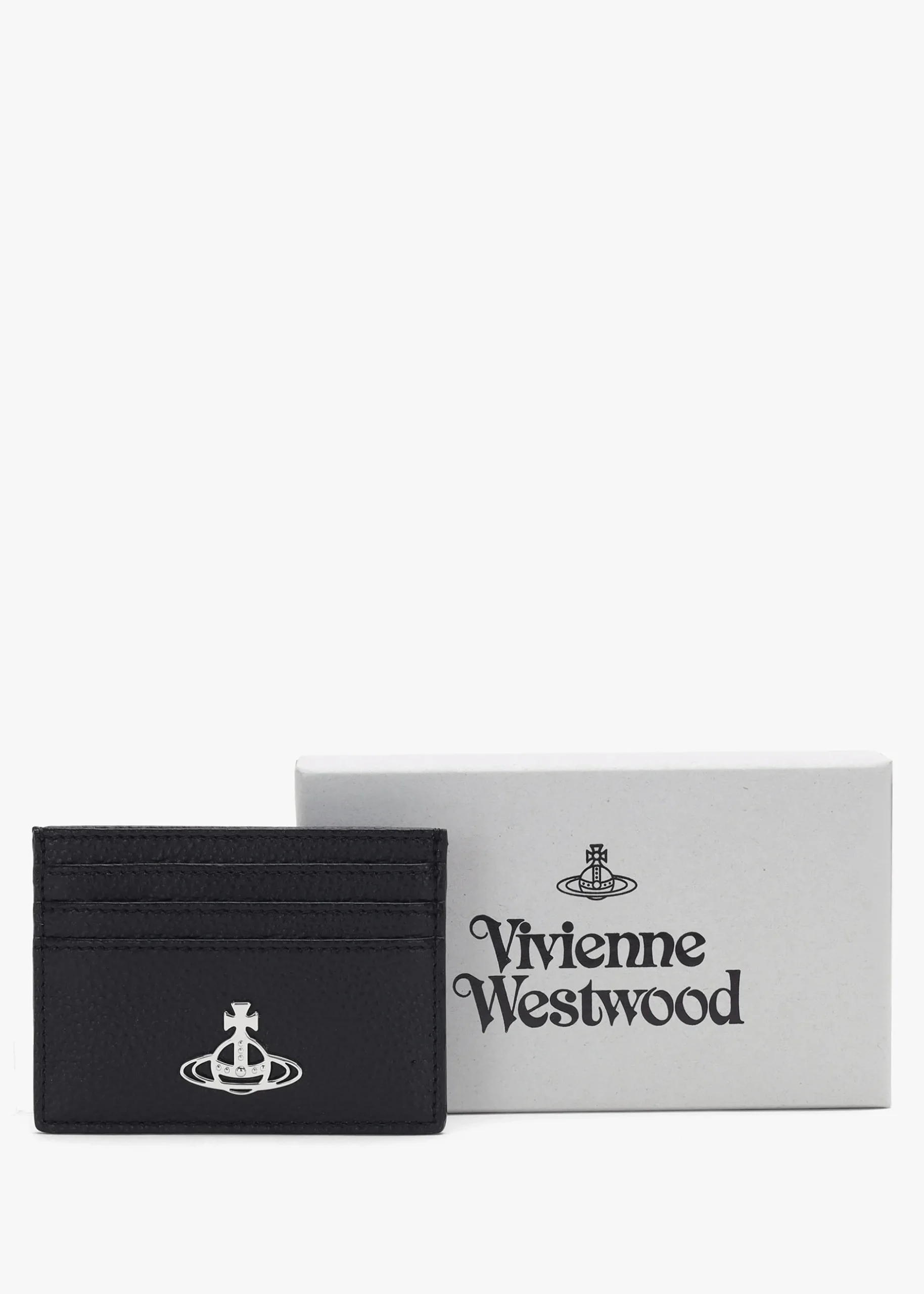 Add the classic Vivienne Westwood card case to your accessories collection. This timeless style features a slim profile and is crafted from premium soft pebbled PU with polished silver tone accents. Central card slot features as well as external compartments. Iconic ‘Orb’ plaque adds detail. Signature Vivienne Westwood branding is seen throughout.