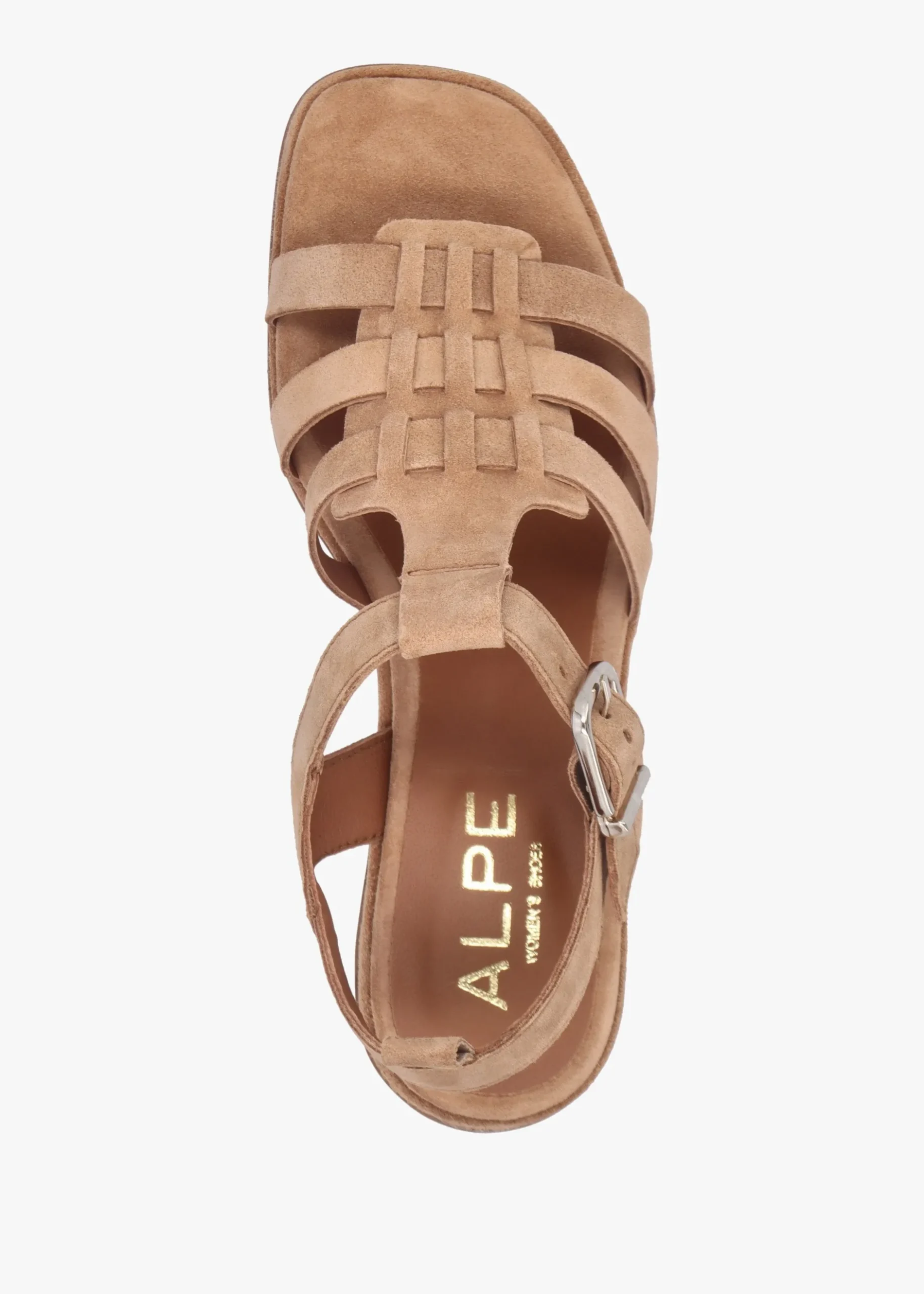 Add the ‘Akure’ block heel sandals from Alpe to your Summer sandal collection. This New Season fisherman style is crafted from a premium suede upper with luxurious leather lining, cushioned footbed for added comfort and a man-made sole. An easy to wear slip on style featuring buckle fastening ankle strap. Signature Alpe branding is seen to the footbed.